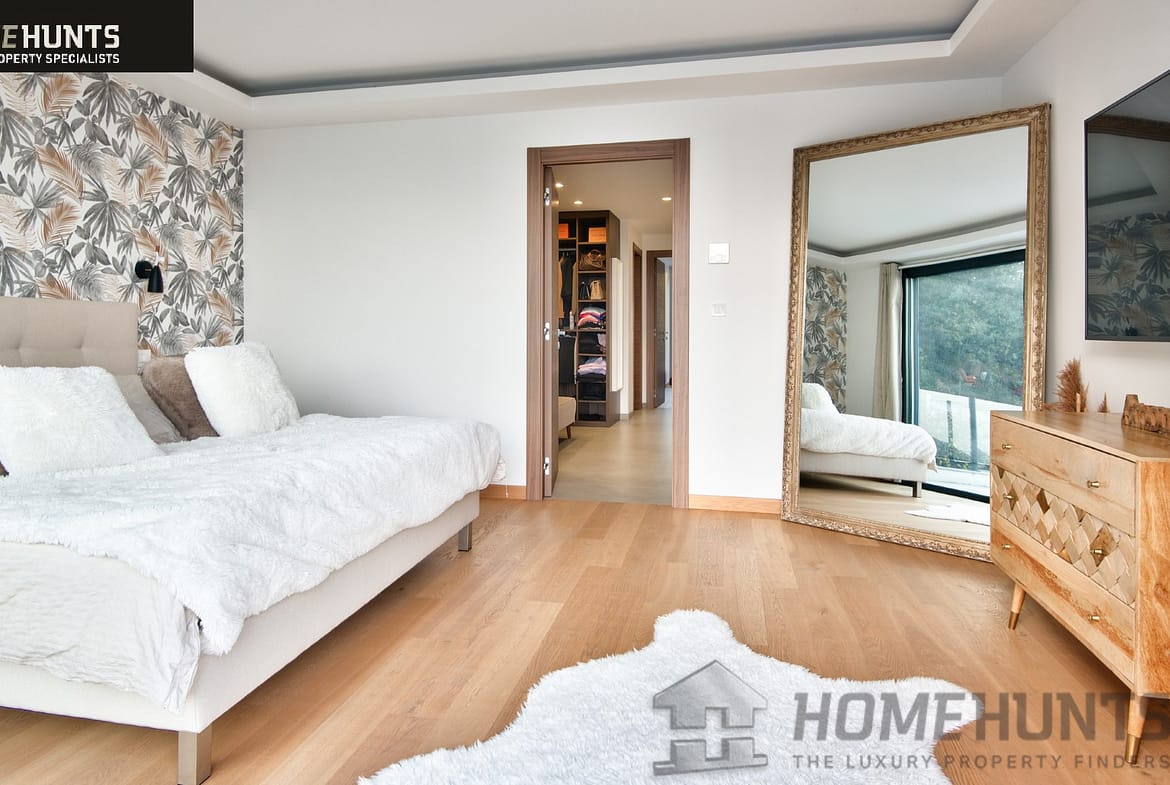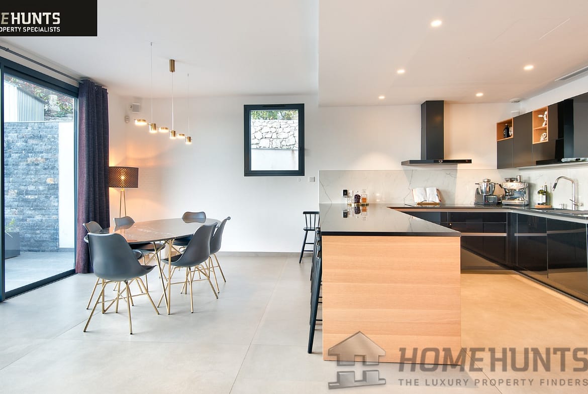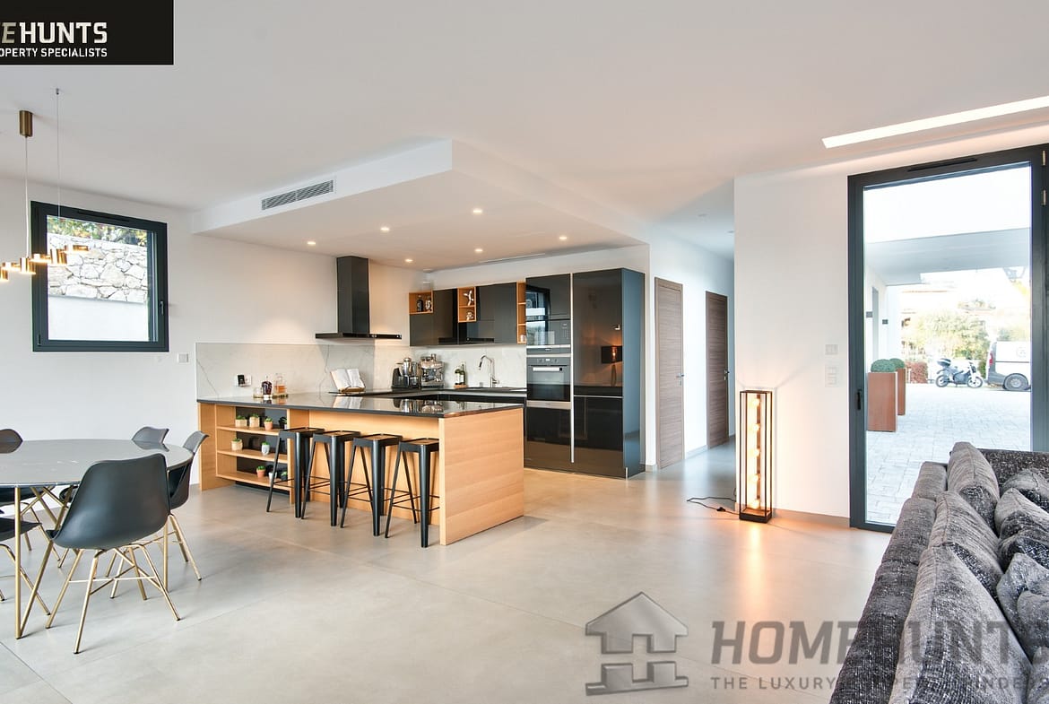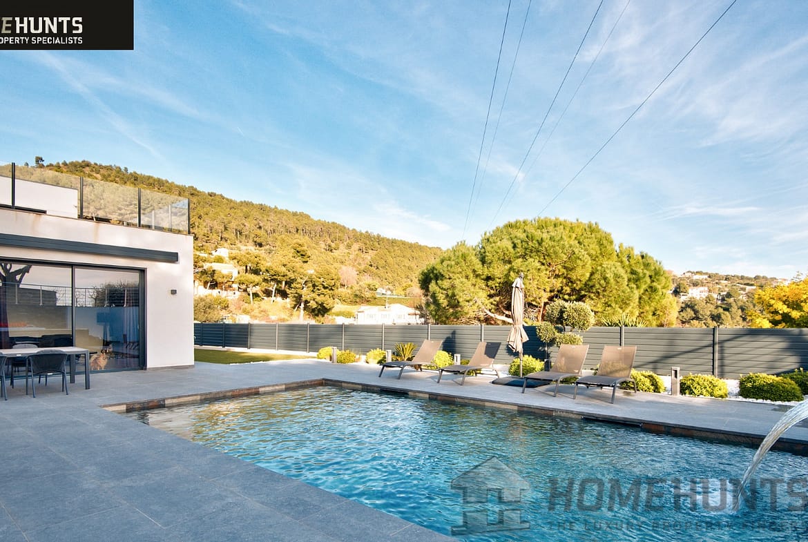 This 5-room villa offers generous floor space, a heated swimming pool with sun terrace and summer kitchen, 4 spacious bedrooms with storage, including a magnificent master bedroom with terrace, a modern, fully-equipped kitchen, a bright living room with large bay windows opening onto the outside, a landscaped, intimate garden, a garage and numerous parking spaces.