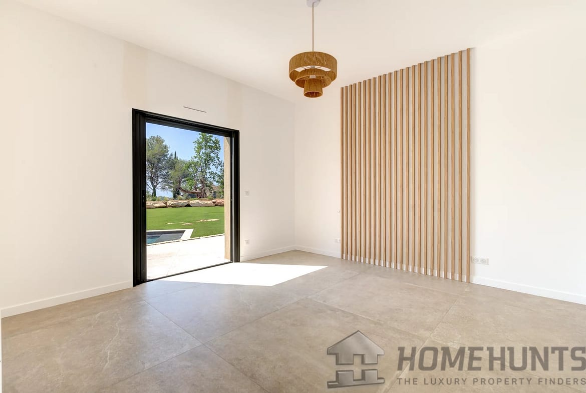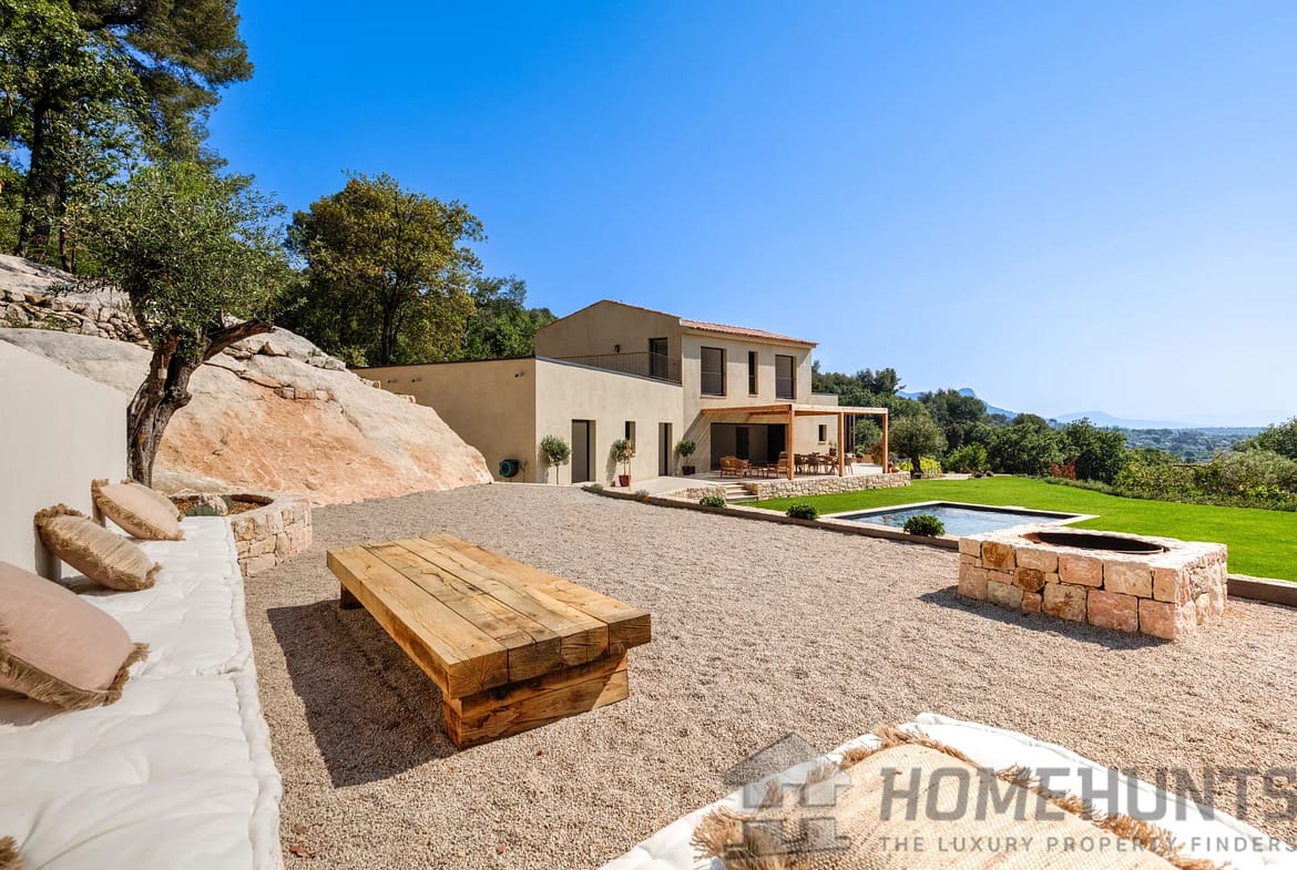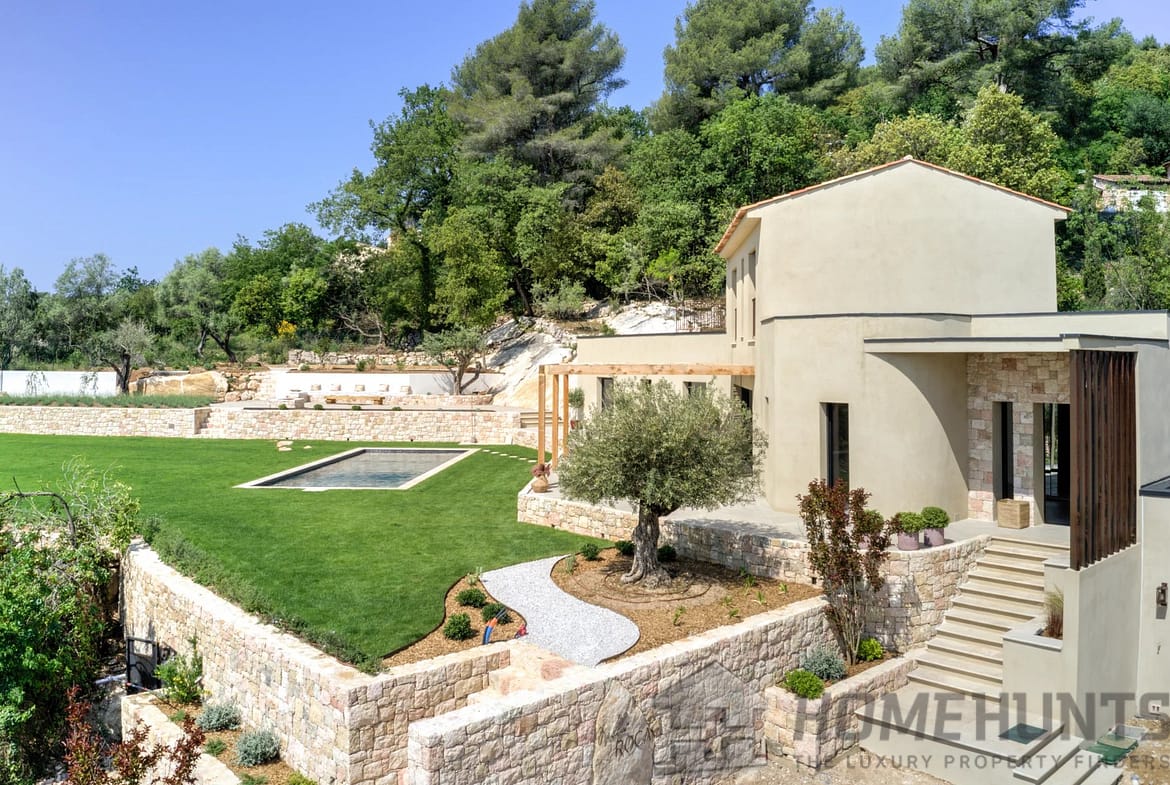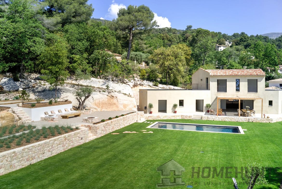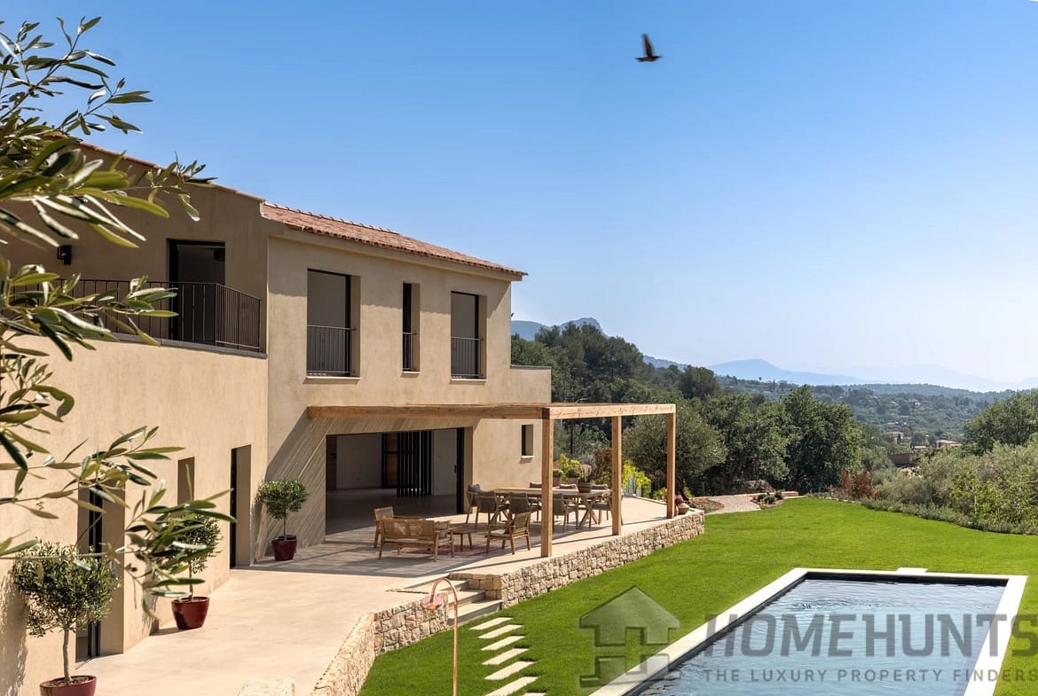 This magnificent new-built villa, near the historic village of Tourrettes sur Loup, benefits from a wonderful view of the Mediterranean Sea, the surrounding mountains, and hills.