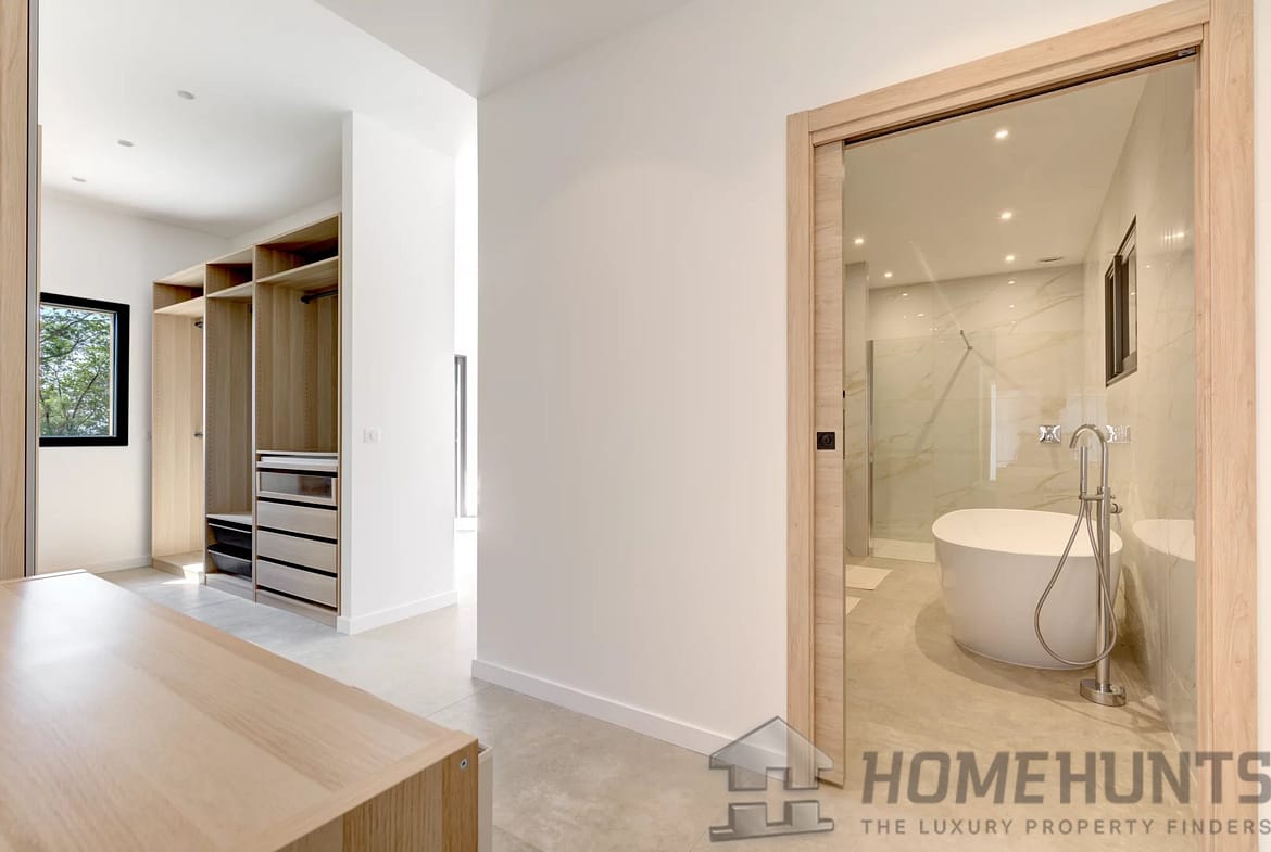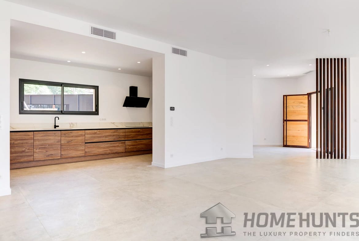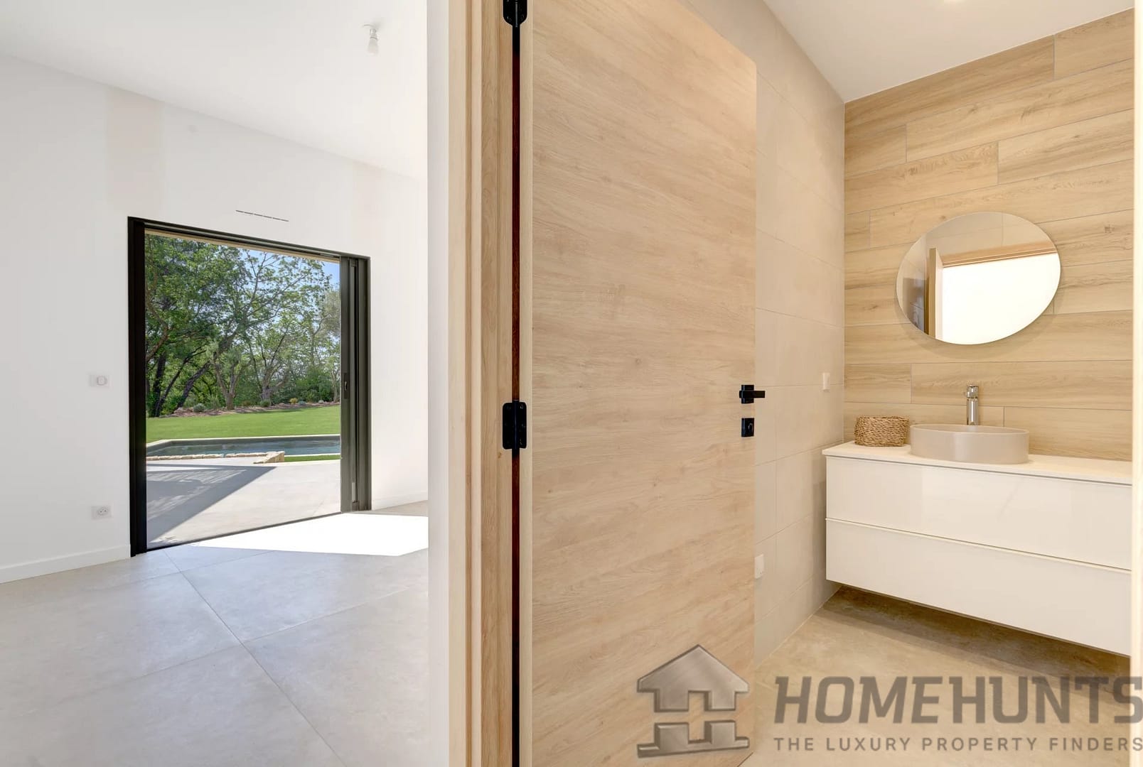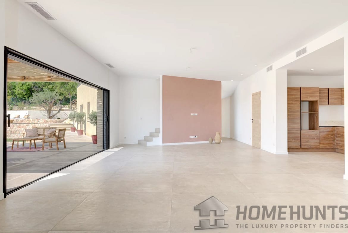 This magnificent new-built villa, near the historic village of Tourrettes sur Loup, benefits from a wonderful view of the Mediterranean Sea, the surrounding mountains, and hills.