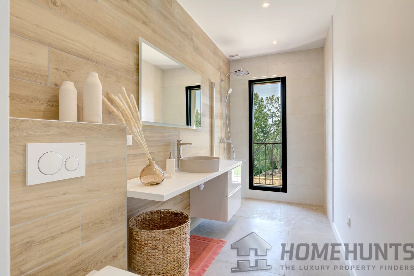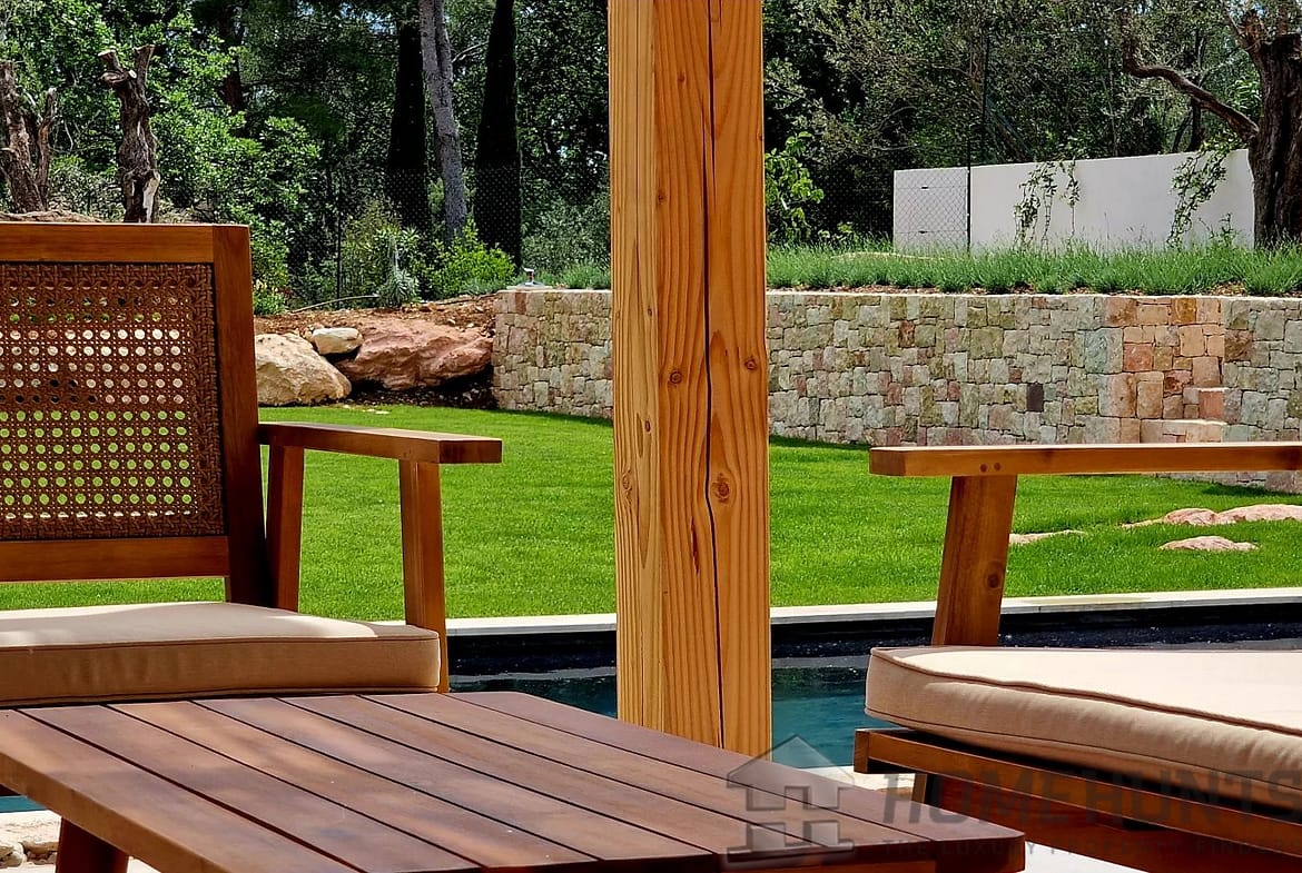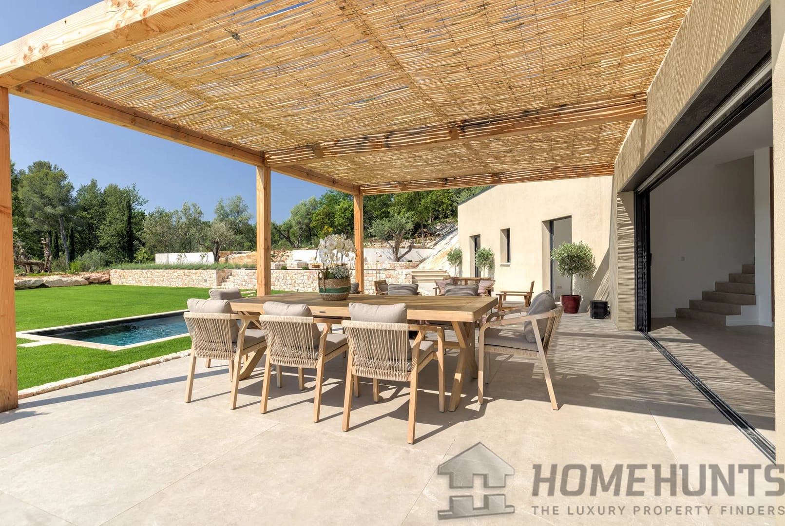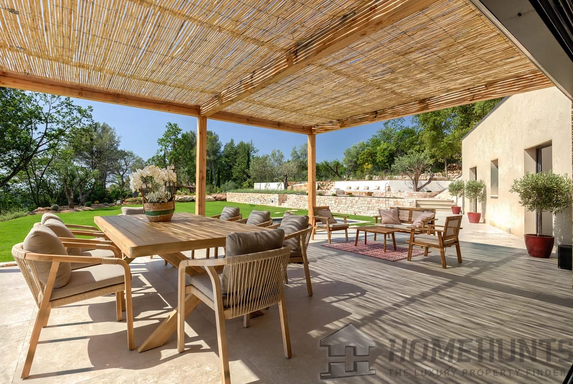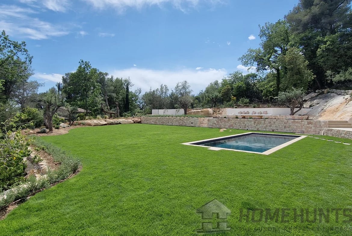 The villa offers a perfect combination of charm and modernity thanks to the stone terraces and the high-quality contemporary materials that have been chosen. In a dominant position, it offers a flat landscaped garden with a salt pool, relaxation areas overlooking the exceptional view, as well as a boules court.