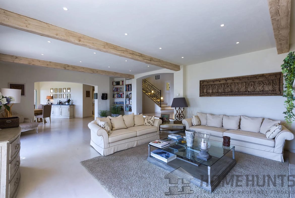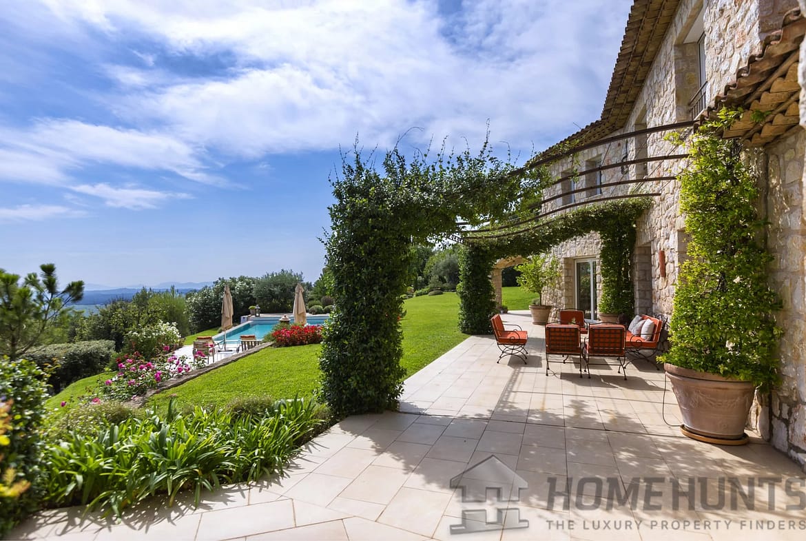 Perched on a hillside with commanding Mediterranean views, this magnificent stone bastide embodies the emblematic Proveníçal lifestyle while offering modern luxury and generous proportions. The south-facing orientation ensures abundant natural light throughout its elegantly appointed interiors, where exposed wooden beams and stone arches create a harmonious dialogue between traditional elements and contemporary design.