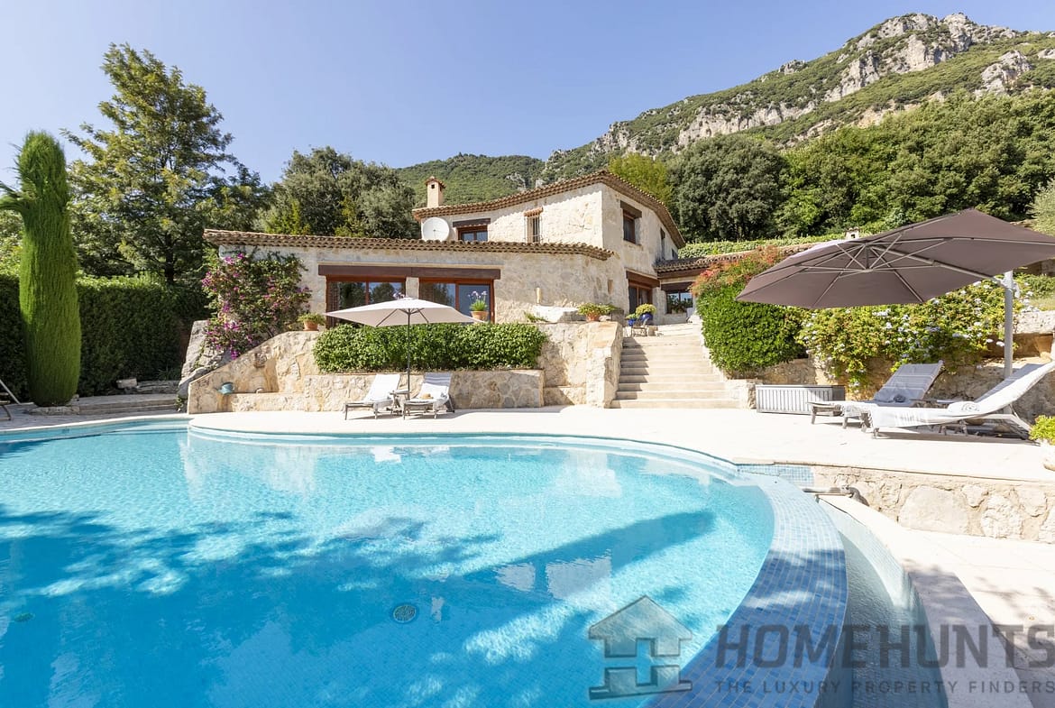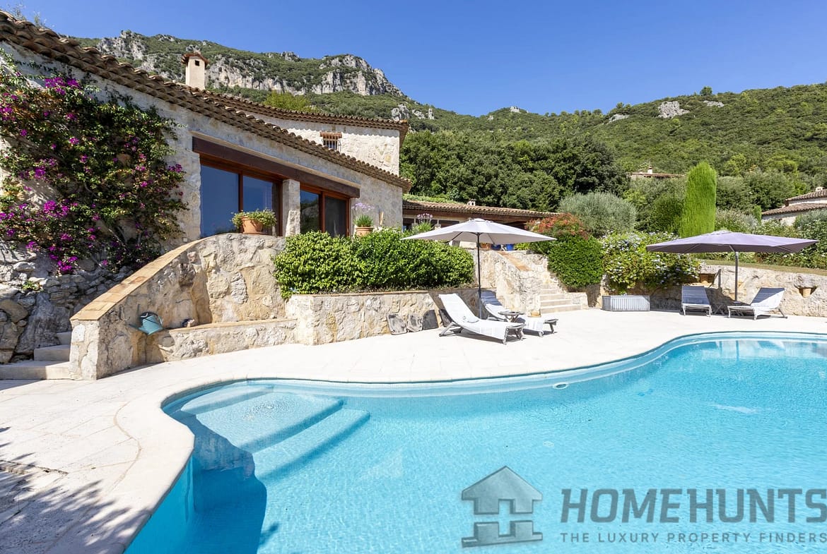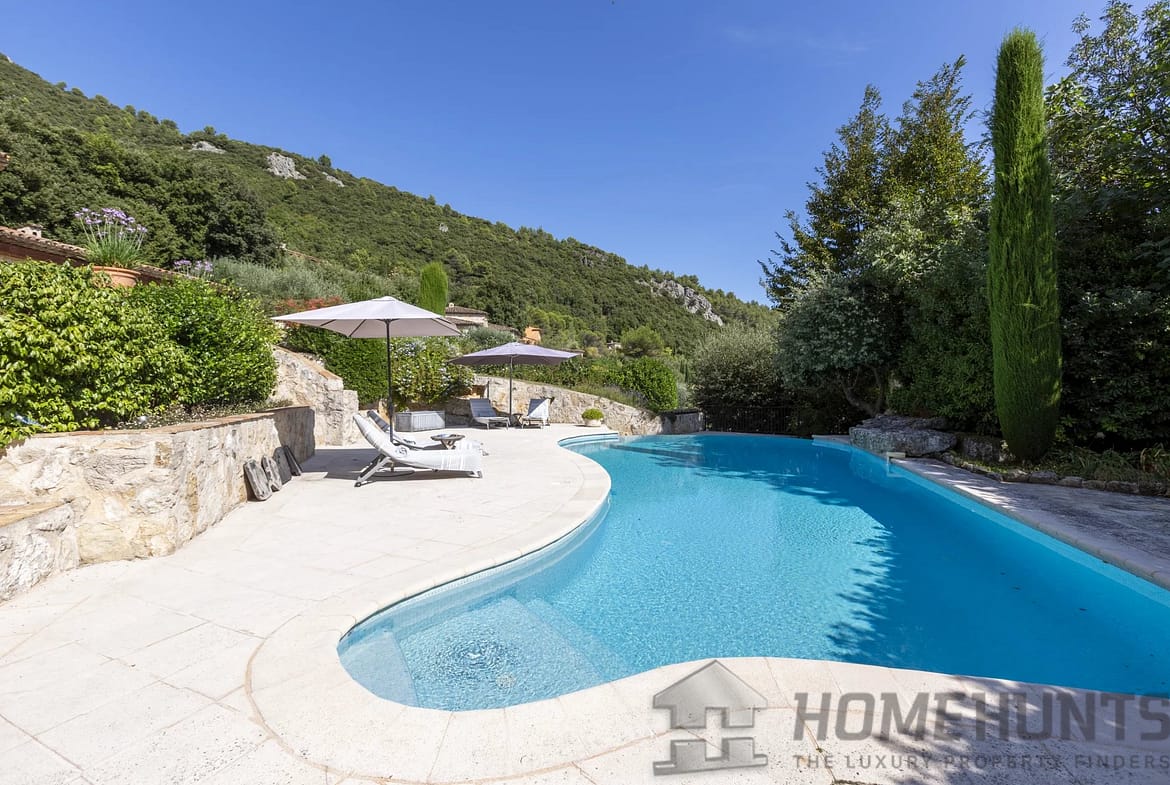 Charming and well maintained 4-bedroom stone house of 230m2 with a beautiful 2,500m2 garden featuring a swimming pool and terraced areas to relax and enjoy the stunning views of the mountains and the sea, located just a 5-minute drive from the medieval village of Tourrettes-sur-Loup.