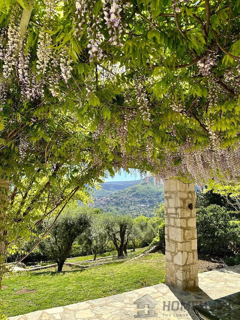 From its privileged position, the property enjoys sweeping views over the mountains, the valley, and the picturesque village of Bar-sur-Loup—just a 5-7 minute drive from charming villlage of Tourrettes-sur-Loup.