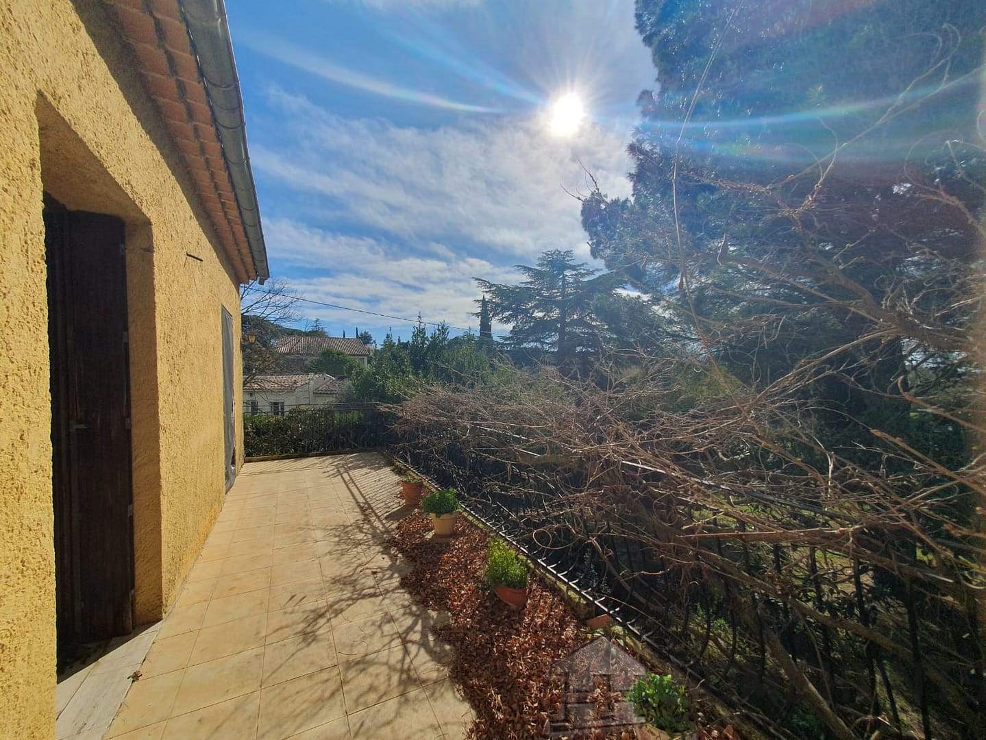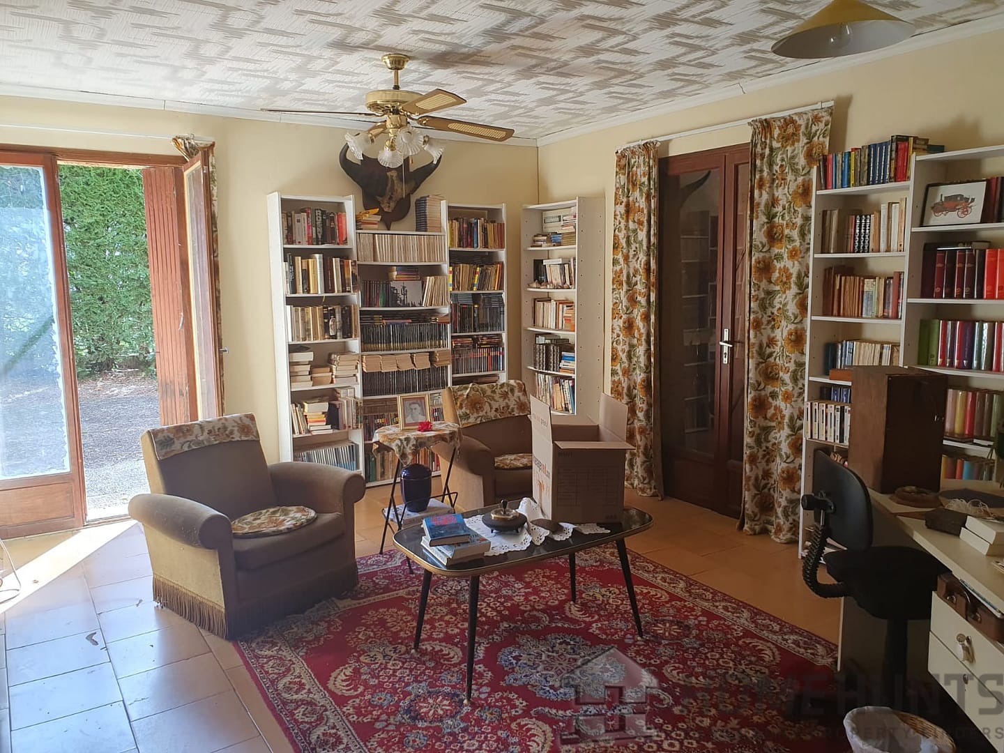 Villa from the 1980’s nestled on a large plot of 1655 m2 for swimming pool, an entrance, a living room, an equipped kitchen, two bedrooms, bathroom + WC, a large garage, Several terraces surrounding this single-storey apartment.