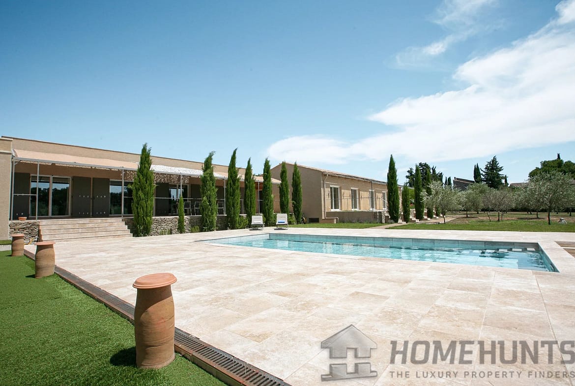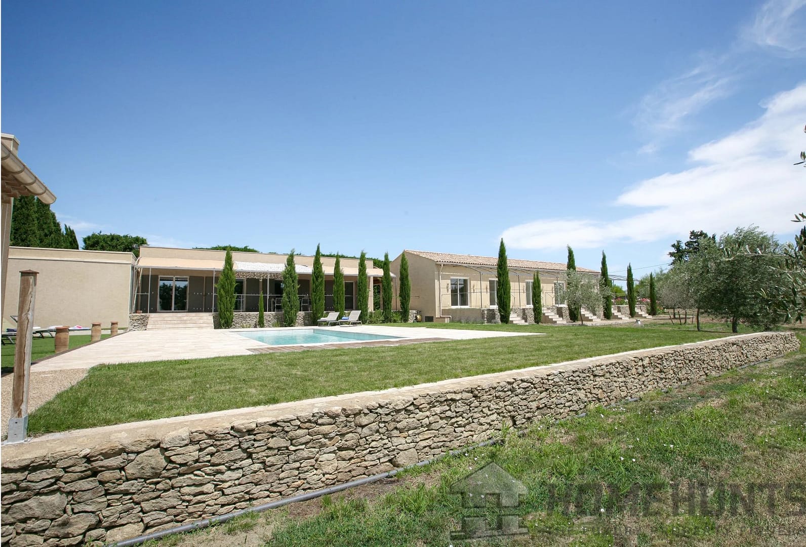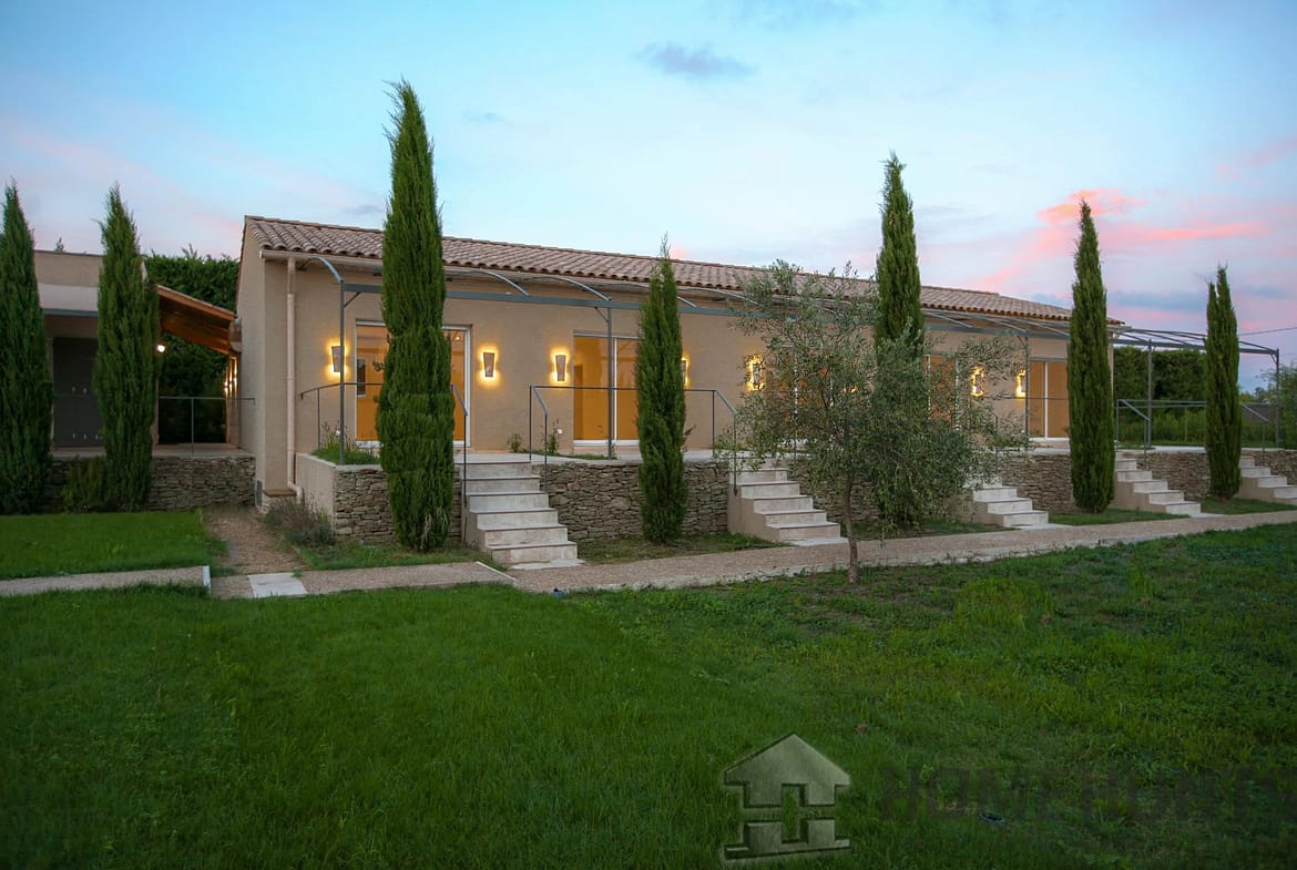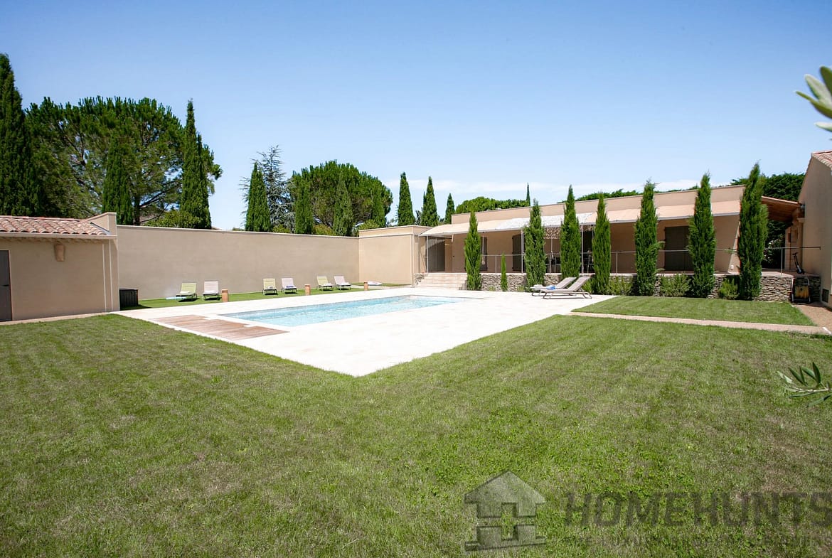 We have found this beautiful contemporary house of 267 m2 in one of the most sought-after areas of Uzes, very close to the shops. The house has two wings, one (west) comprising a large living room, a semi-open-plan kitchen, two bedrooms, 2 shower rooms and 3 separate bathrooms.