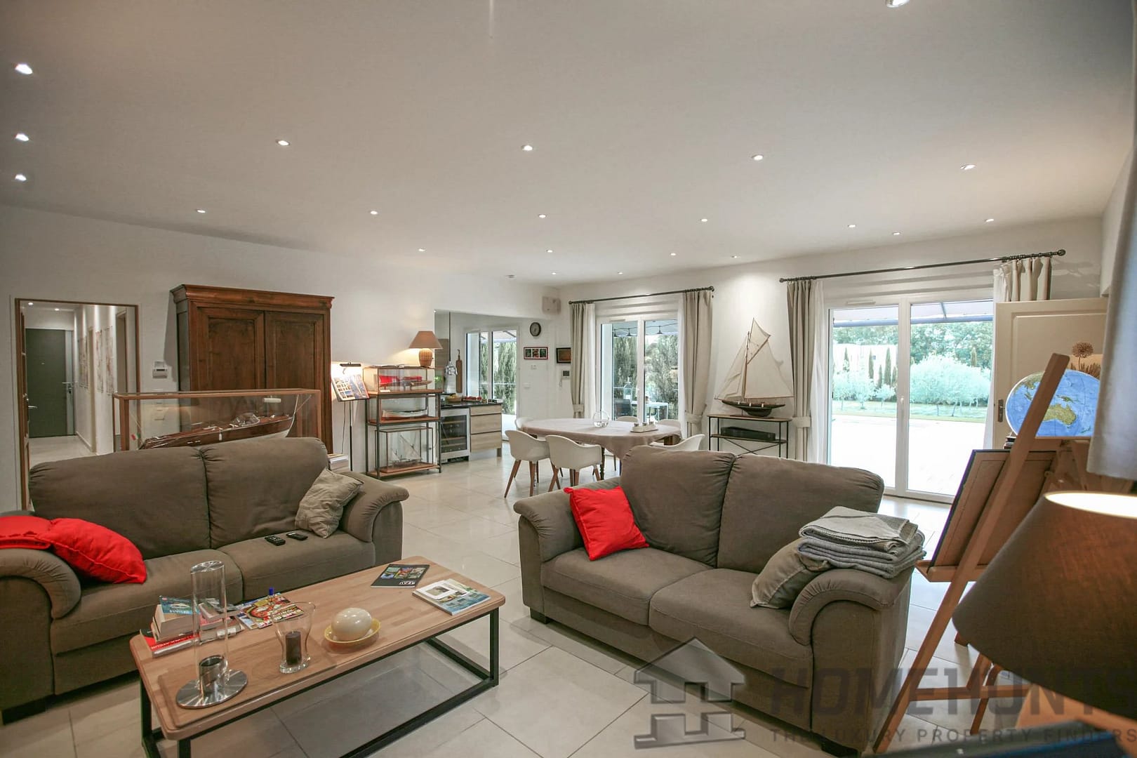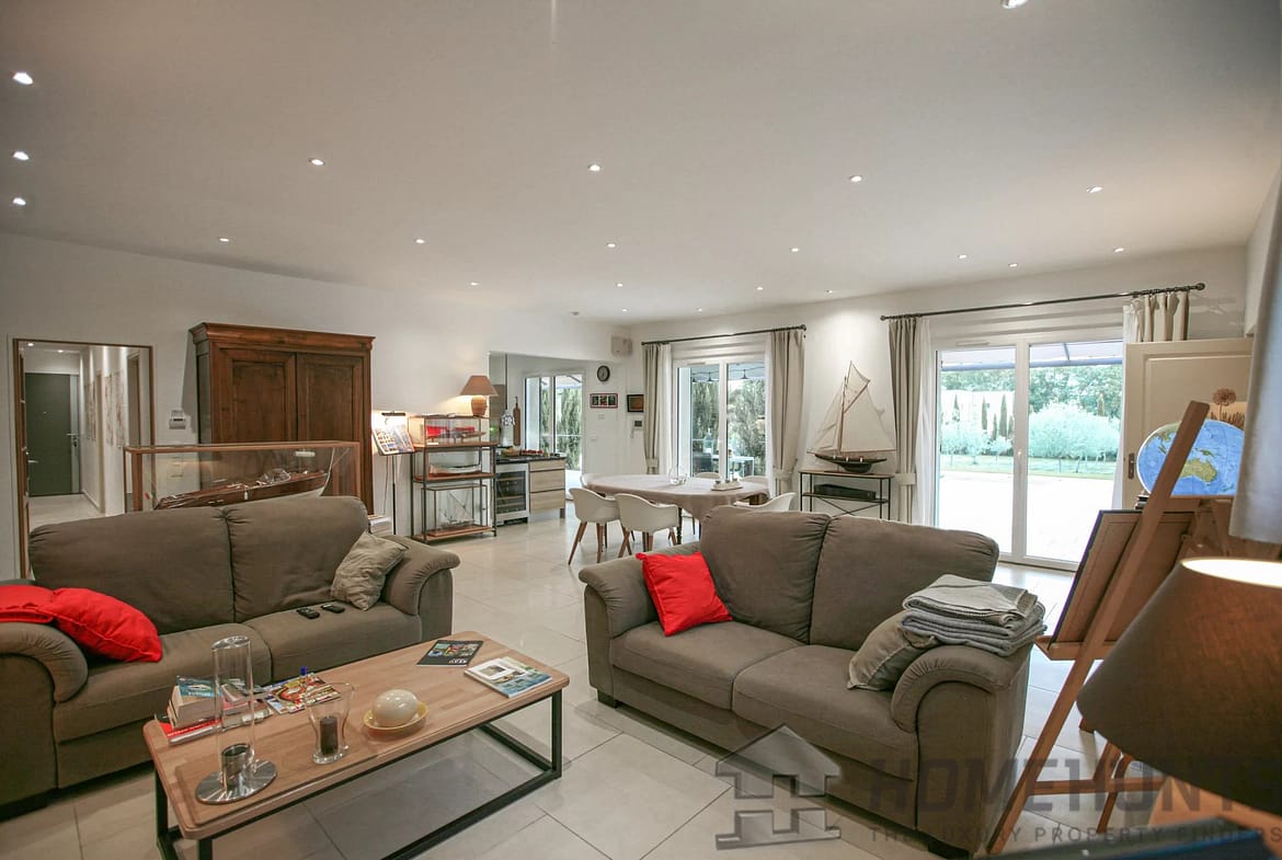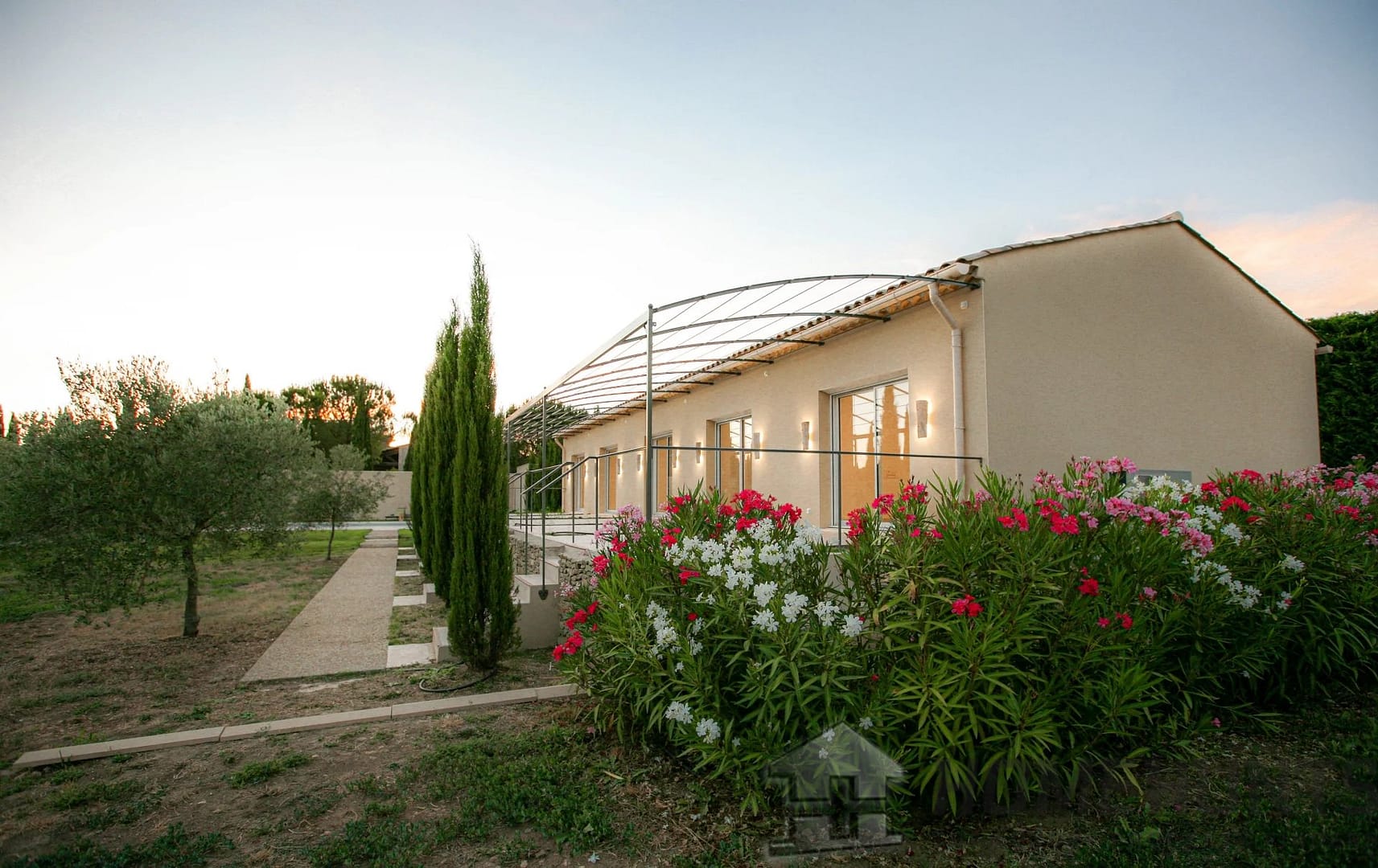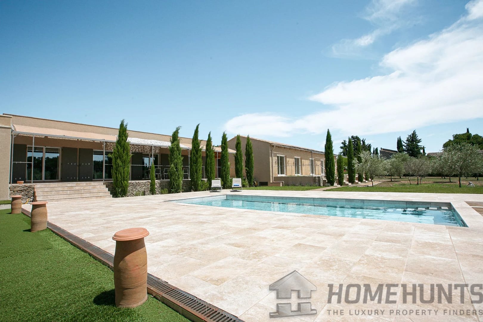 We have found this beautiful contemporary house of 267 m2 in one of the most sought-after areas of Uzes, very close to the shops. The house has two wings, one (west) comprising a large living room, a semi-open-plan kitchen, two bedrooms, 2 shower rooms and 3 separate bathrooms.