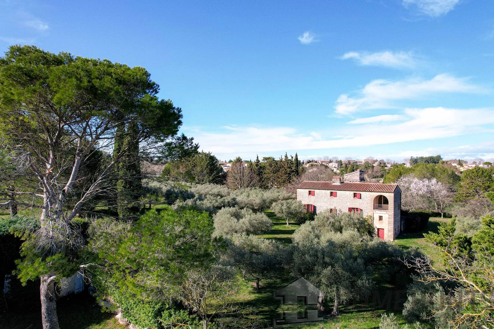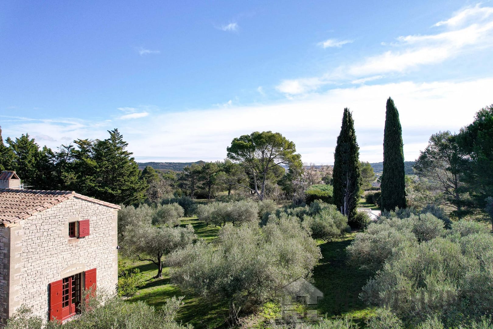 As soon as you go through the gates, you discover a park planted with major trees, interspersed with around a hundred olive trees. There are various areas bordered by attractive stone walls. There are lawn areas, areas with major trees such as umbrella pines or cypresses and a swimming pool area (10 x 5 with chlorine filtration) as well as several terraces.