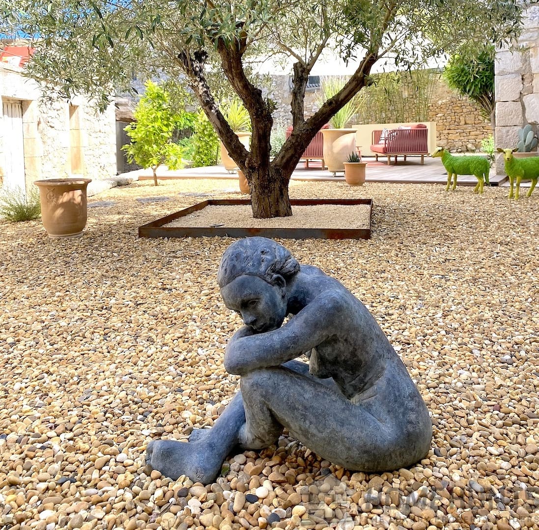 The garden area, designed for minimum maintenance, with secluded terraces sheltered by overhead sails…