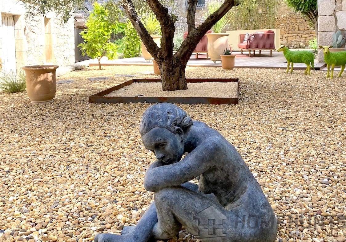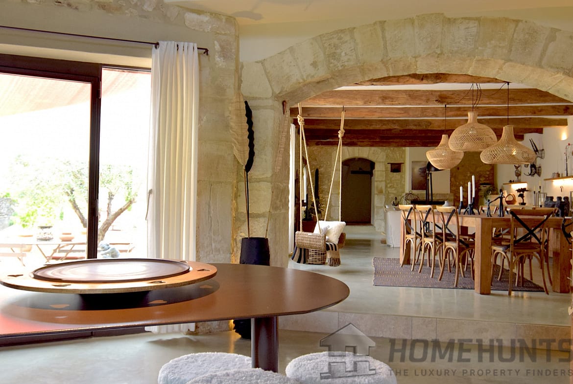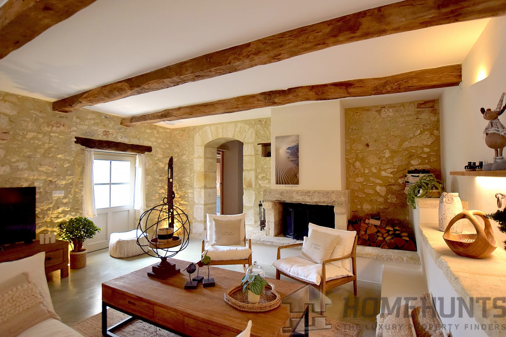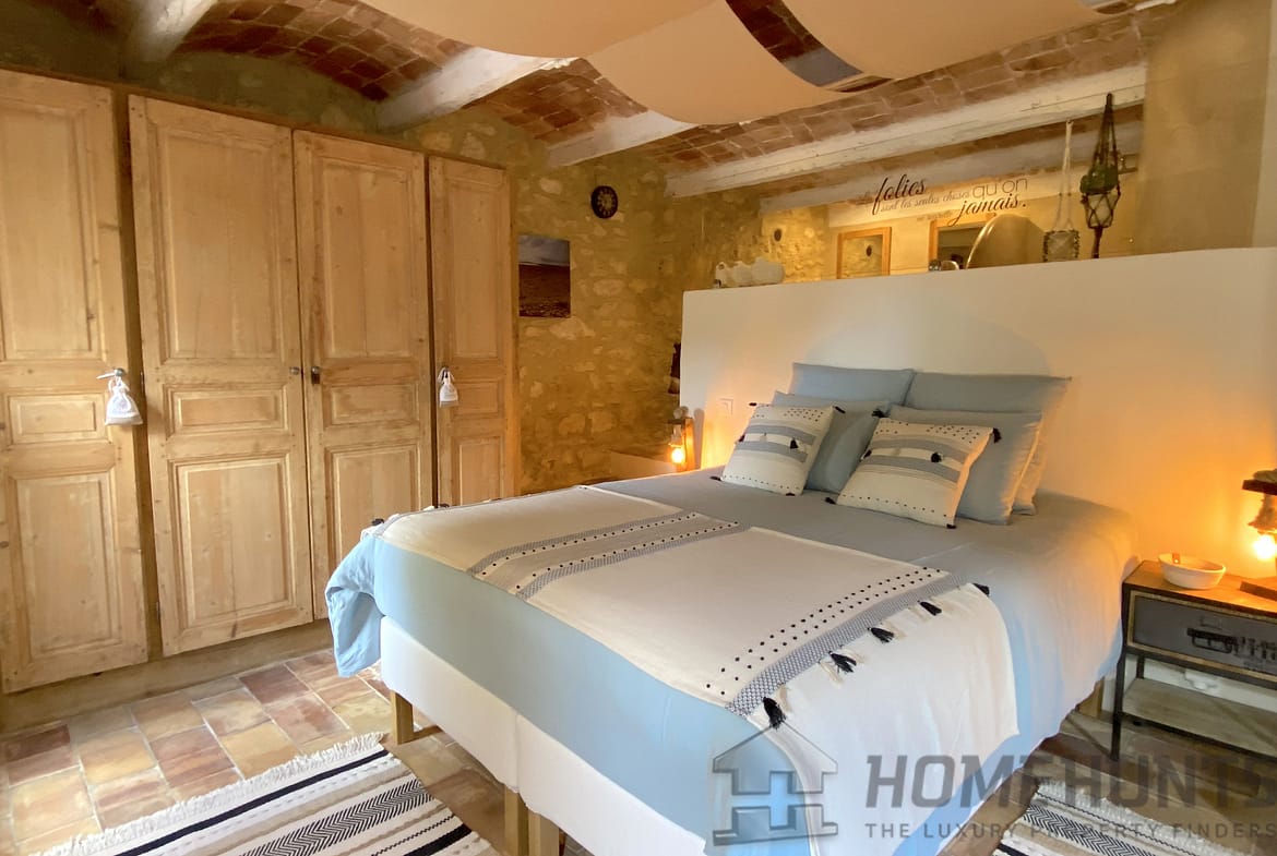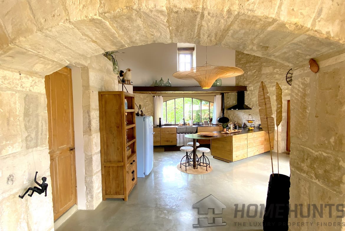 Surrounded by orchards, vineyards and lavender fields, among the lush hills of the Cèze valley, in an idyllically charming hamlet 20 k from Uzes, this old stone village house has been superbly renovated to a very high standard.
