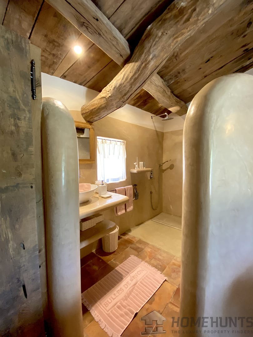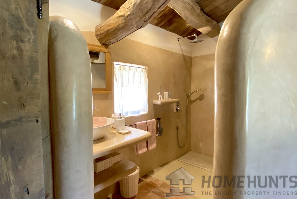 A total of four magnificent bedrooms, each with its own en-suite shower room, again with terracotta tiles, wood panelling and a harmony of colours and materials, conducive to calm and serenity.
