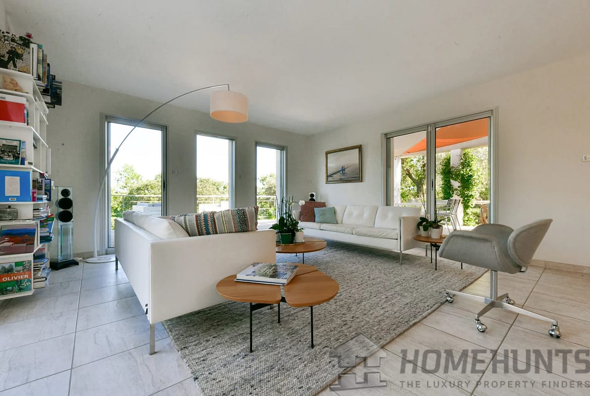 Superb views and exceptional light – Spacious living rooms, kitchen with pantry, utility room – 4 bedrooms, 4 bathrooms – Park of 2,750 m2 with swimming pool, garage, wine cellar