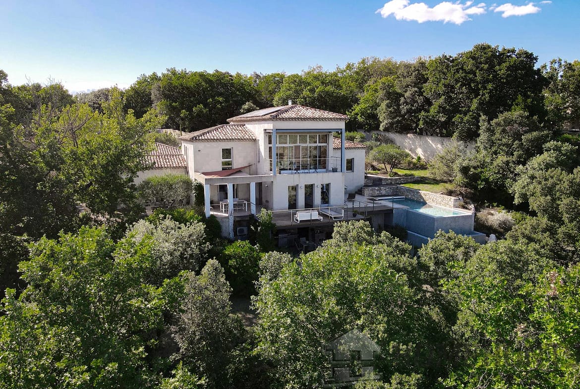 This contemporary 220 m2 property is ideally situated on a hillside, on the edge of one of the region’s most sought-after villages, 8 km from Uzes.