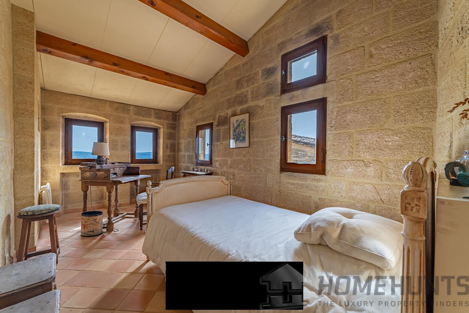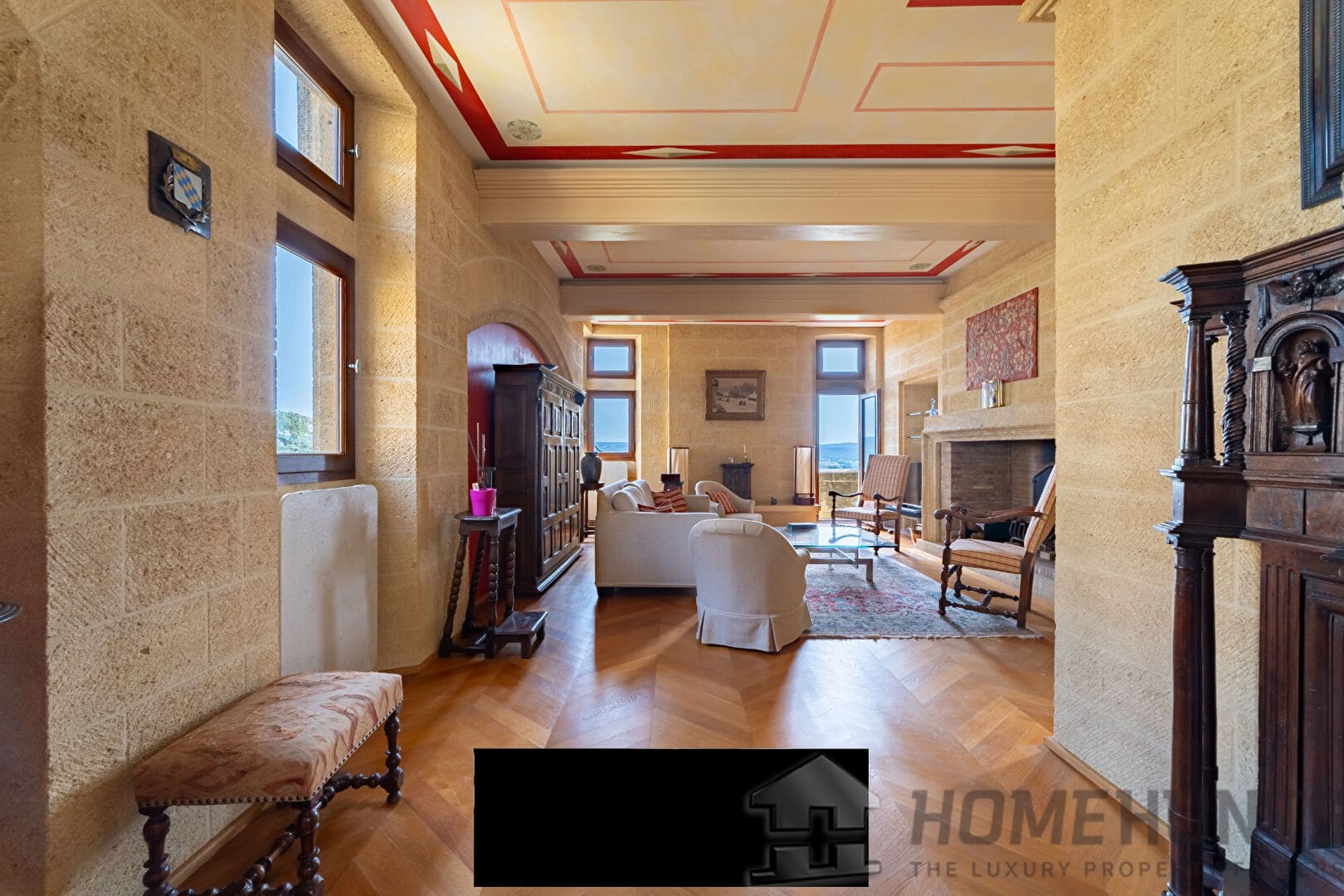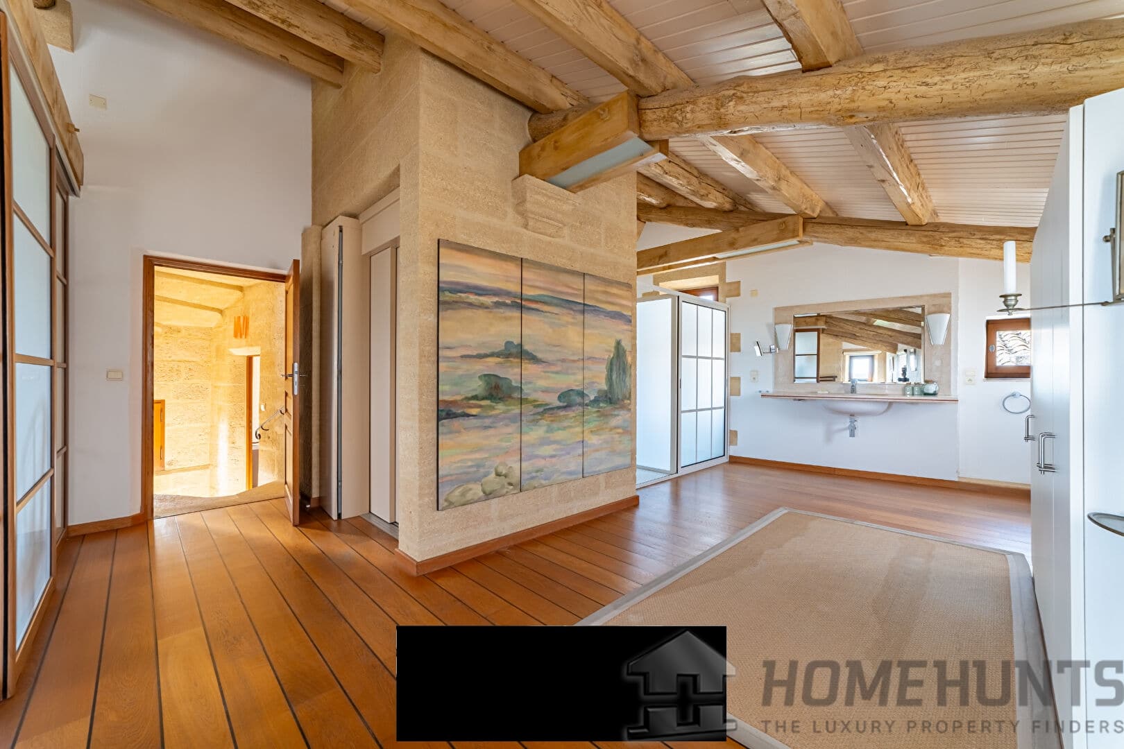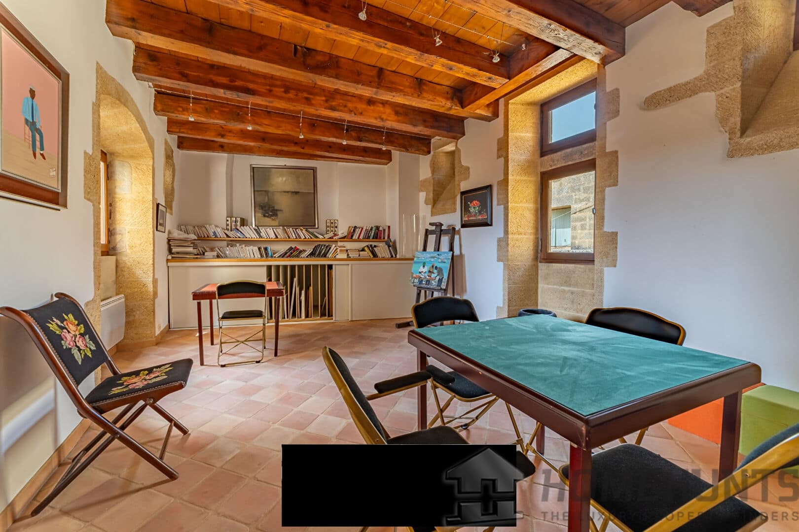 In a subtle play of levels and via a very beautiful central stone staircase, on the first floor you will discover a pleasant room which serves as a painting workshop, then a living room of almost 45 m2 offering magnificent solid parquet flooring and a generously sized fireplace. and an office with a balcony, all enjoying a breathtaking view.