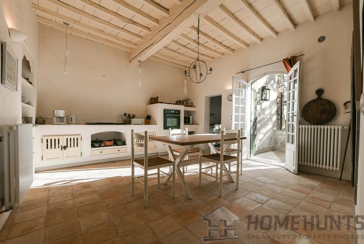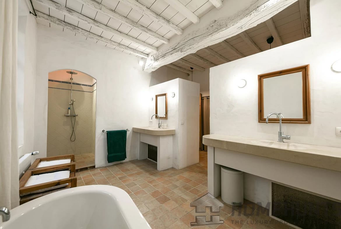 On the first floor, either via a fine stone staircase or a lift, there is a pleasant living room with beautiful French ceilings. Adjoining the living room, the 23 m2 kitchen-diner has direct access to the south-facing terrace with uninterrupted views over the garden. On the same level, the master suite also opens onto the terrace. It comprises a dressing room, a spacious bathroom with bath and shower and a study area.