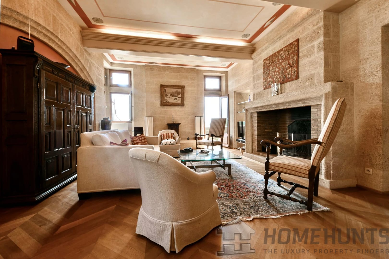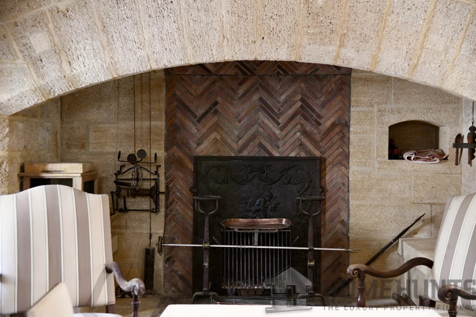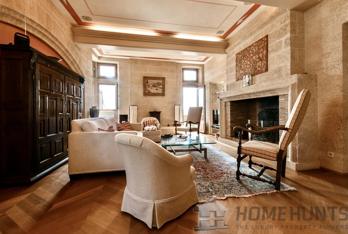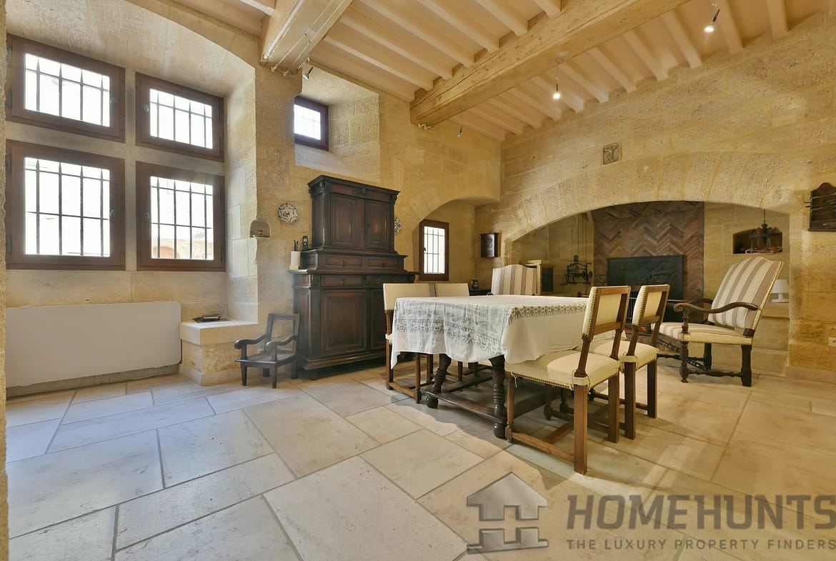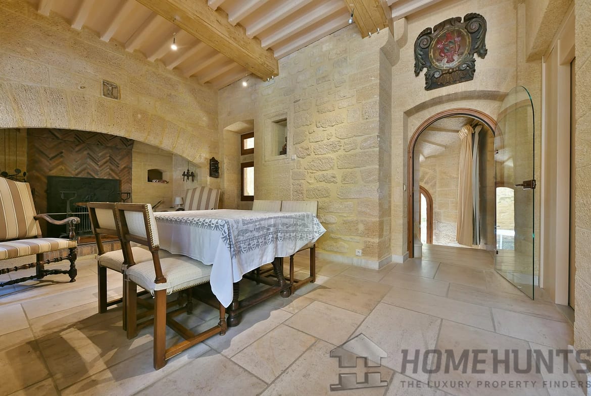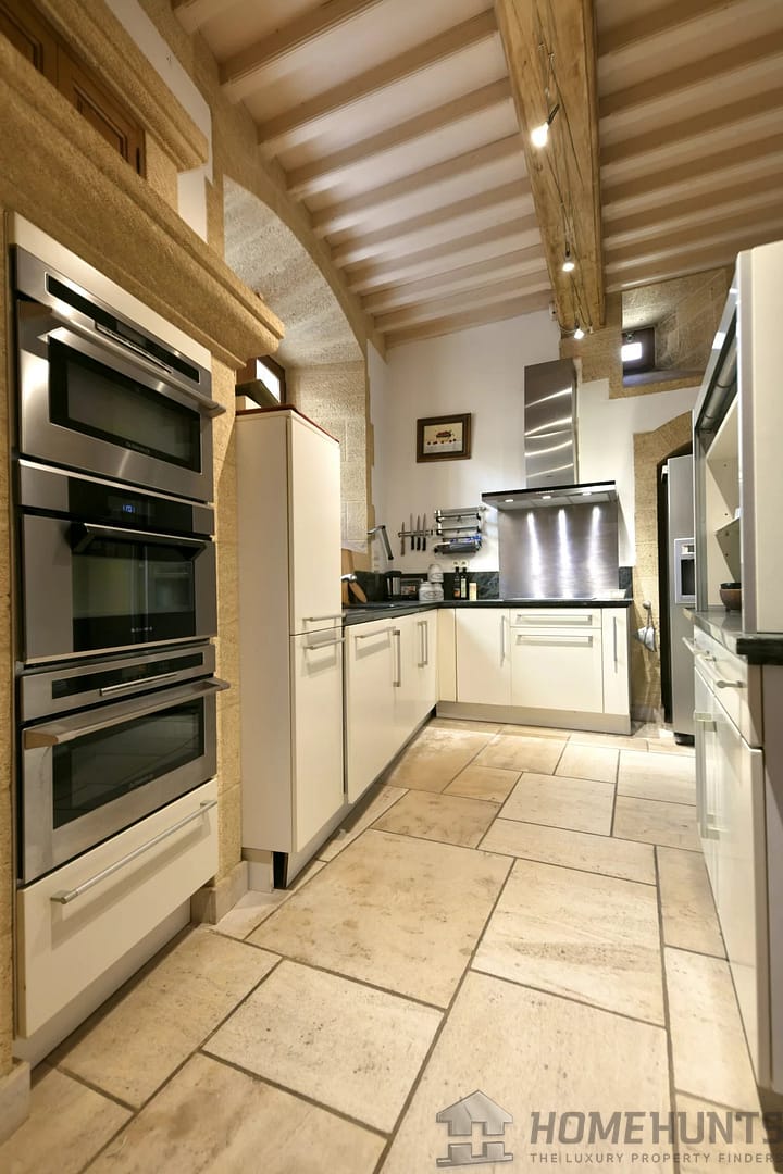 From the entrance, the first living area offers generous volumes and opens onto a landscaped courtyard. A 37 m2 kitchen/dining room with a monumental fireplace and access to the lift. Also on this level, a hallway gives access to a guest toilet and a 10 m2 storeroom/laundry room.