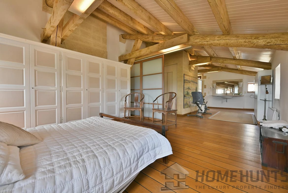 On the second floor, there are two suites and a bedroom with breathtaking views. The first suite, the main one, accessible by lift or main staircase, offers a comfortable volume of over 42 m2 divided into two open spaces, a bedroom overlooking the valley, countryside and hills and the large bathroom on the old village side. The second 25 m2 suite offers a bedroom opening onto a bathroom and a dressing room with storage space. The third bedroom offers the same views as the master suite.