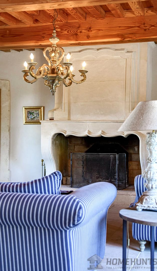 The entrance hall leads to a comfortable living room, featuring a lounge with a stone fireplace made from local stone, a dining room and a fitted and equipped kitchen. The open-plan living area opens onto a terrace with breathtaking views of the surrounding countryside, while the other side looks out onto the private part of the garden. Adjoining the kitchen is a storeroom.