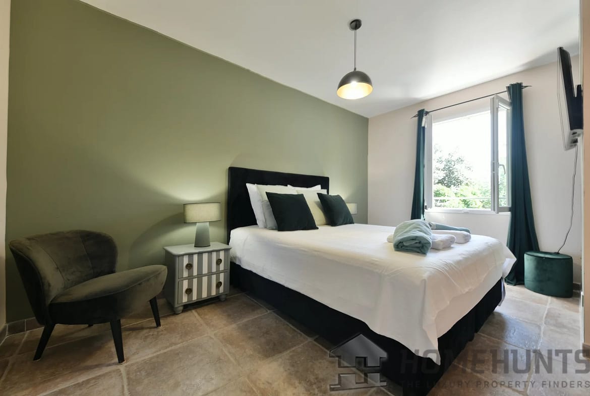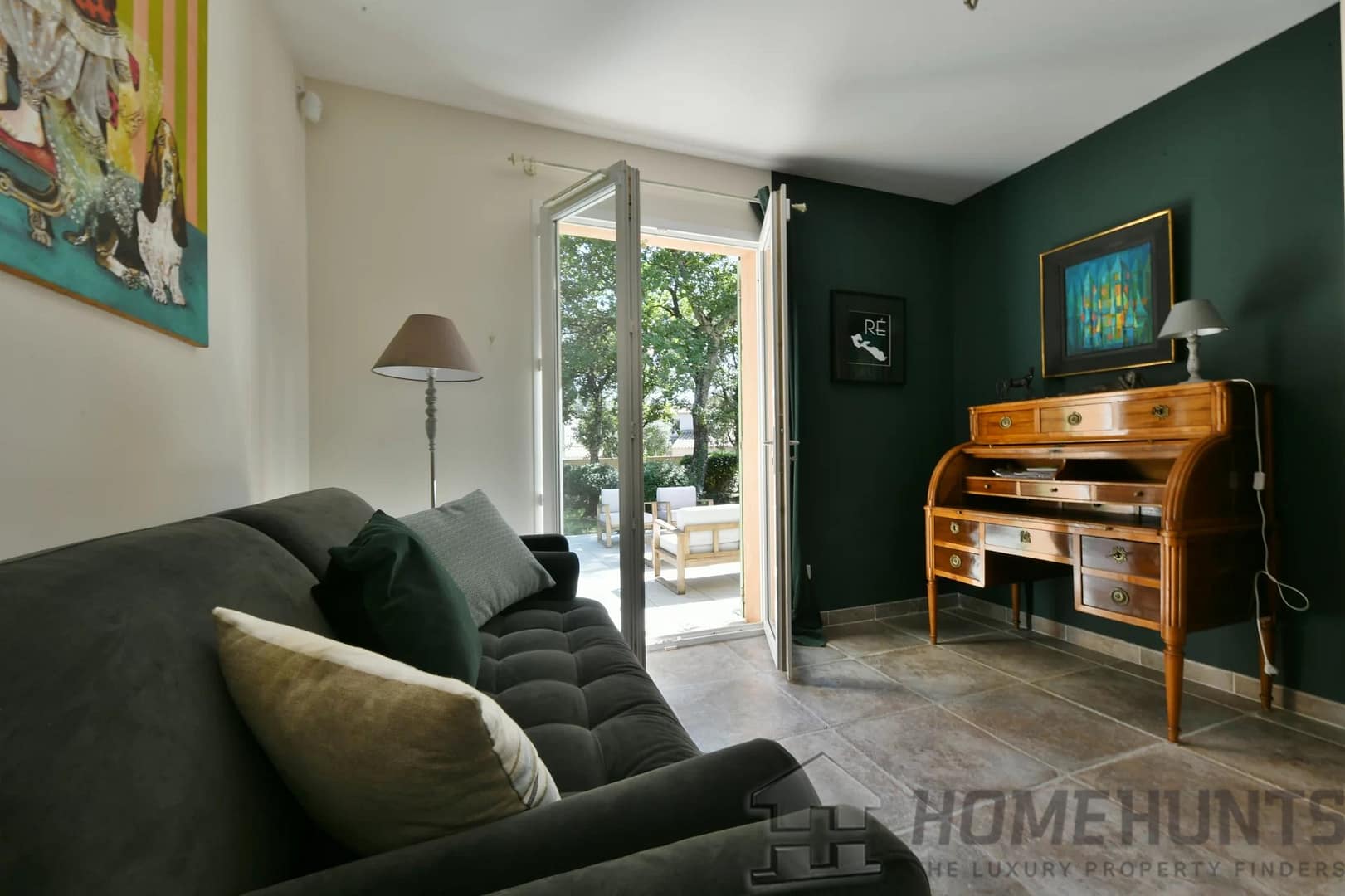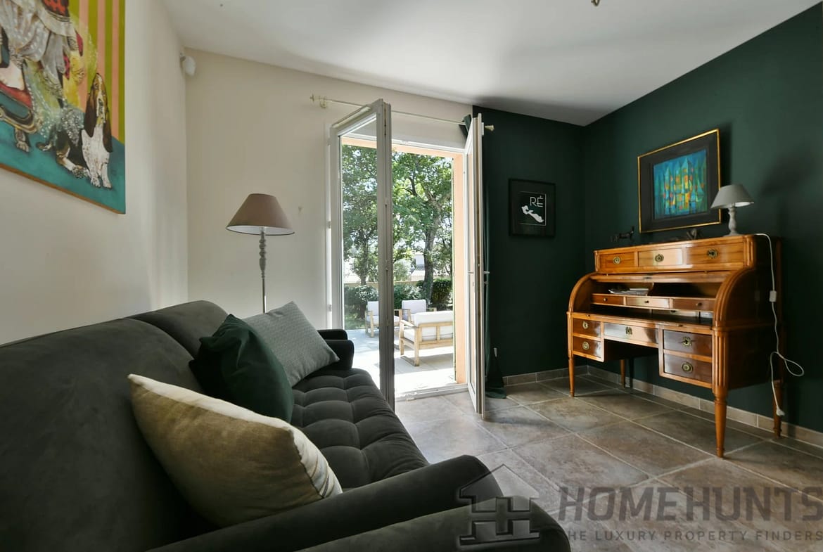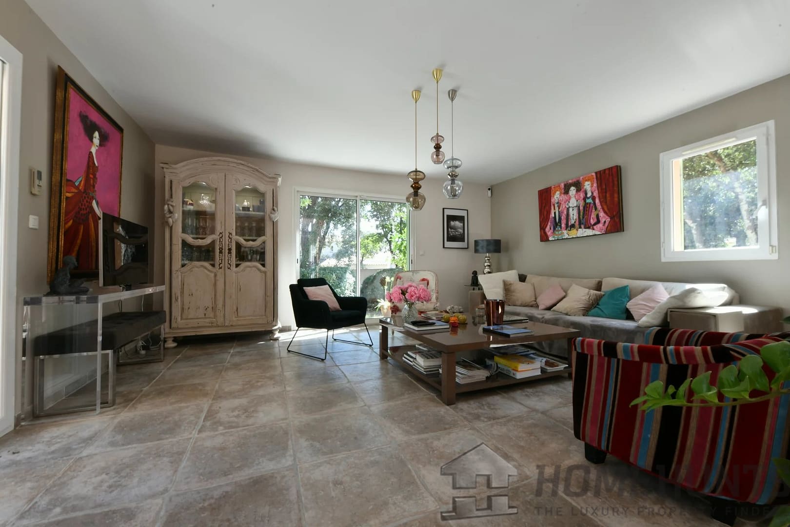 Built on one floor above the ground floor, it comprises a beautiful, spacious and bright living area opening onto the garden, a fully equipped kitchen, a study and a lounge-library that could be converted into an additional bedroom.