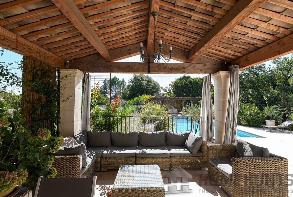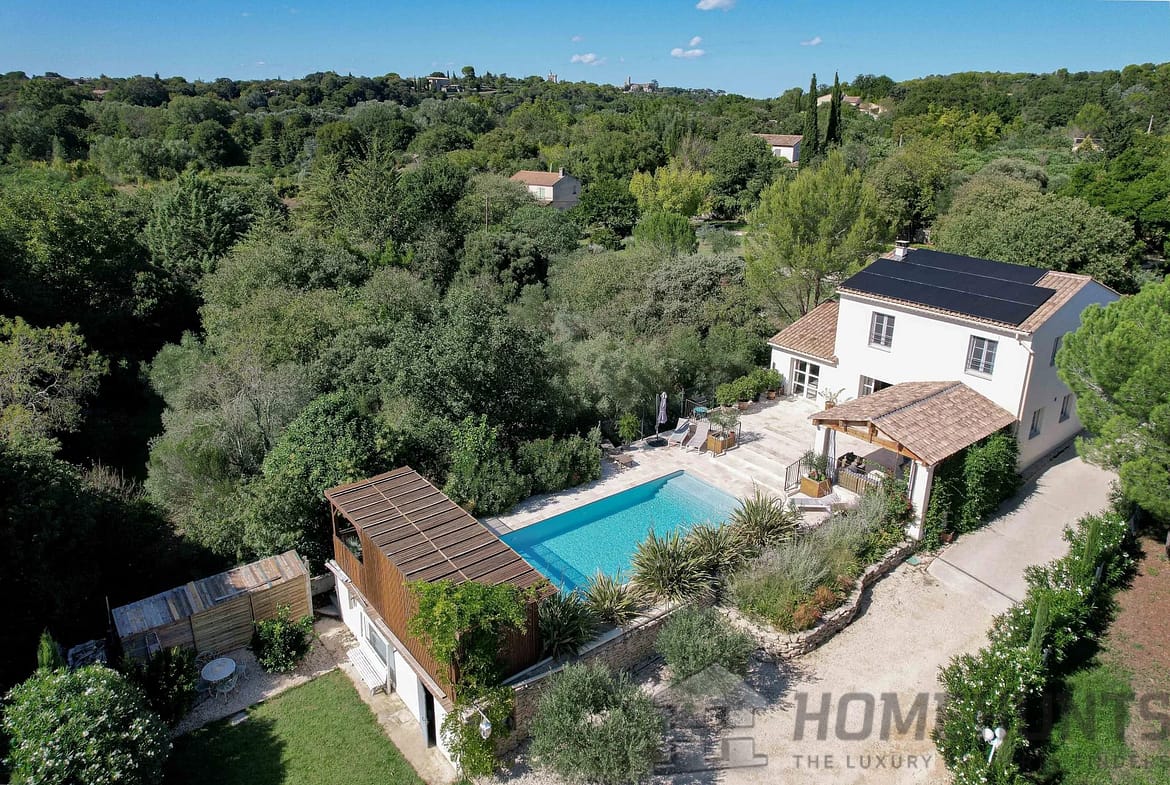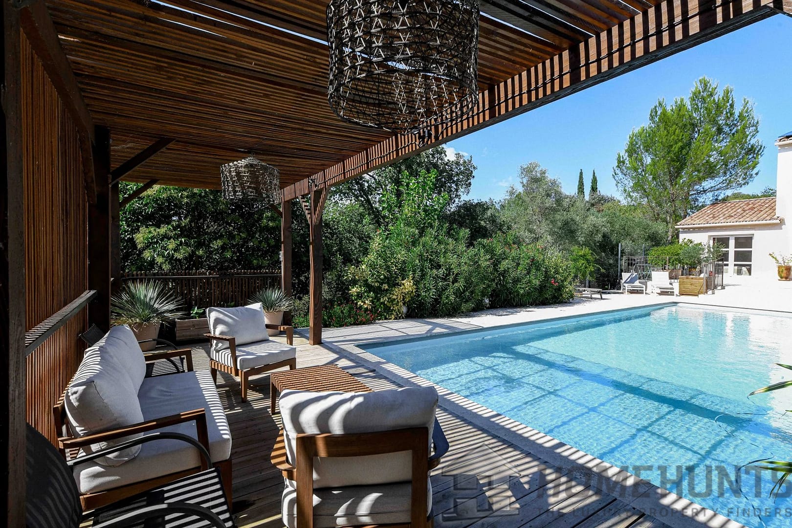 Just a few minutes from the historic center of Uzes, discover this charming 205 m2 residence set in a beautifully landscaped garden of over 1,500 m2 with mature trees, a swimming pool, and a summer lounge.