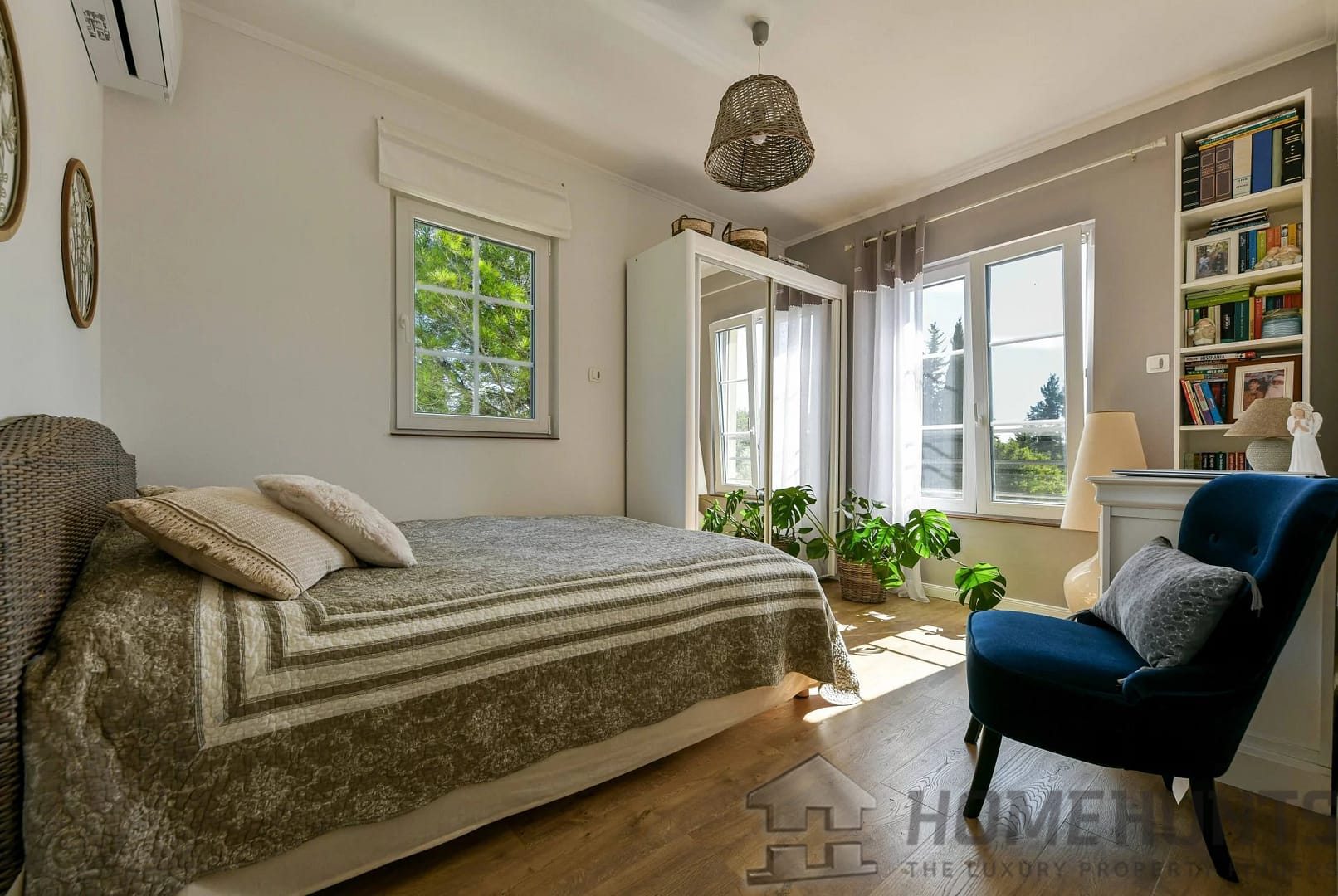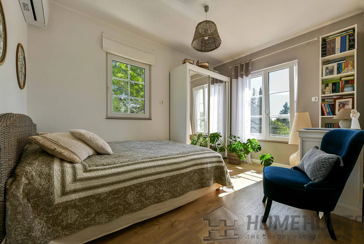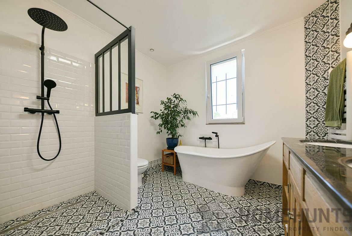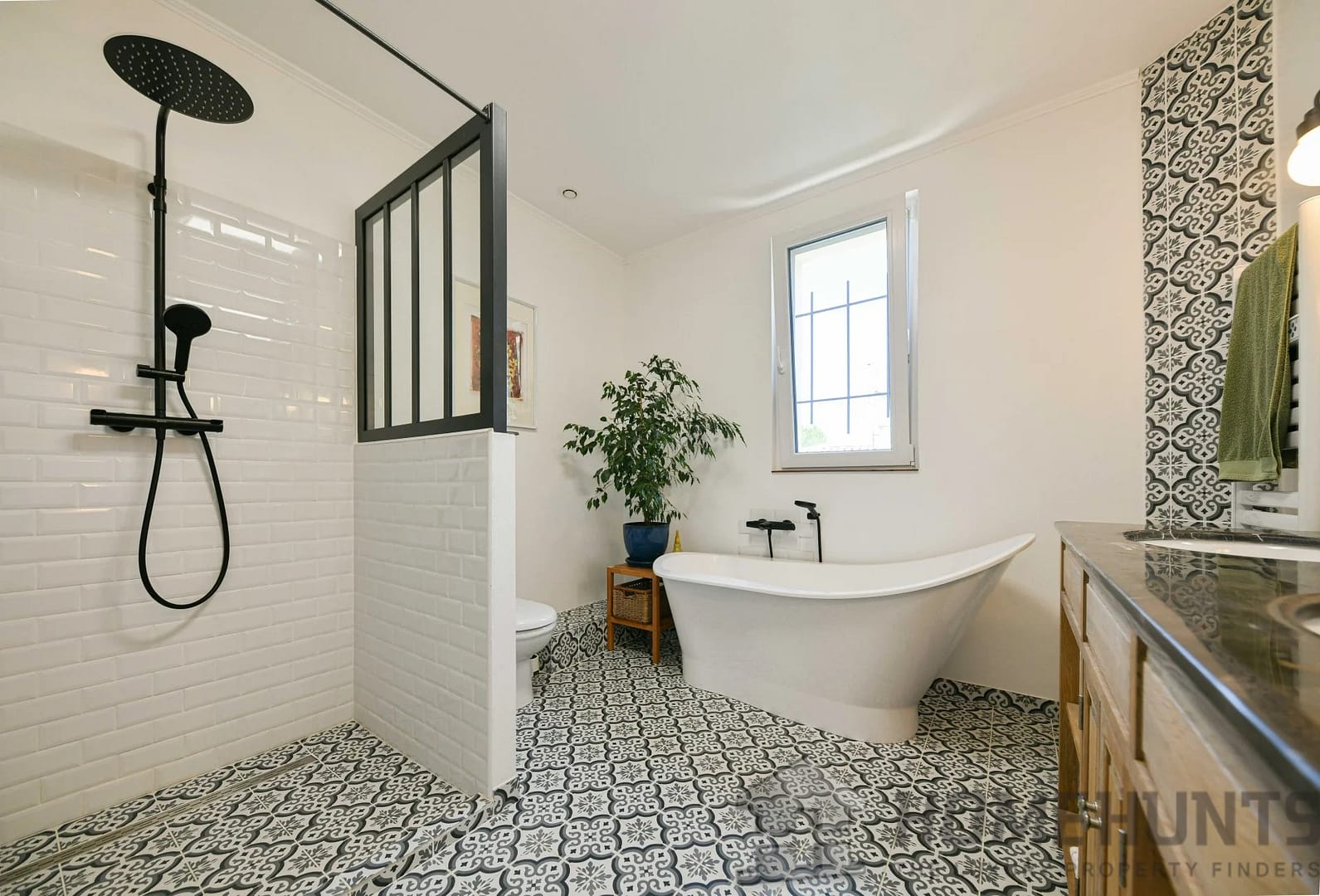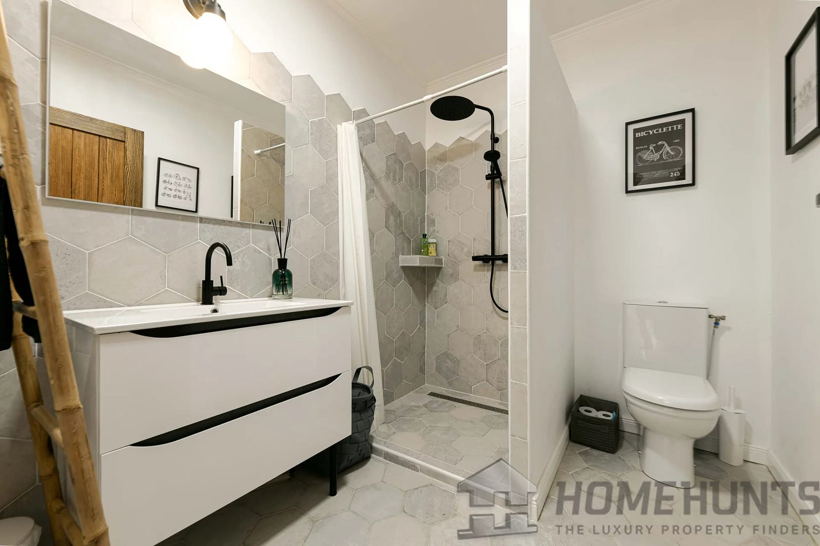 It offers five bedrooms and three bathrooms, including a ground-floor suite, ensuring comfort and privacy for residents and guests alike.