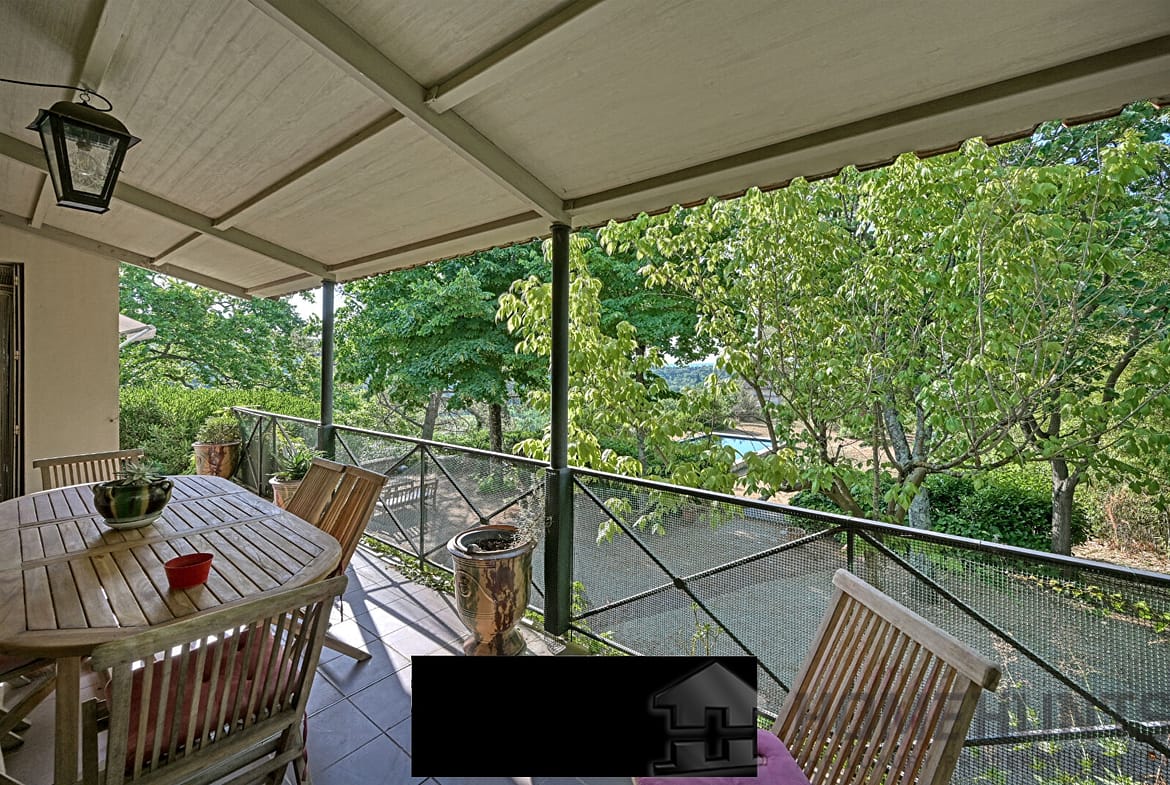 The garden of more than 2500 m2, bordered by greenery and facing the horizon, accommodates a beautiful 5×11 m swimming pool, two garages, and a large workshop ideal for creation or storage.