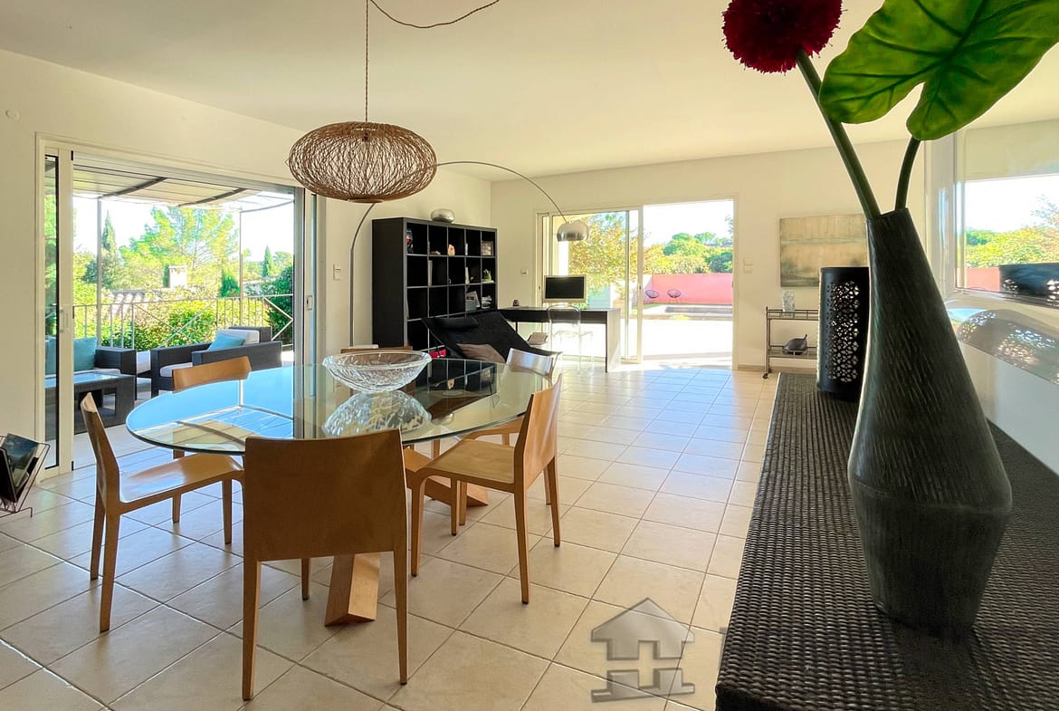 Ideally located a 15-minute walk from the center of Uzes, in a peaceful neighborhood where tranquility reigns supreme, this refined property of approximately 200 m2 offers bright, airy spaces spread over two levels and enjoys unobstructed views of the surrounding countryside.