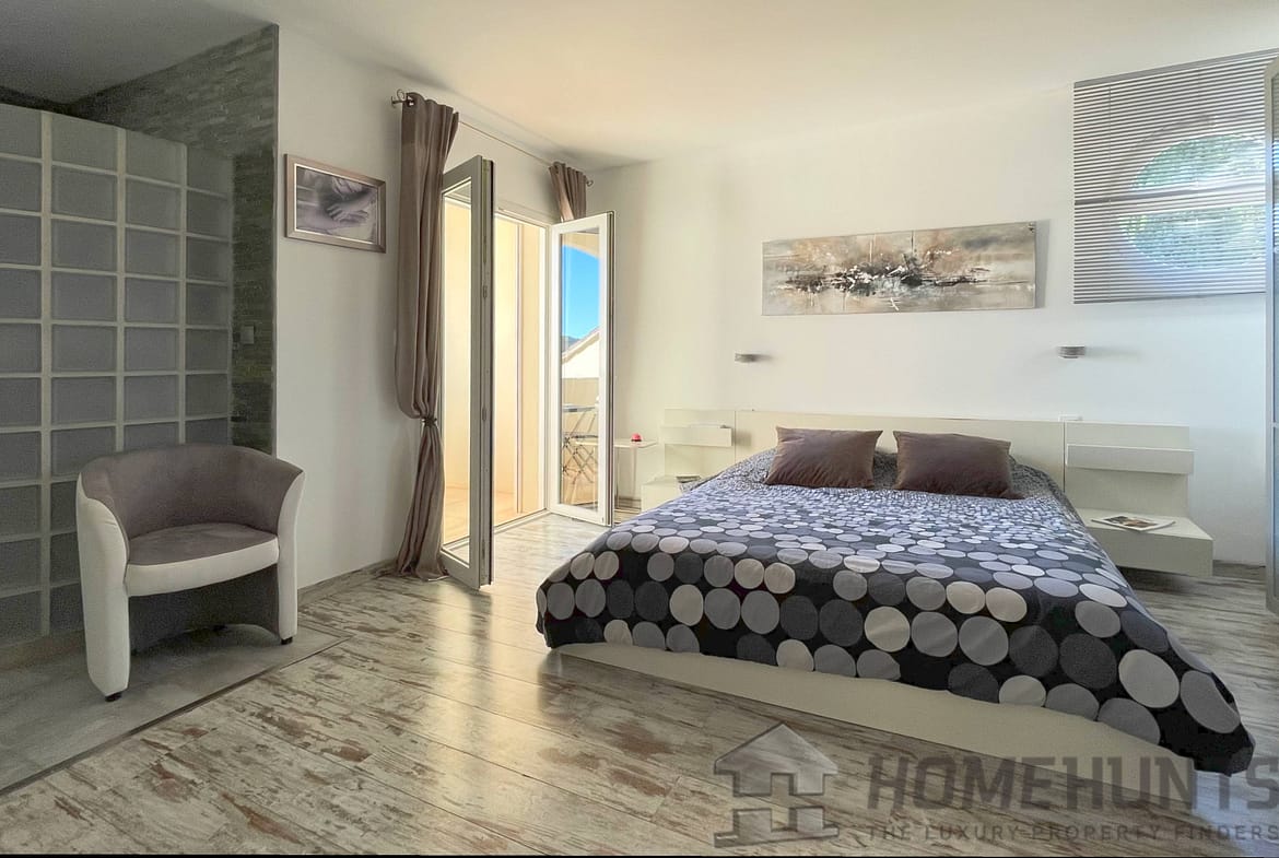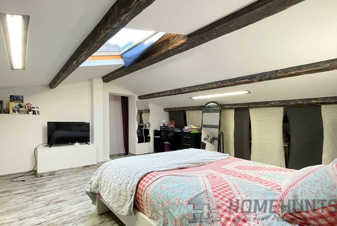 The upper floor, entirely dedicated to the owners, features a beautiful master suite opening onto a private terrace, along with an attic room that can serve as a dressing room, office, gym, or guest bedroom, depending on your needs.