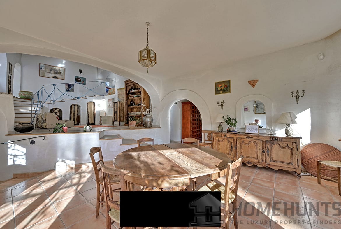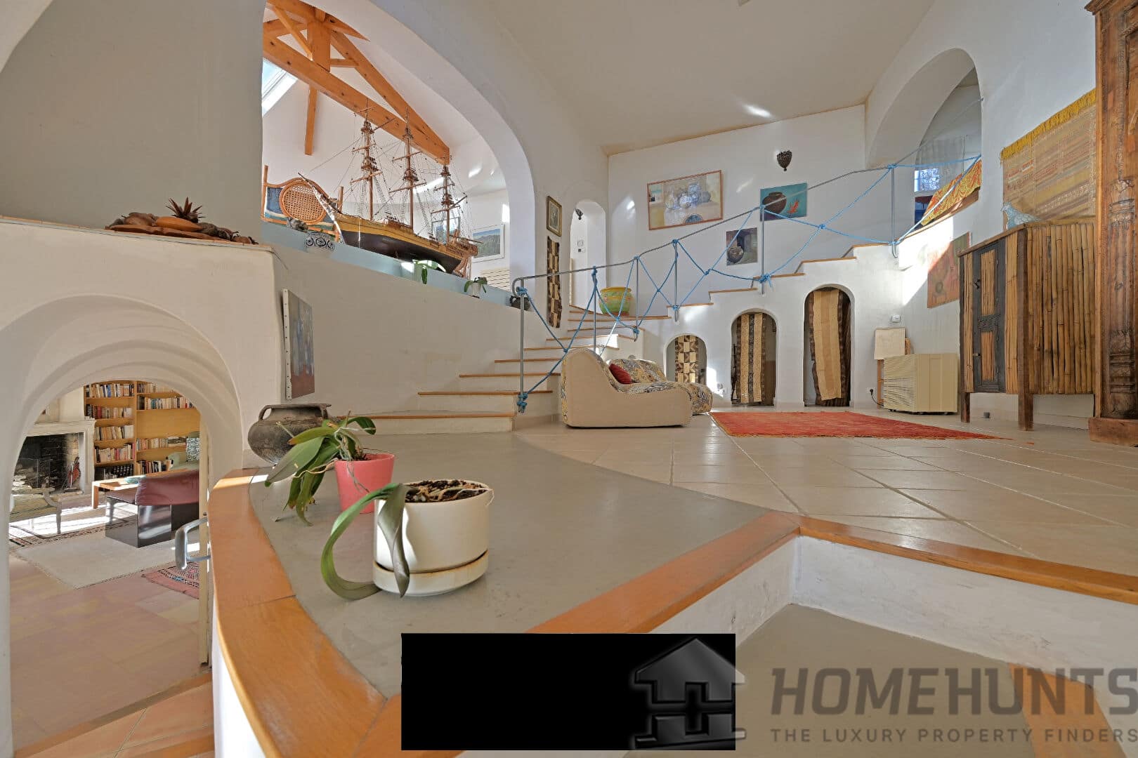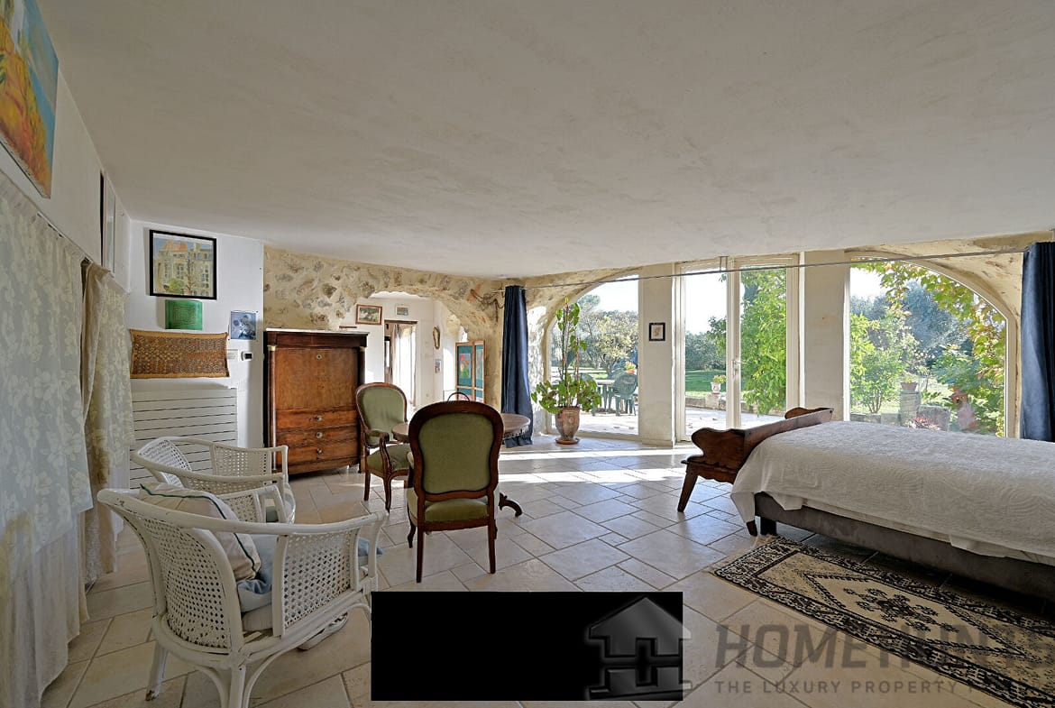 Over 400 m2 of living space are organized around generous living areas: an enfilade dining room, living rooms with contrasting ambiances, a convivial kitchen, and an artist’s studio that forms the vibrant heart of the house–an inspiring, almost sacred space where verticality and arches speak of the place’s history. The bedrooms, spread across two levels and located at either end of the property, form truly intimate retreats, each with its own unique interpretation of space and light.