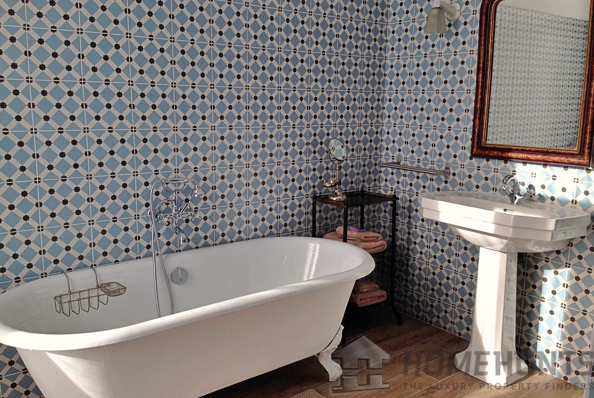 The main house offers beautiful, bright spaces with a fully equipped kitchen, four bedrooms each with their own bathroom, a laundry room, a cellar, and a large garage.