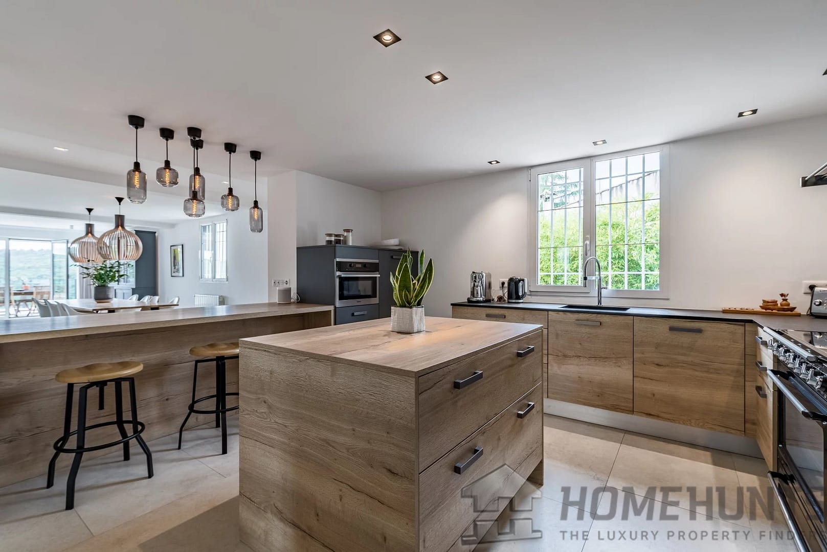 The property stands in landscaped gardens of 2600m2 with a large swimming pool of 15m with pool-house, petanque court and double carport.