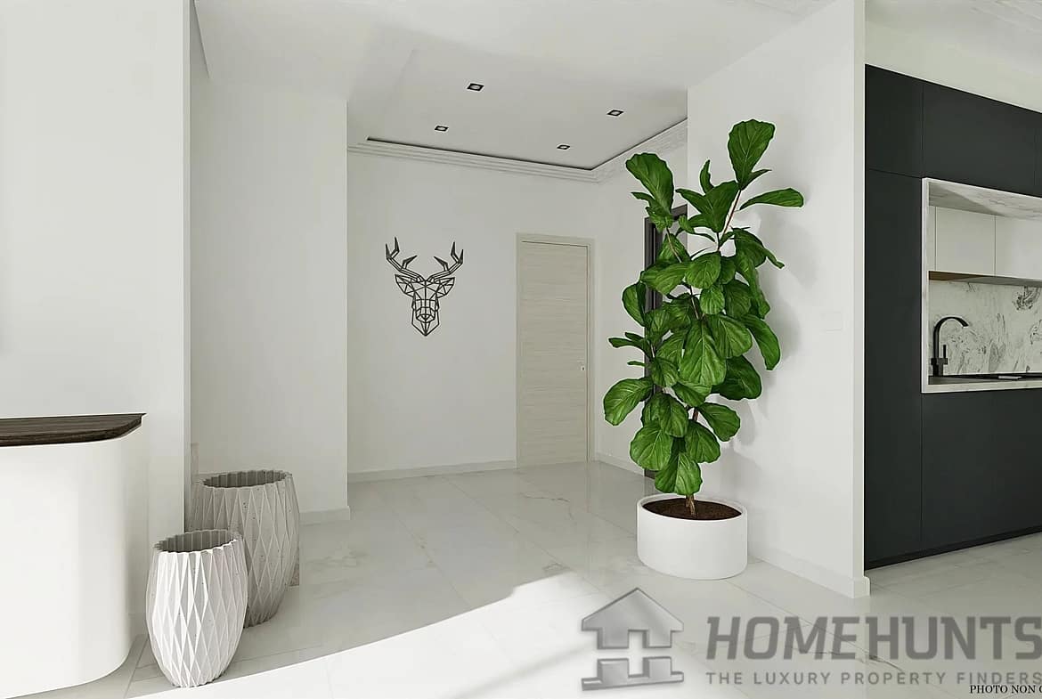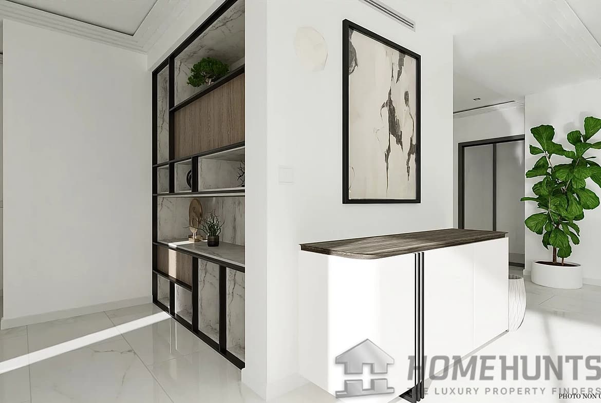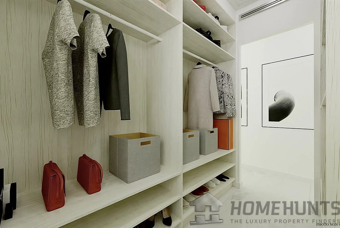 Large reception area of 70m2, living room, dining room, open kitchen, bedroom with dressing room, bathroom and toilet.