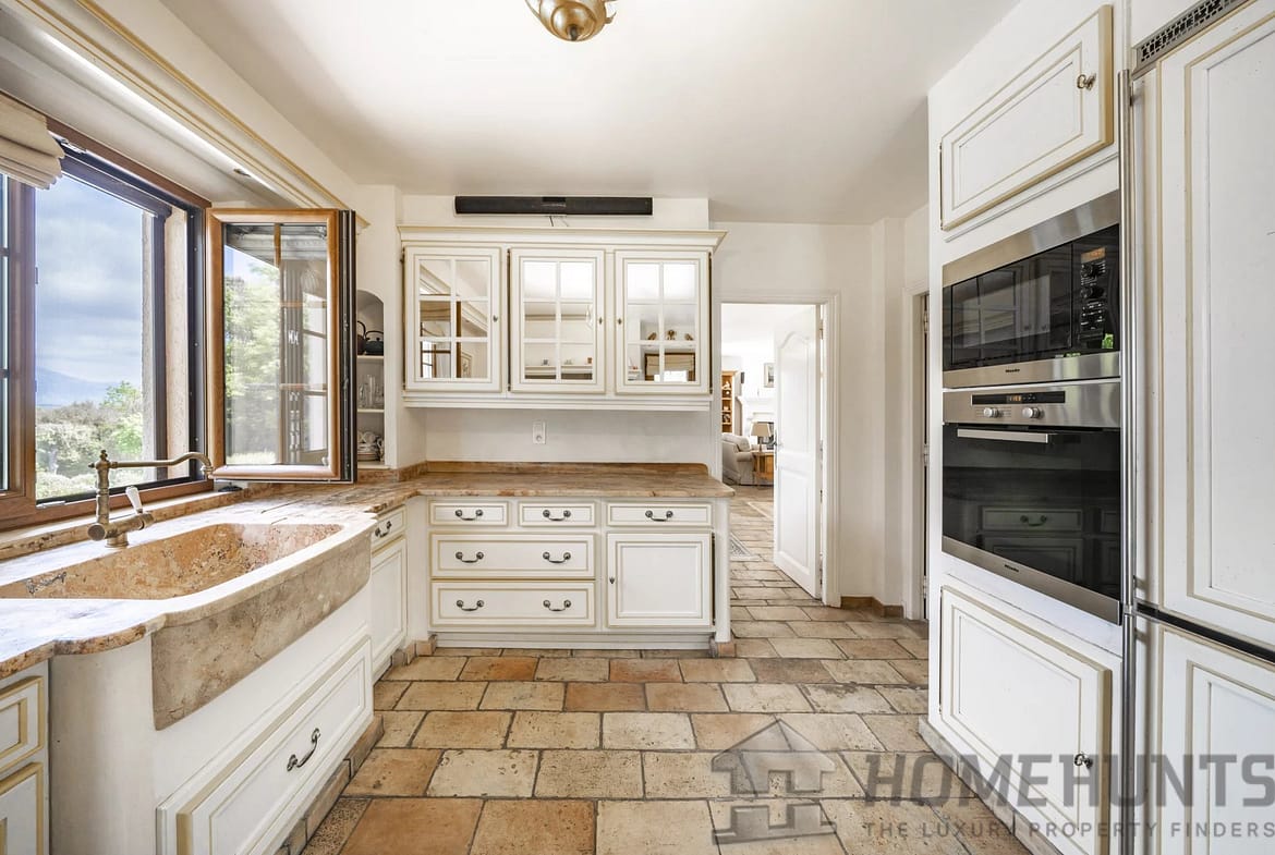 Upon entering the villa, one arrives into a bright hallway. The authentic Provencal kitchen leads on to large dining room facilities and living room. From the living room one enters a covered veranda/second living room with sliding glass doors and a great view.