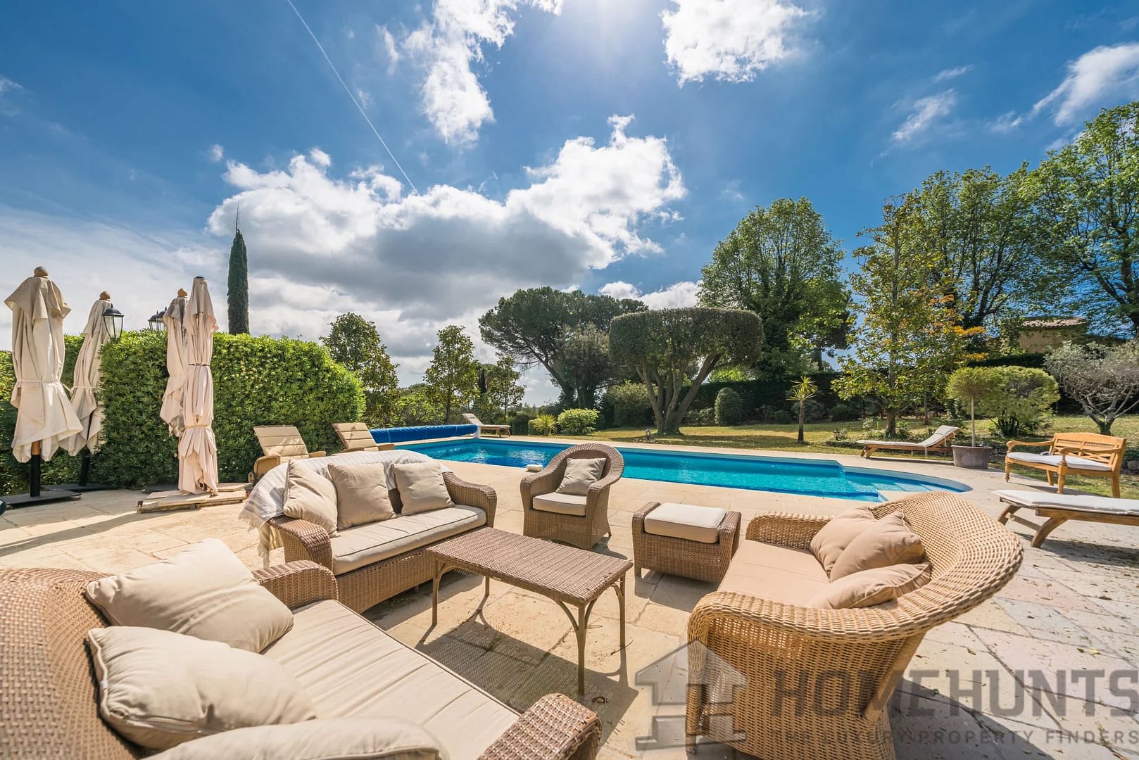 The villa is southwest facing with attractive summer terraces and a covered dining and al-fresco summer kitchen inclusive of a shower and toilet. Further, a beautiful swimming pool surrounded by sunny terraces and a petanque court.