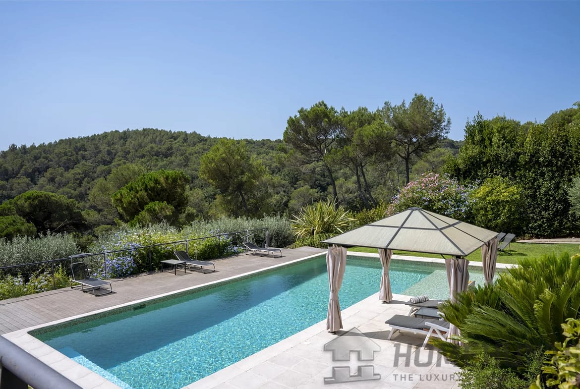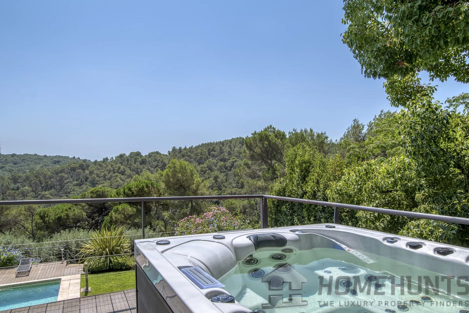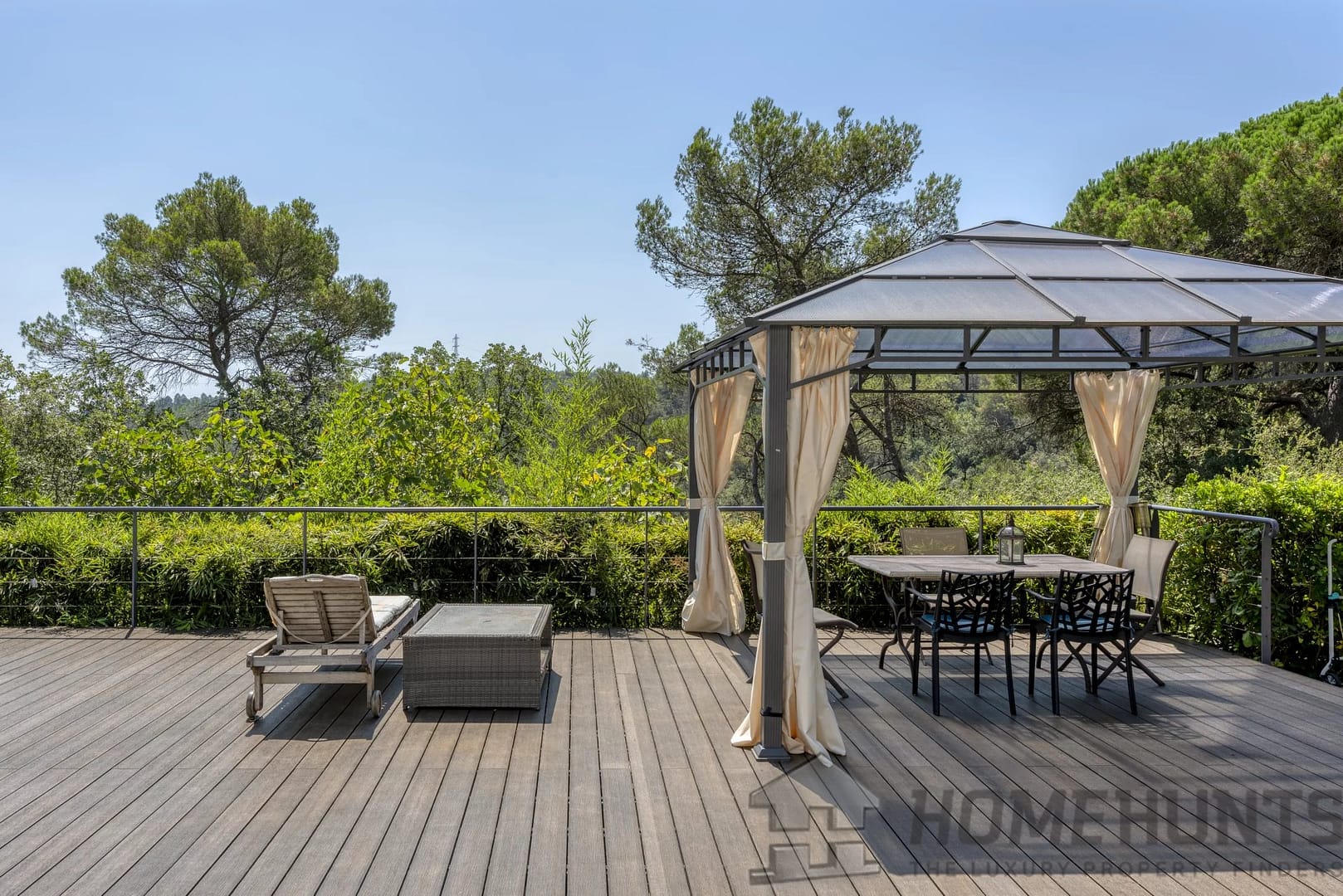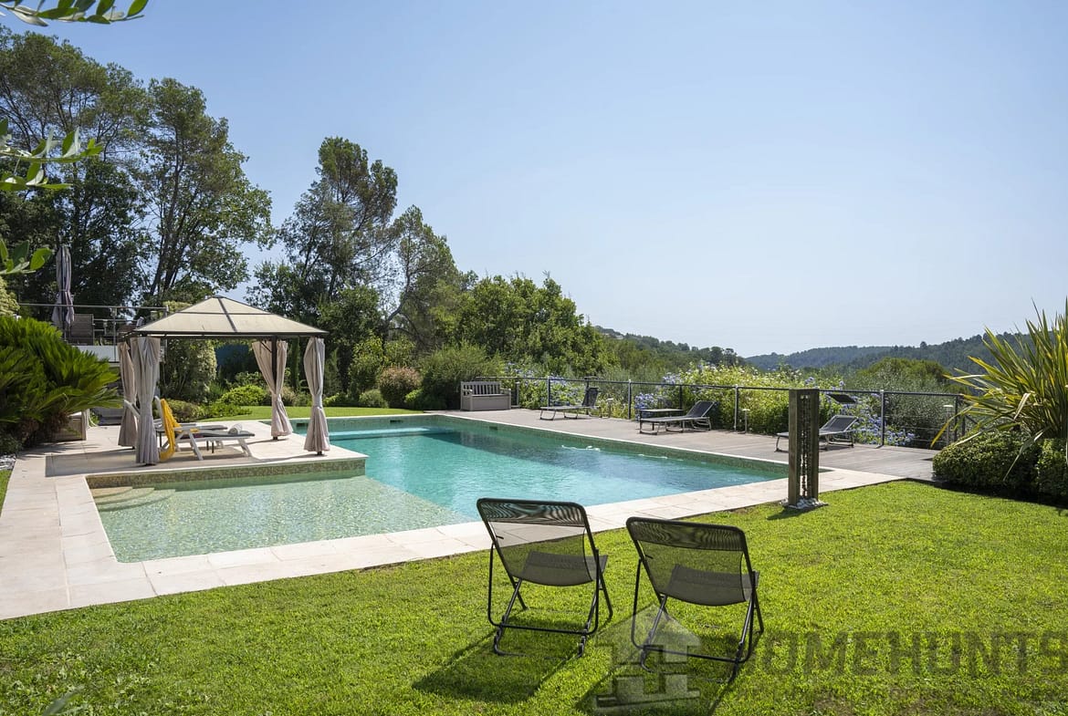 Situated in a secure estate, it offers a serene setting with absolute tranquility, breathtaking views over the Brague valley, and complete privacy with no overlooking neighbors.