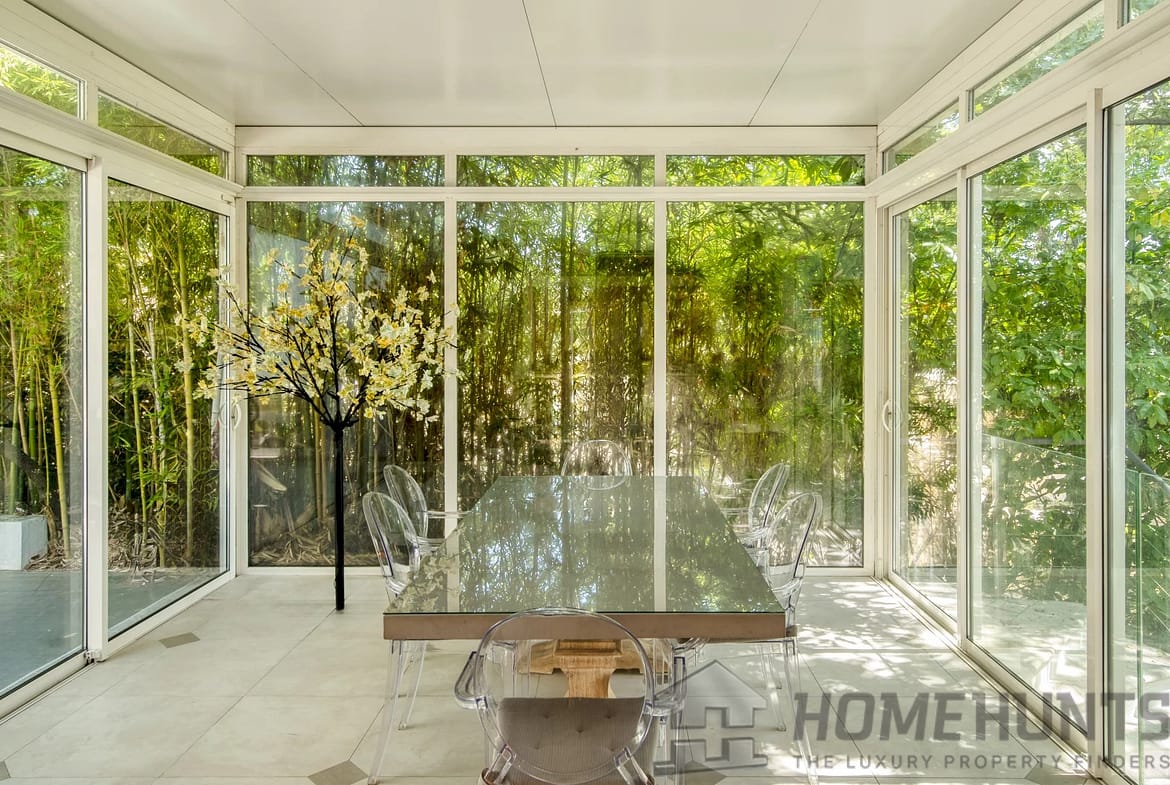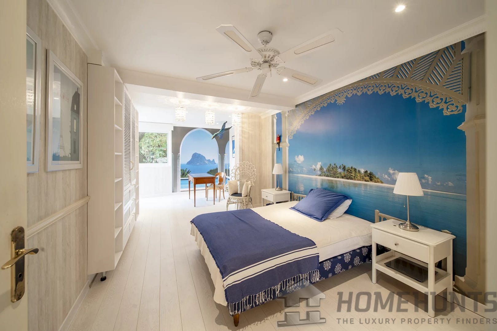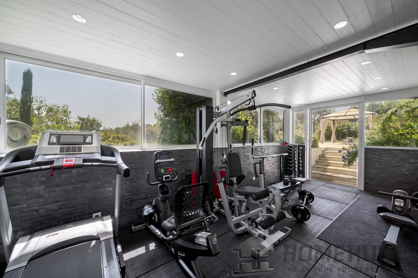 The property includes six bedrooms, each with en-suite bathrooms, toilets, and showers, as well as a sauna, a steam room, and a gym. On the same level, there is also a cinema room and a large office. The garden-level bedrooms have direct access to the garden and pool. A large basement provides ample storage space.