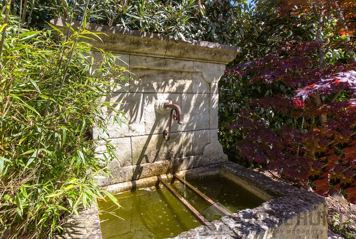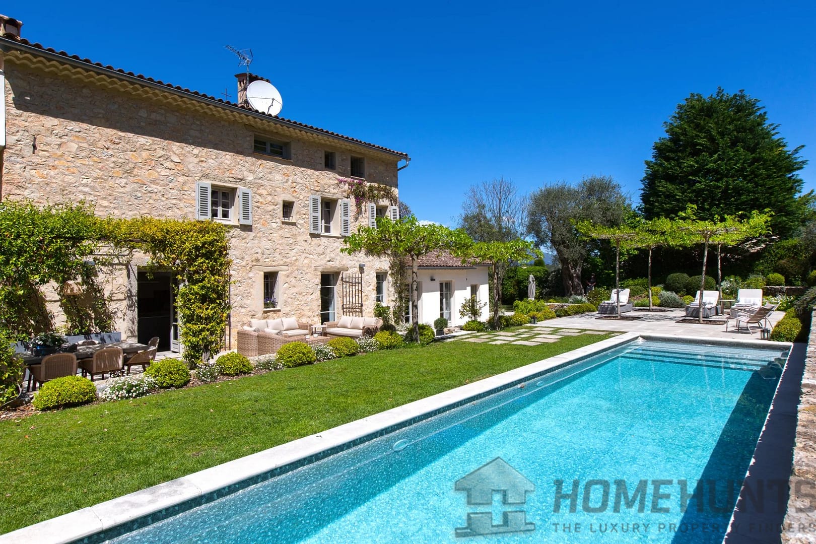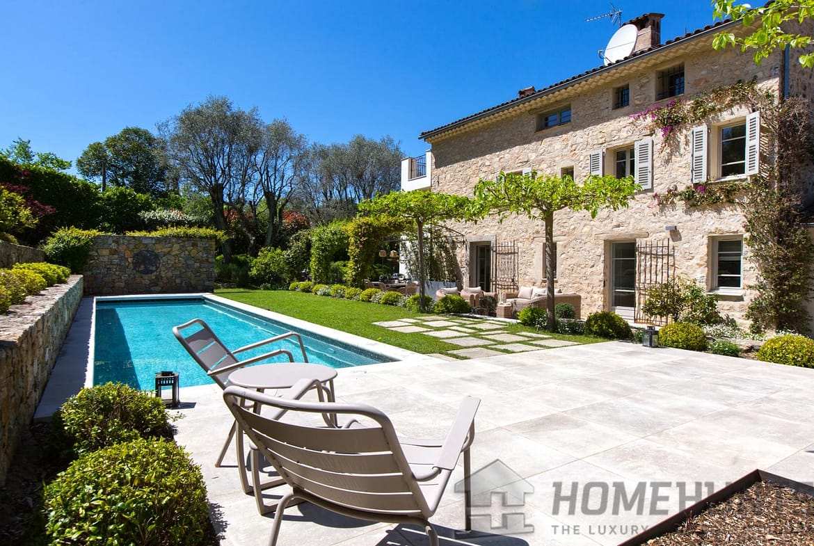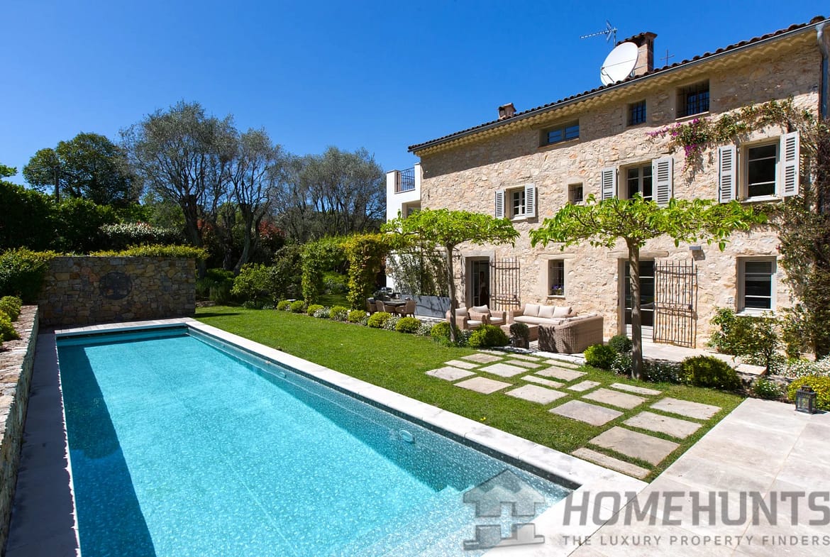 The property features traditional stonework, a meticulously landscaped garden with olive trees, and a swimming pool that captures the region’s essence.