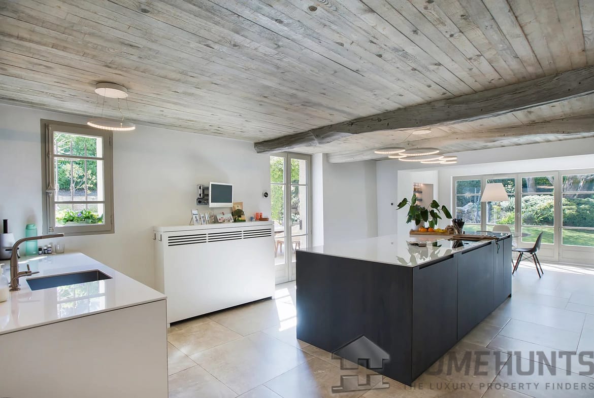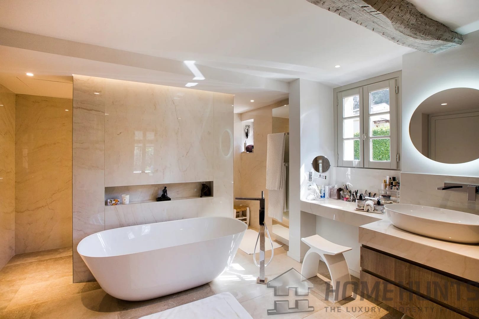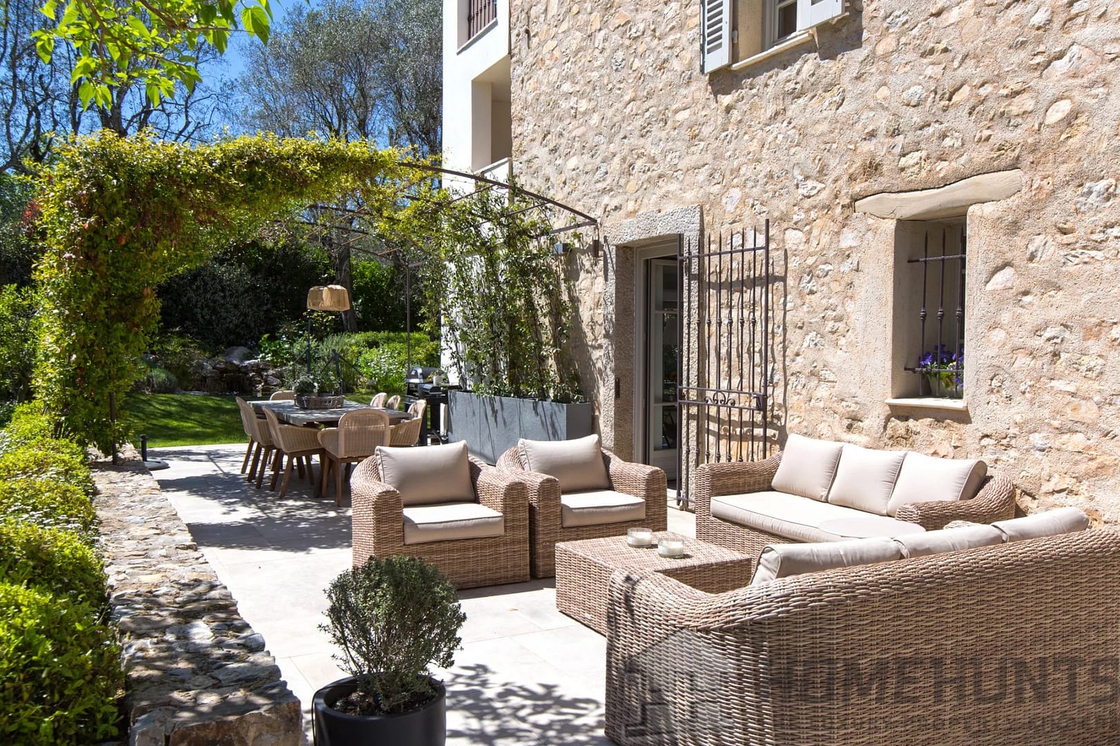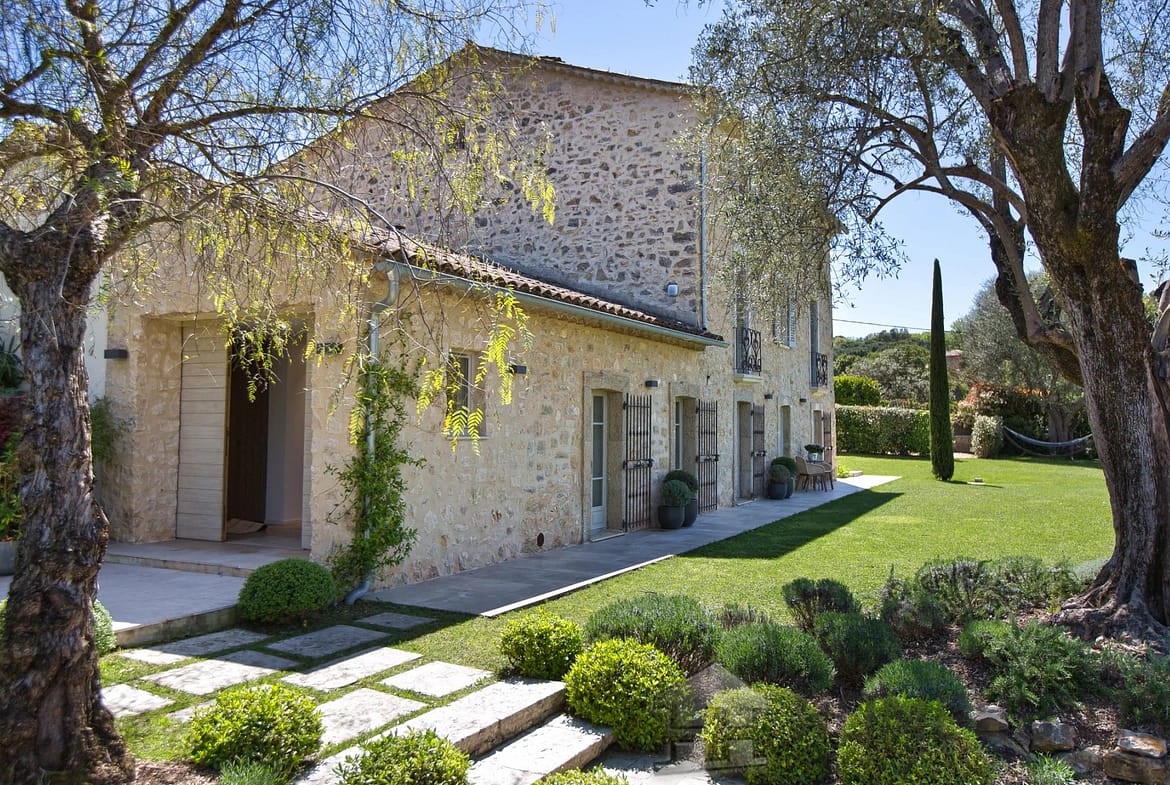 This 18th-century stone residence a short stroll from Valbonne’s village center epitomizes Provencal charm with modern refinement.