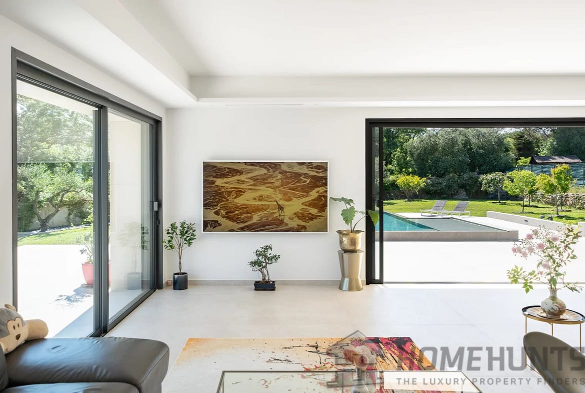 Superb contemporary villa with clean lines, offering approximately 330 m2 of living space plus annexes, located in a quiet neighbourhood, close to the village of Valbonne, international schools, and within walking distance of restaurants.