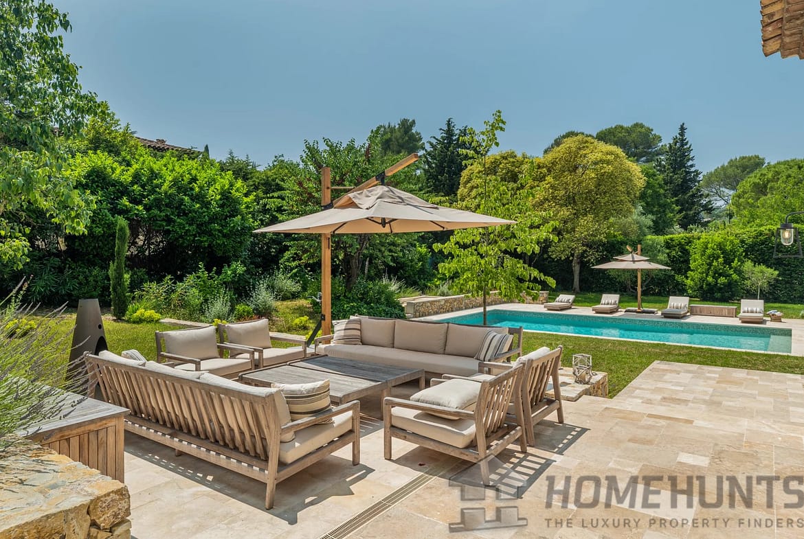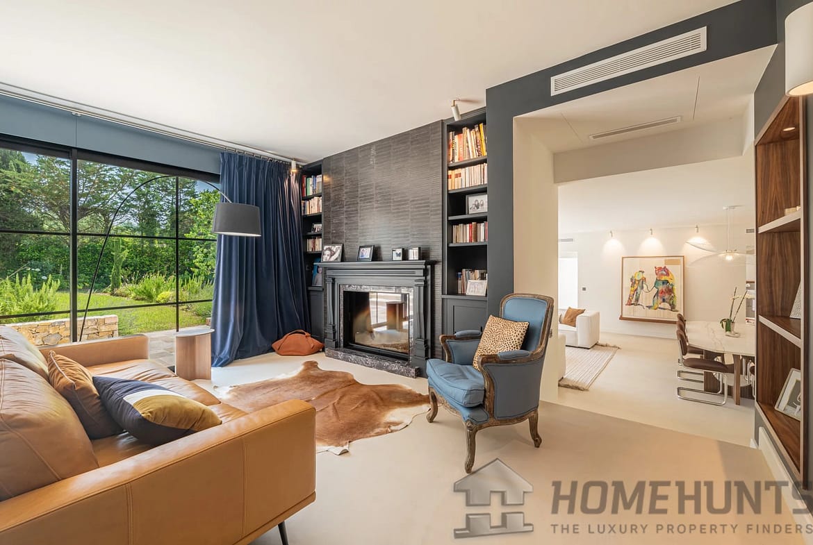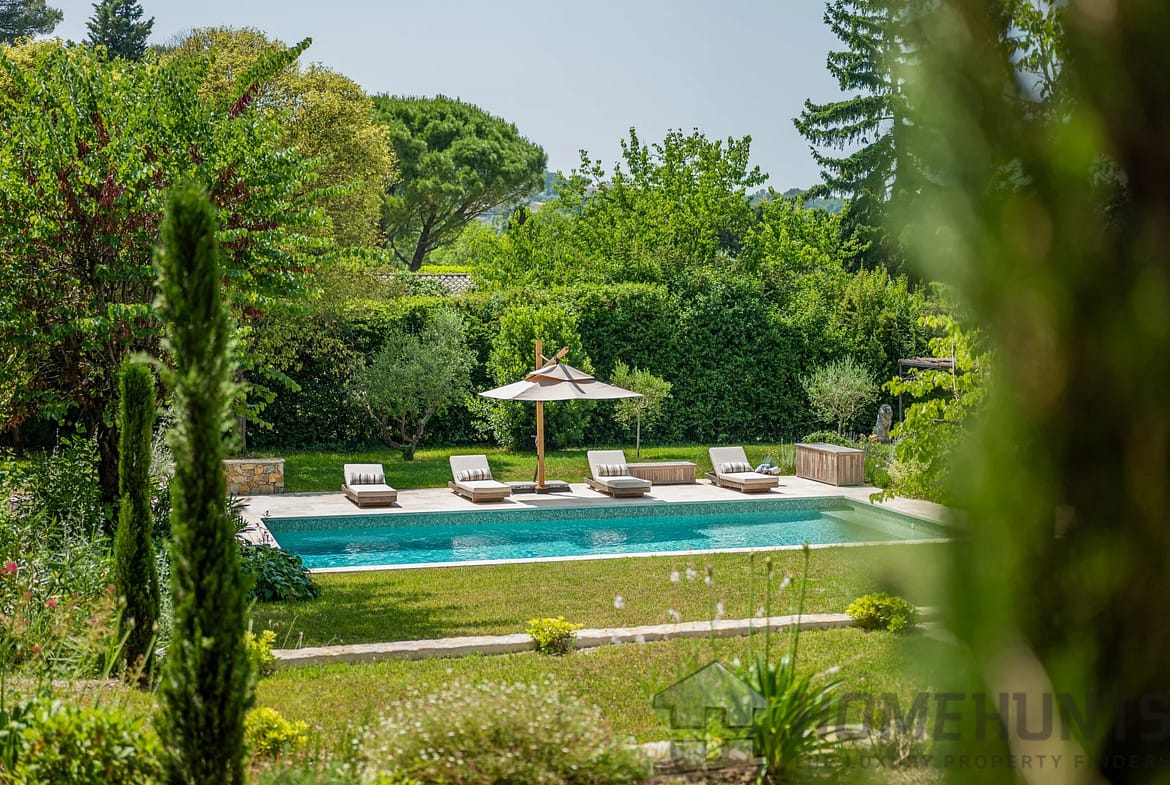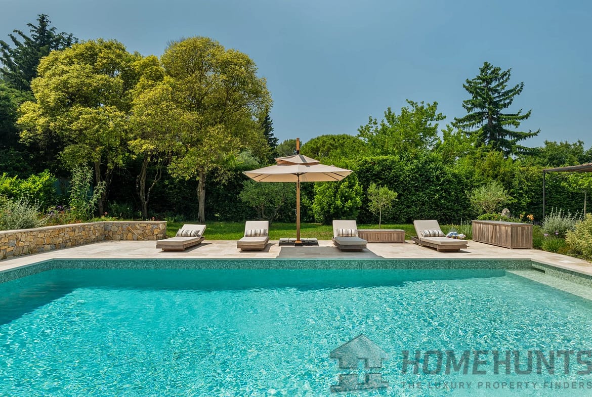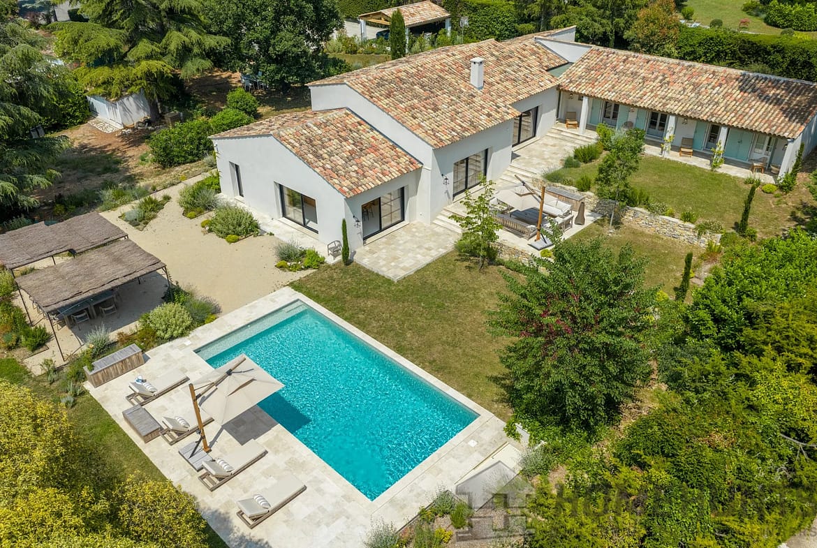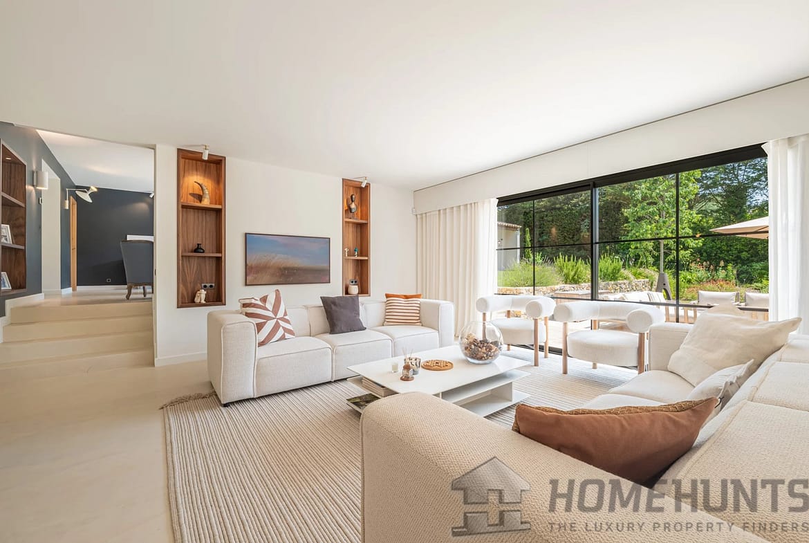 Just a stone’s throw from the charming village of Valbonne, this superb villa (approx. 420 m2), fully renovated to the highest standards, nestled in a peaceful, sought-after residential environment. South-facing, it benefits from ideal light all day long.
