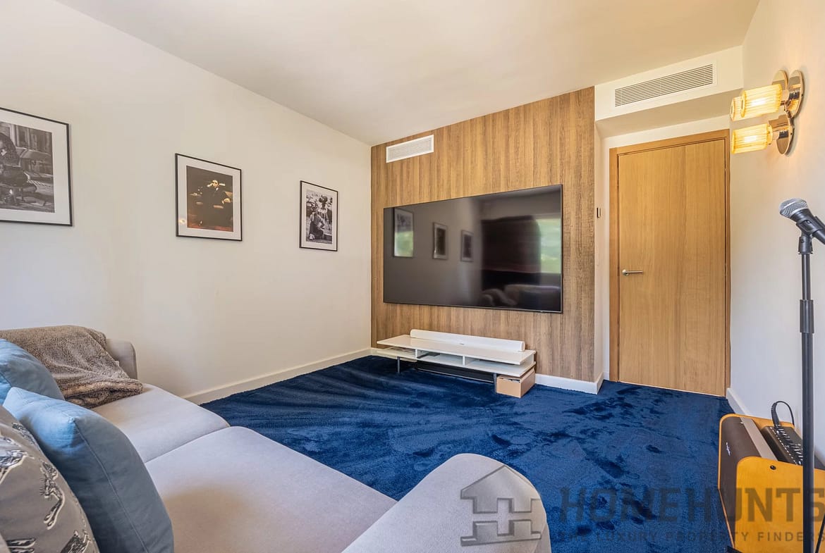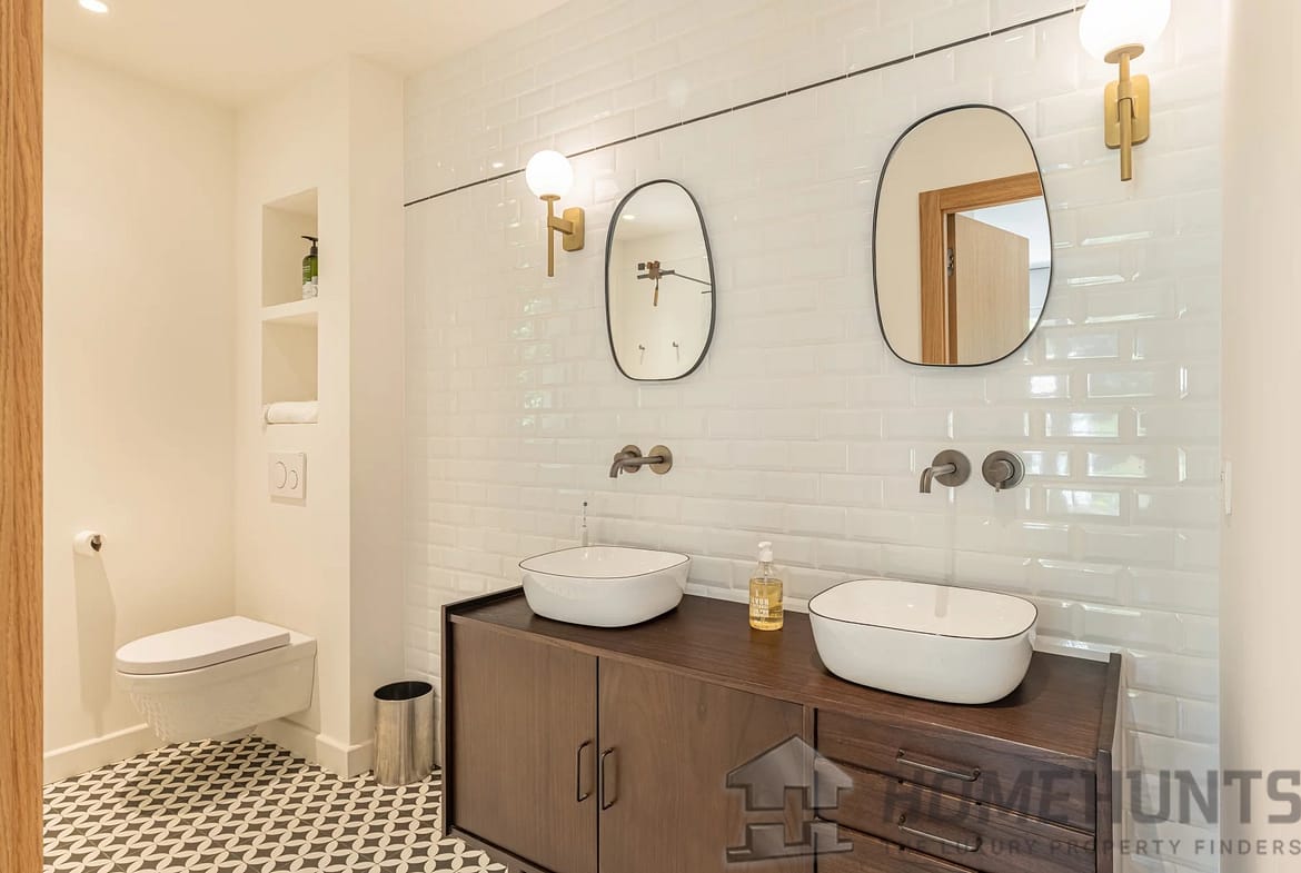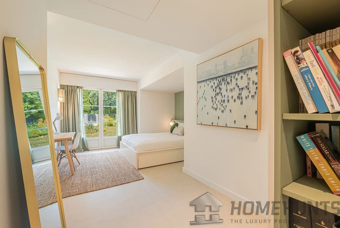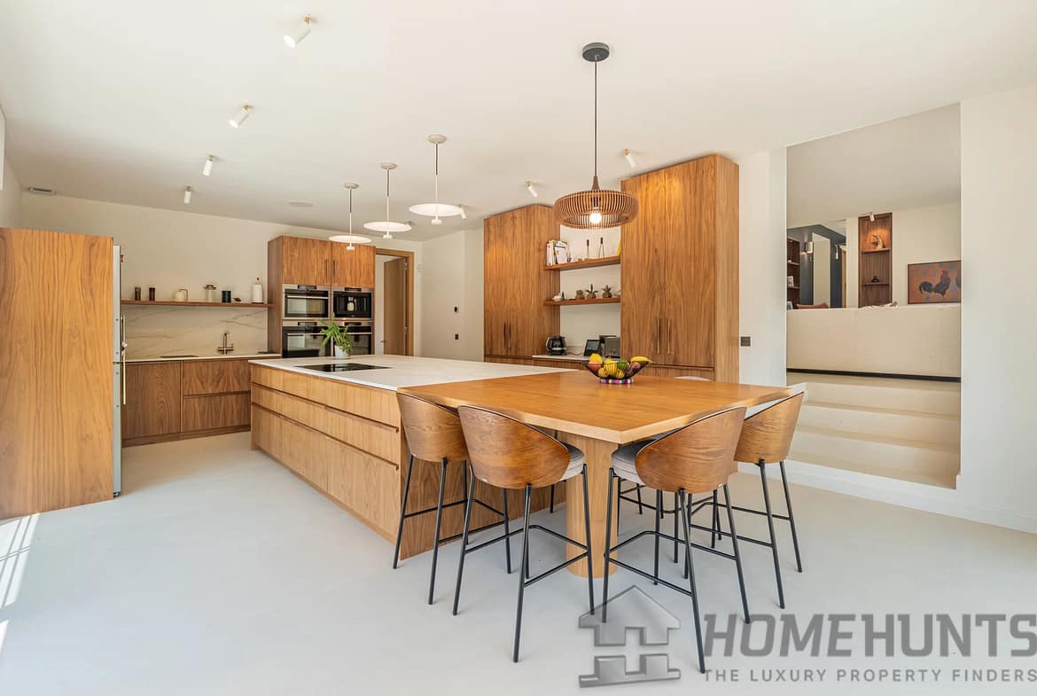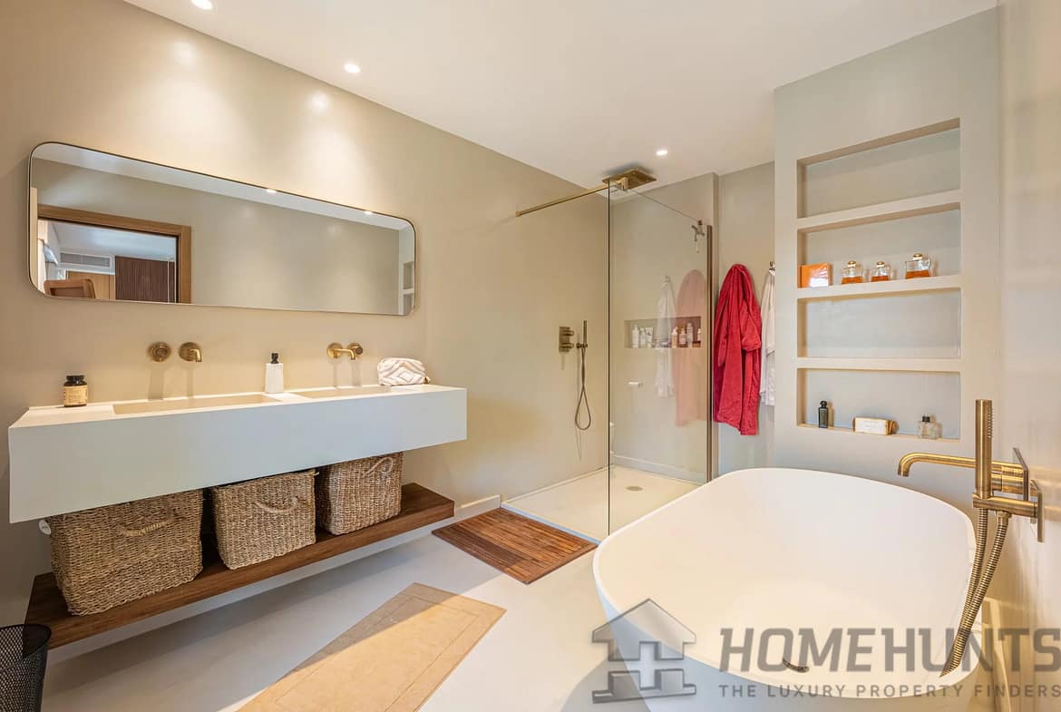 Designed for a refined lifestyle, the property is almost entirely on one level, with generous volumes and meticulous finishes. The vast, light-filled reception areas open onto the outdoors and are complemented by a fully-equipped contemporary kitchen, several comfortable suites and a cosy TV lounge. A gym and outdoor sauna complete this space dedicated to well-being and relaxation.