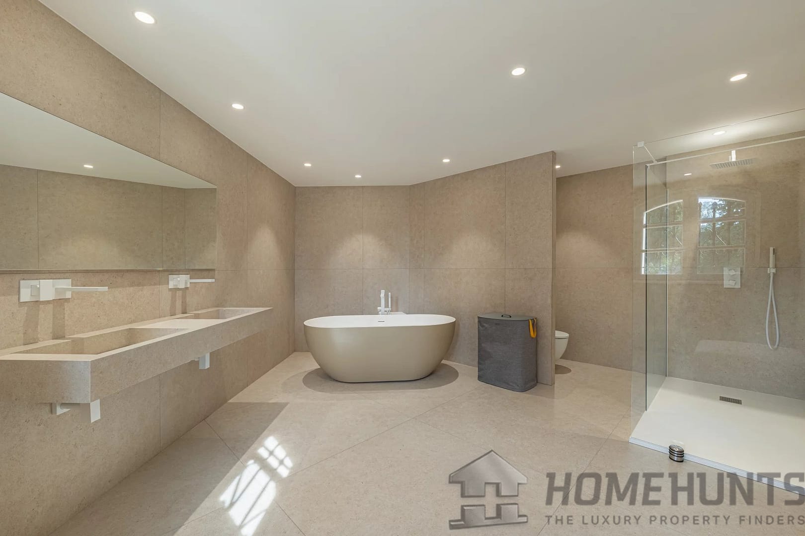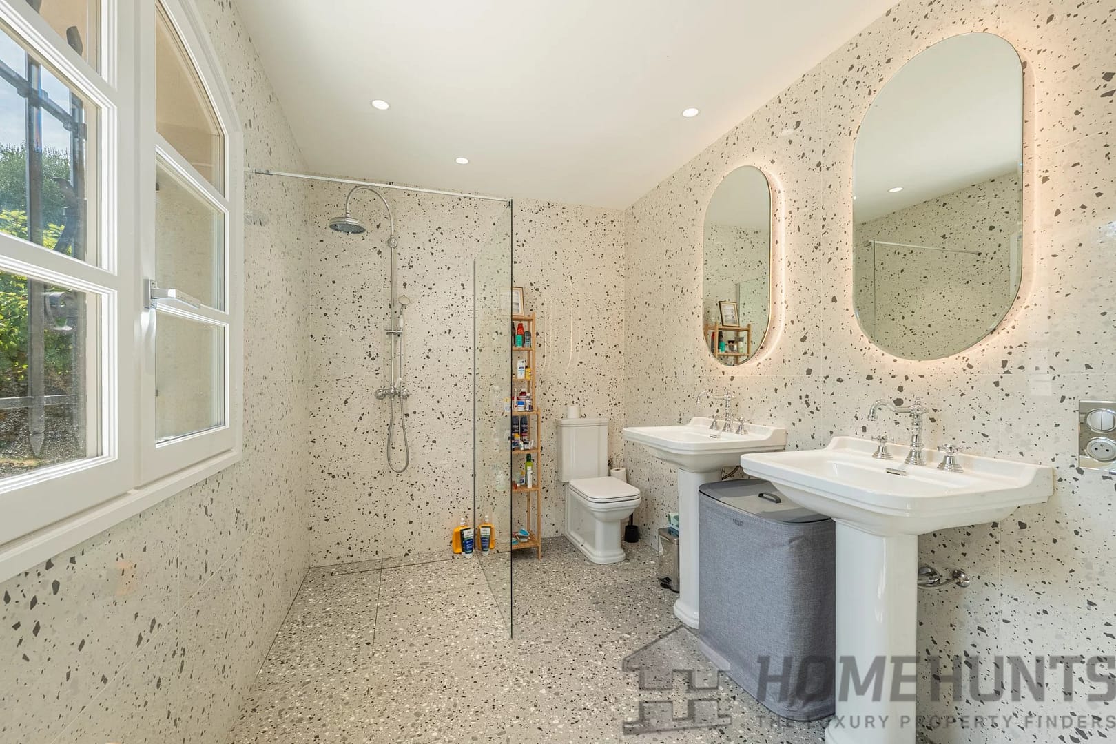 Designed to comfortably accommodate a family on a day-to-day basis as well as for relaxing stays, it offers vast, luminous spaces and a total of five suites, including a self-contained apartment. Leisure and comfort features include a private cinema, a fitness area and a spacious garage for up to four cars.