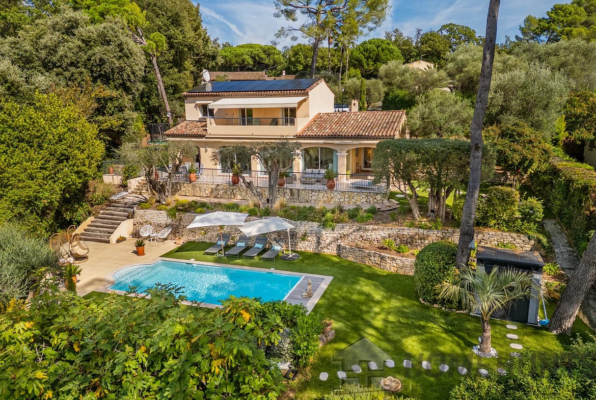 The property benefits from top-quality fittings: electric roller shutters, alarm system with cameras, 18 solar panels, and stands out for its impeccable upkeep. It features a heated saltwater swimming pool, sauna and garage.