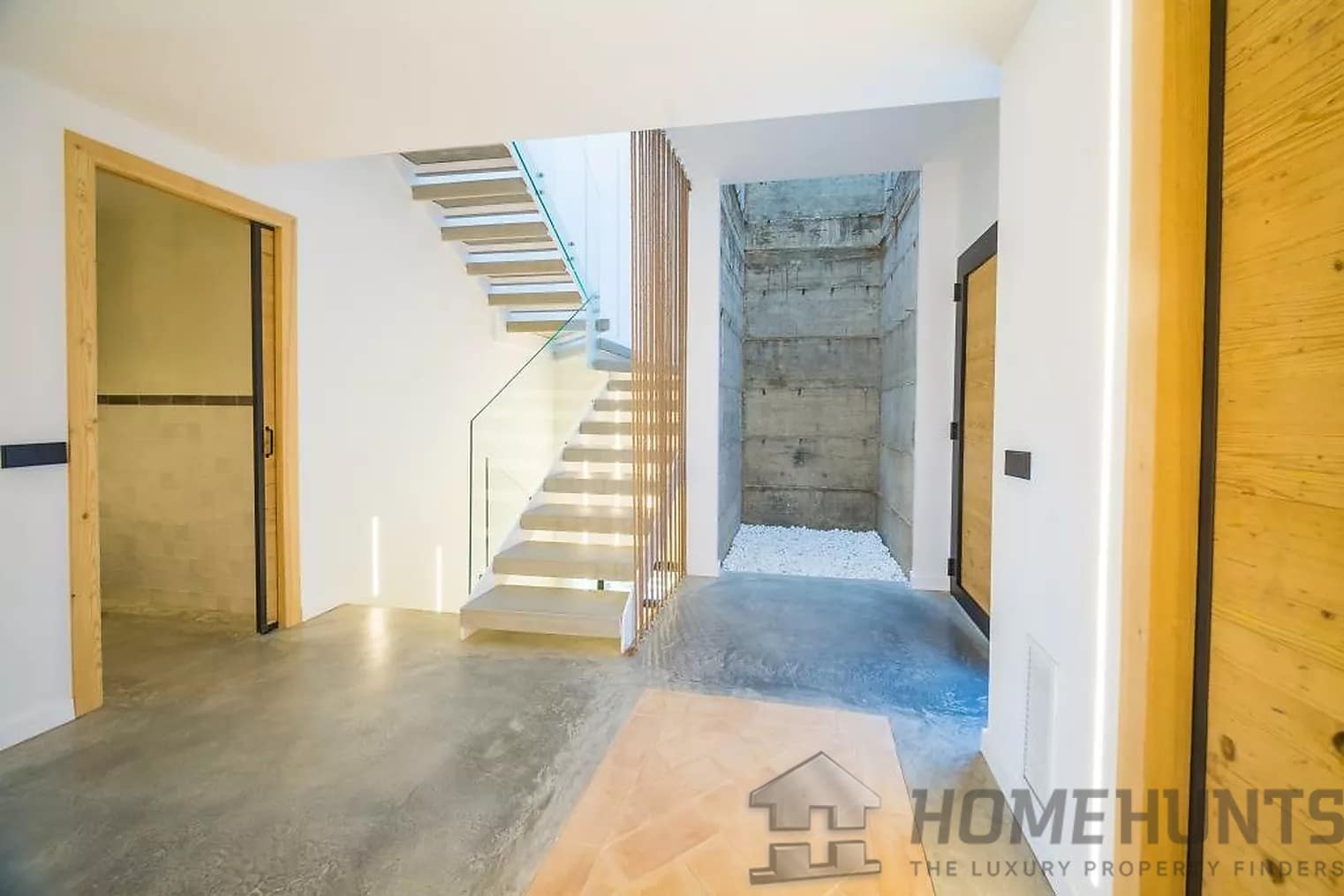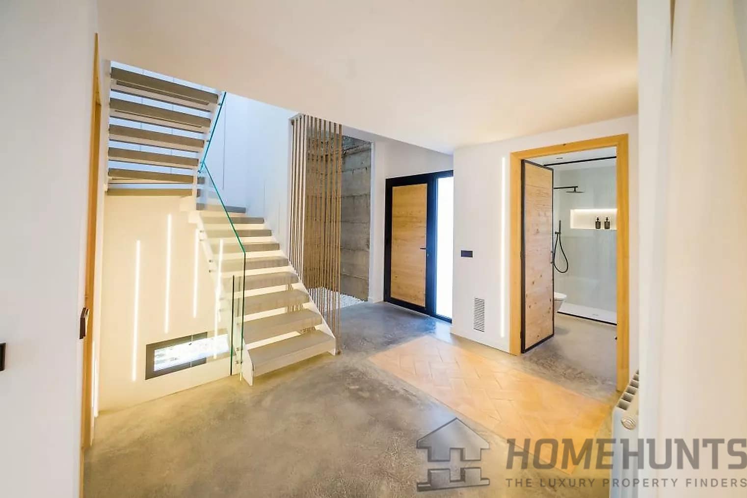 This impressive house has three floors: on the ground floor there is a double garage, plus a cellar and games room. On the first floor we have a large kitchen, living room and dining room. A suite and a laundry room. On the upper floor there are three more rooms. An elevator connects the three levels.