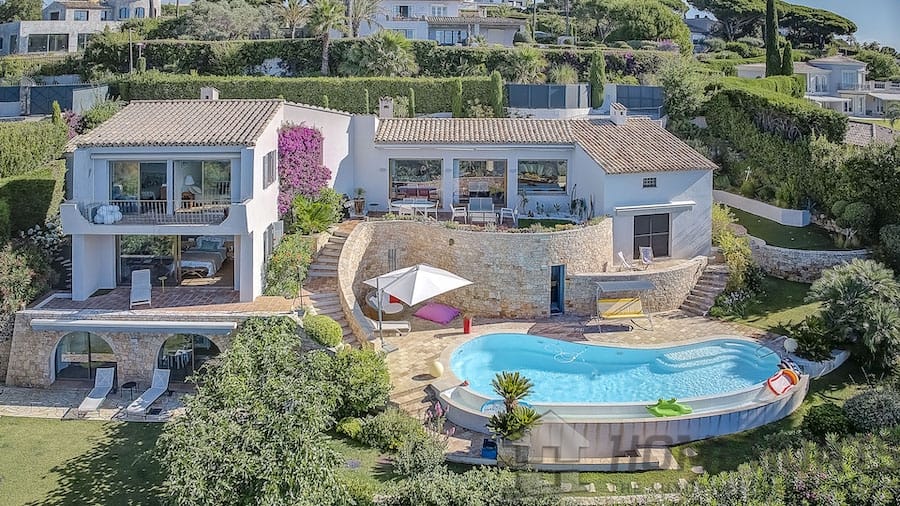 SUPER-CANNES, VILLA WITH PANORAMIC SEA VIEWS. In the highly sought-after neighbourhood of Super-Cannes, discover this superb villa designed by a renowned architect, offering an exceptional living environment and breathtaking views of the sea and the Lerins Islands.