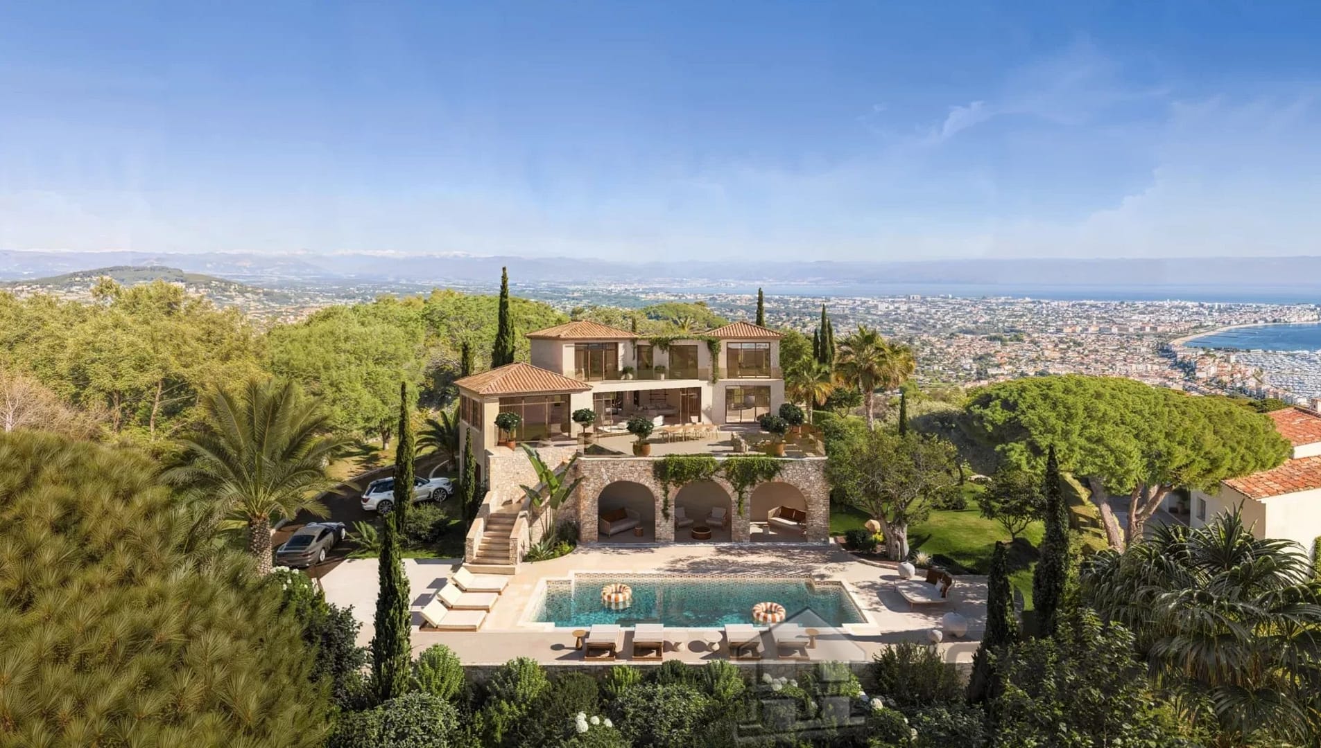 Set in the prestigious Super Cannes estate, this Provençal-style villa offers breathtaking panoramic views of the Mediterranean and the Lerins Islands.