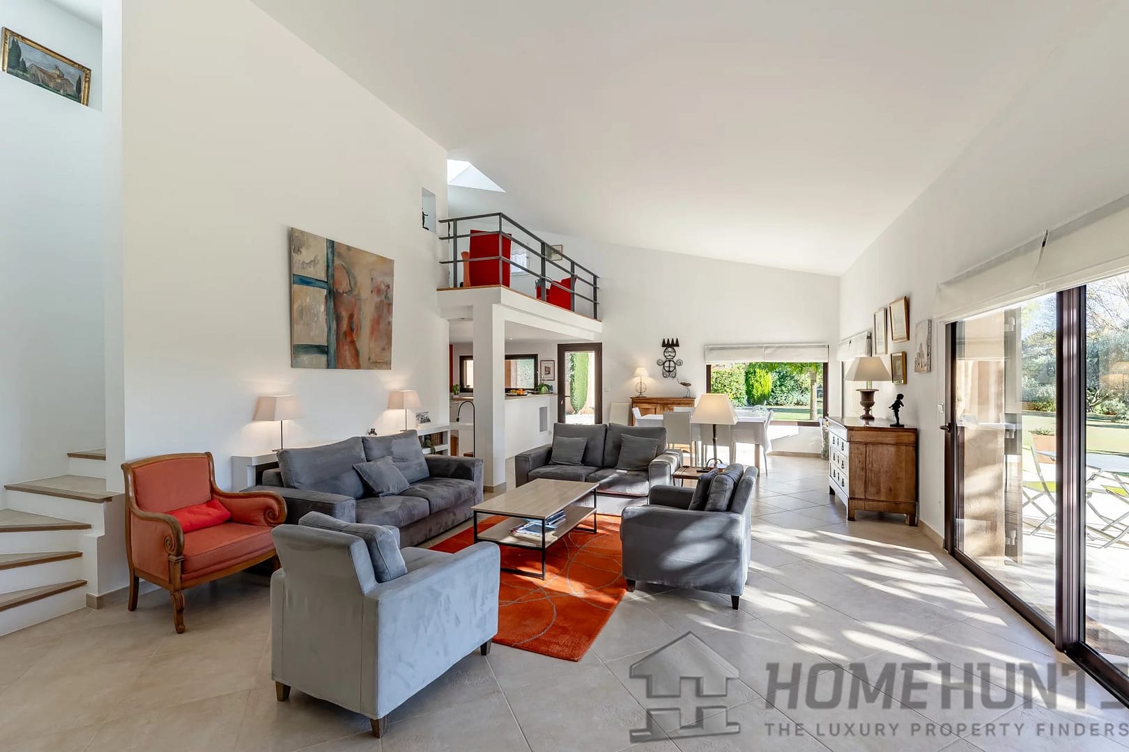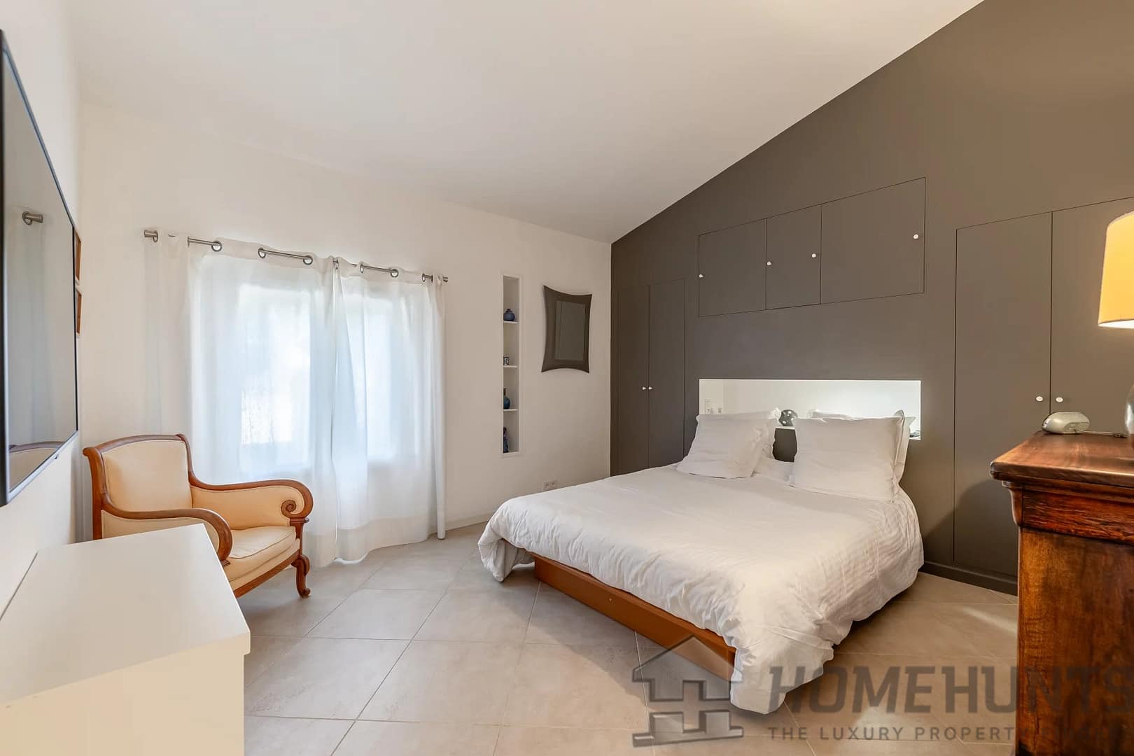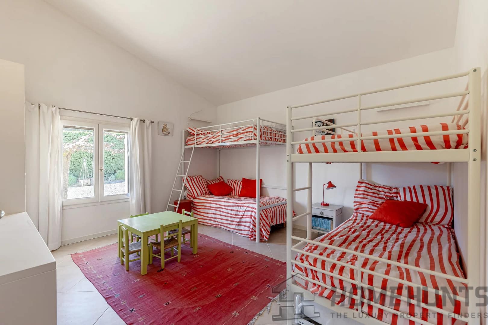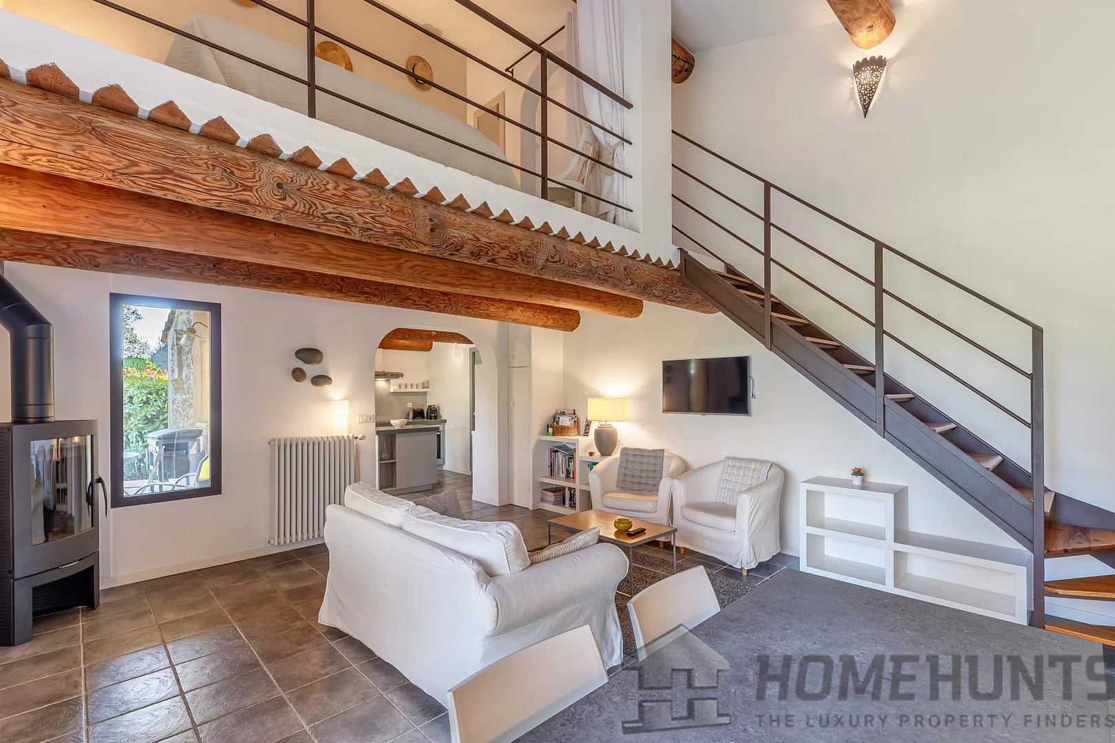 There is also a completely independent apartment with its own plunge pool and entrance, rented seasonally. This apartment includes a living room, kitchen, and shower room on the ground floor, and upstairs, a mezzanine bedroom, a bathroom, a dressing room, and a bedroom.