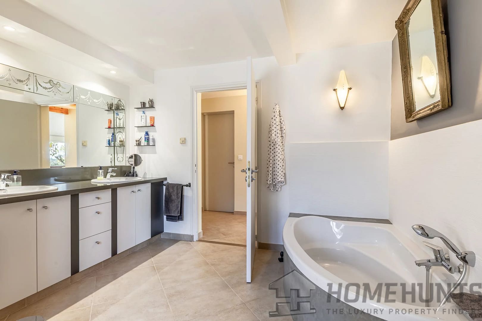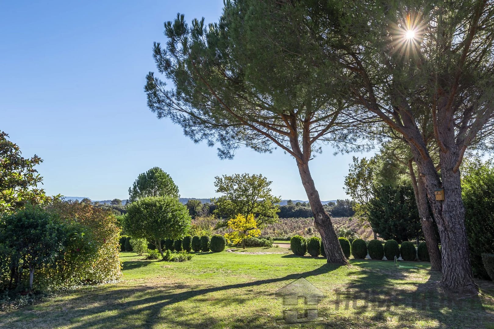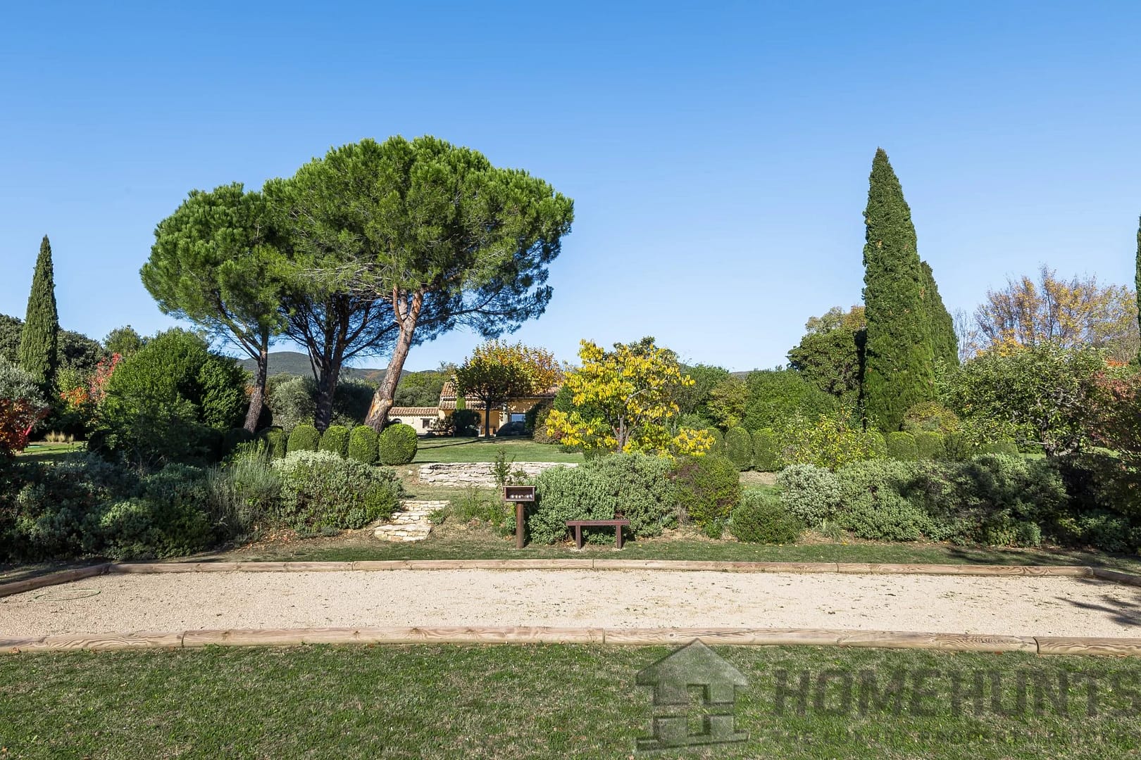 The 7600 m2 garden is planted with typical Provencal vegetation, including beautiful trees, and features automatic watering, a swimming pool, and a petanque court – everything you need for complete tranquility. Carport. Two wooden sheds for garden equipment and other items. A 19 m2 workshop. Water from a borehole with filtration and Canal de Provence. Photovoltaic panels.