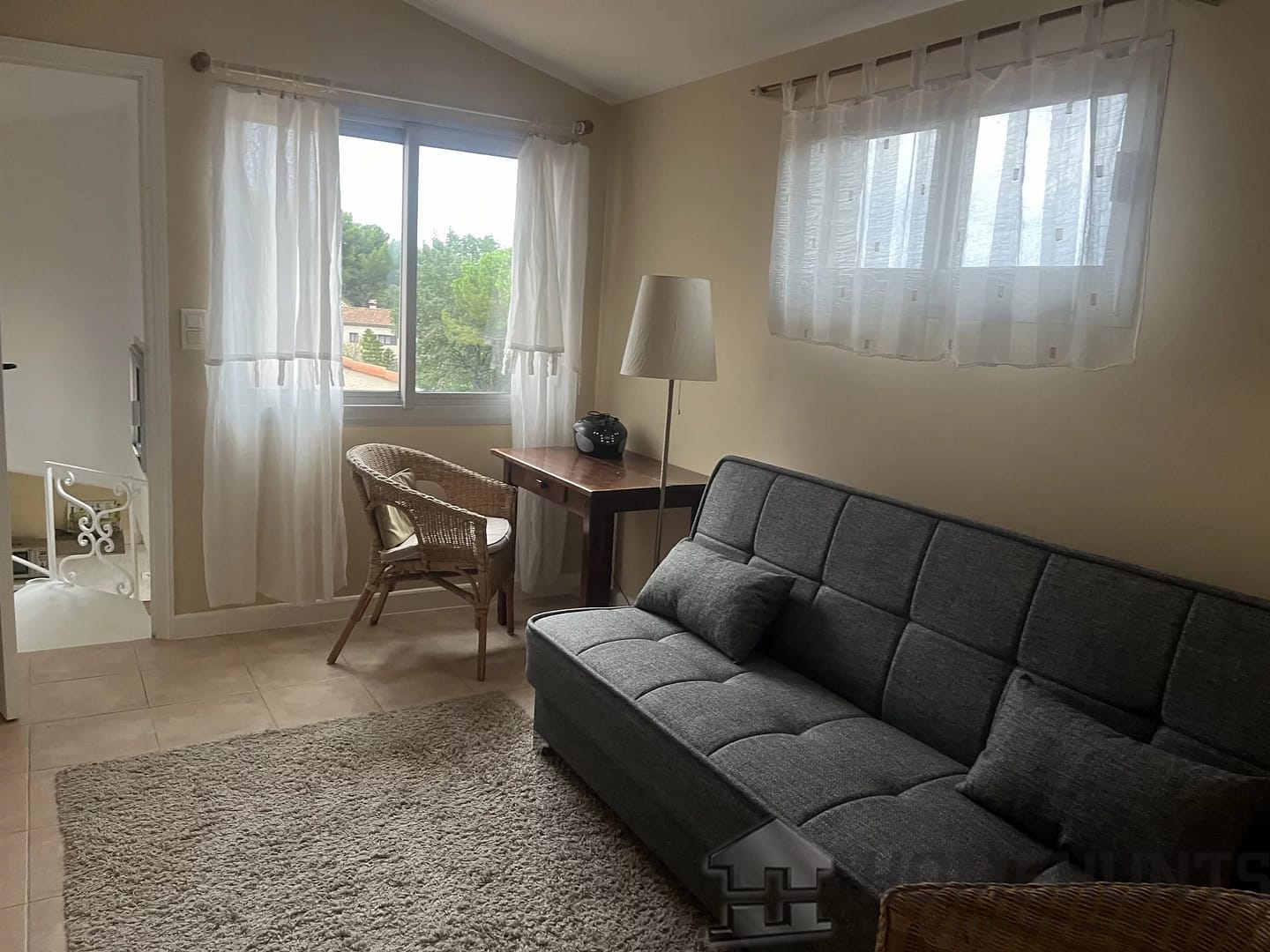 Upstairs, three independent apartments offer comfortable living spaces. The first is a two-room apartment with a living room, kitchen, bedroom and bathroom with toilet. The second comprises a living room, kitchen, bedroom and shower room with WC. Finally, the last apartment, a duplex, offers a living room, a kitchen, a bedroom and a shower room with WC. On the upper floor of the duplex, a second bedroom also has its own shower room with WC.