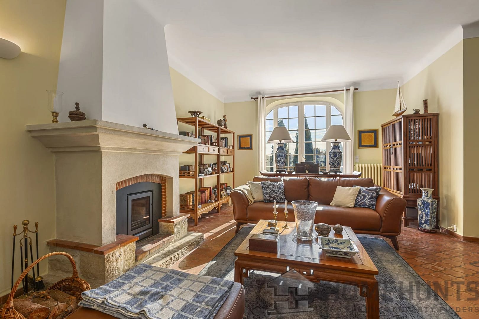 The grounds, entirely planted with trees, feature a swimming pool, pool house and several terraces, providing a wealth of outdoor living space.