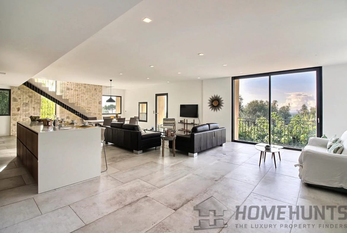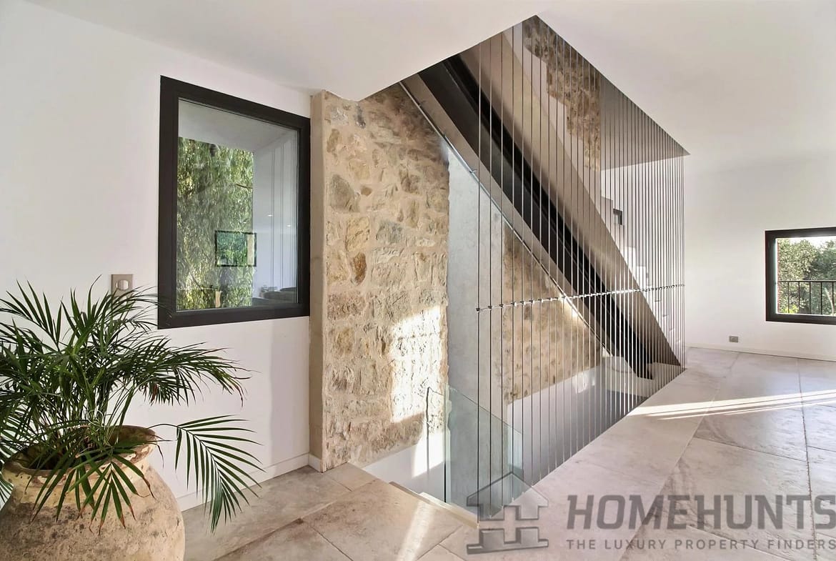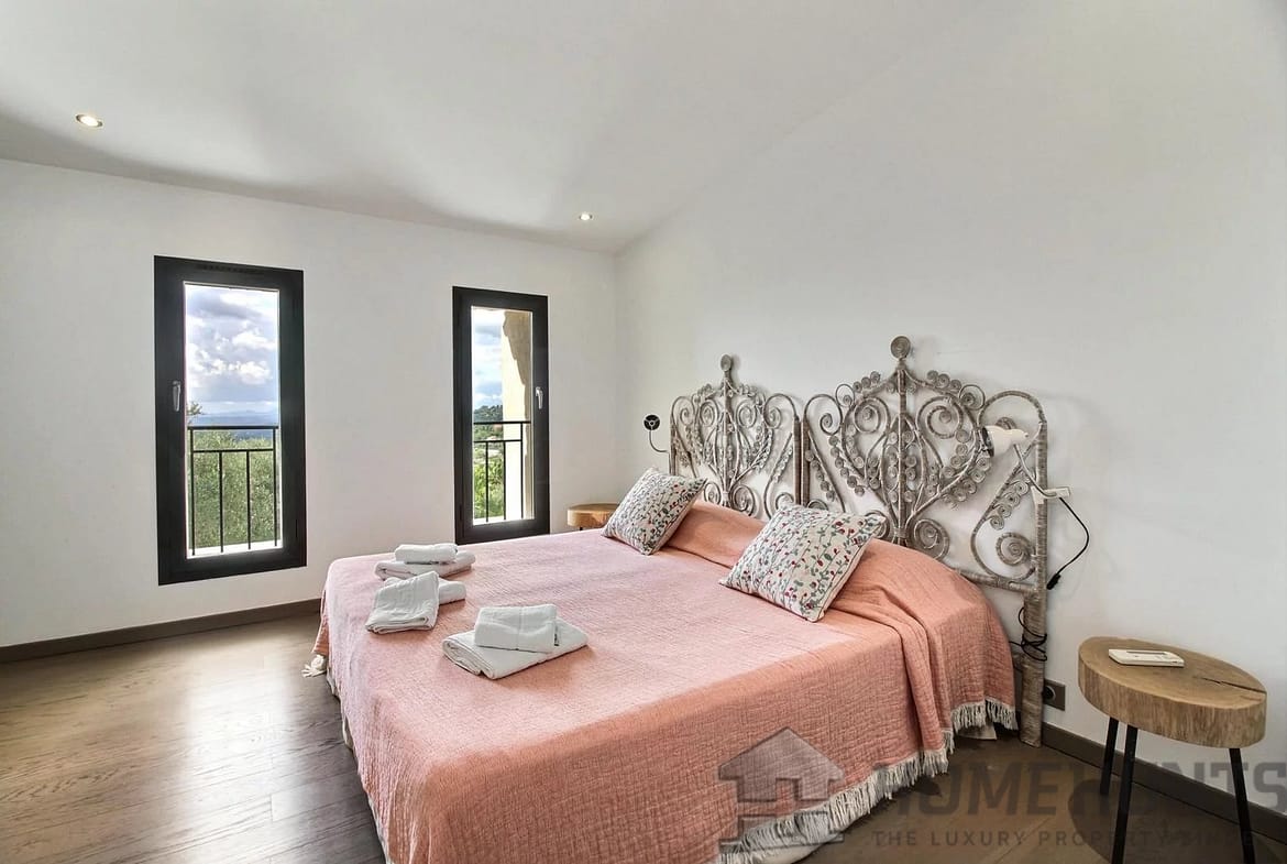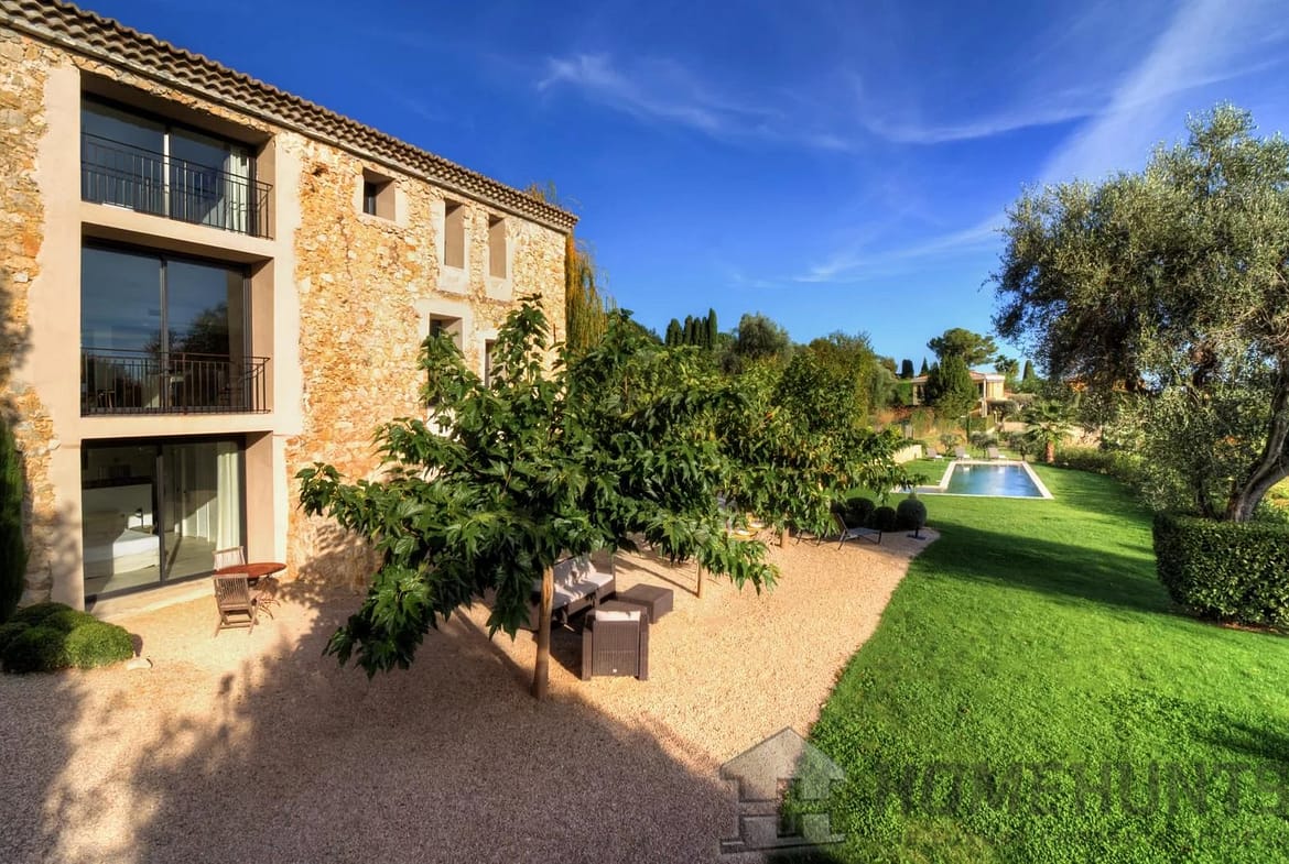 This converted farmhouse is located on the hills above the picturesque village of Vence. It’s a modern villa with a total of four bedrooms and three bathrooms.
